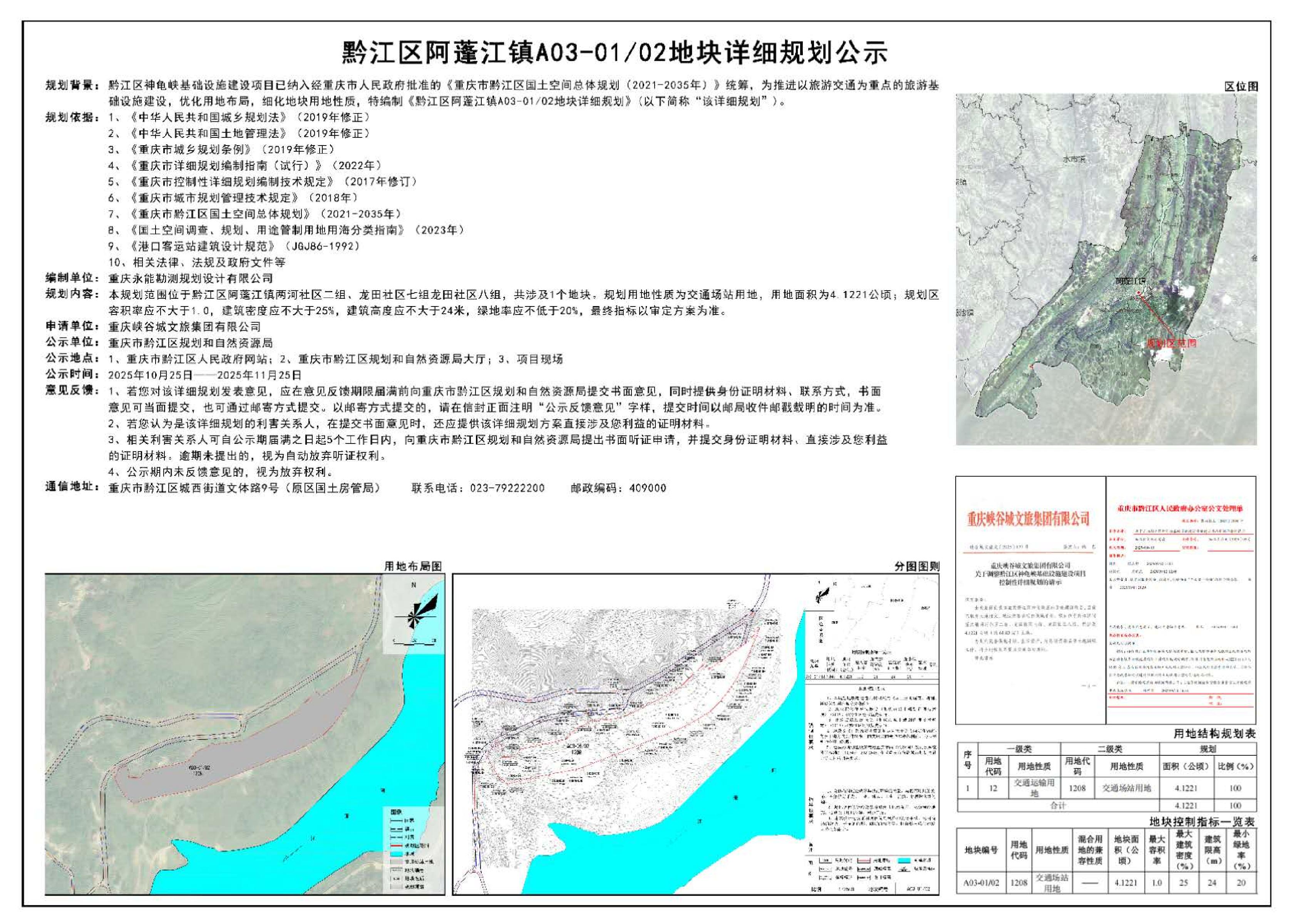 黔江区阿蓬江镇A03-01 02地块详细规划公示