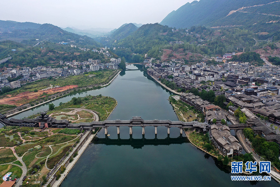 航拍视角下的濯水古镇,静谧悠远。新华网发(杨敏摄)