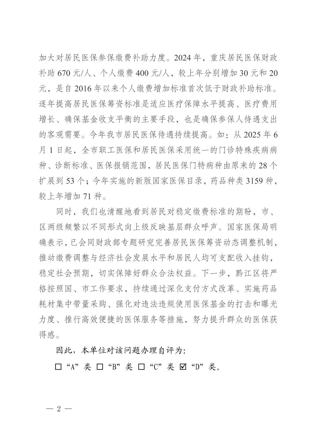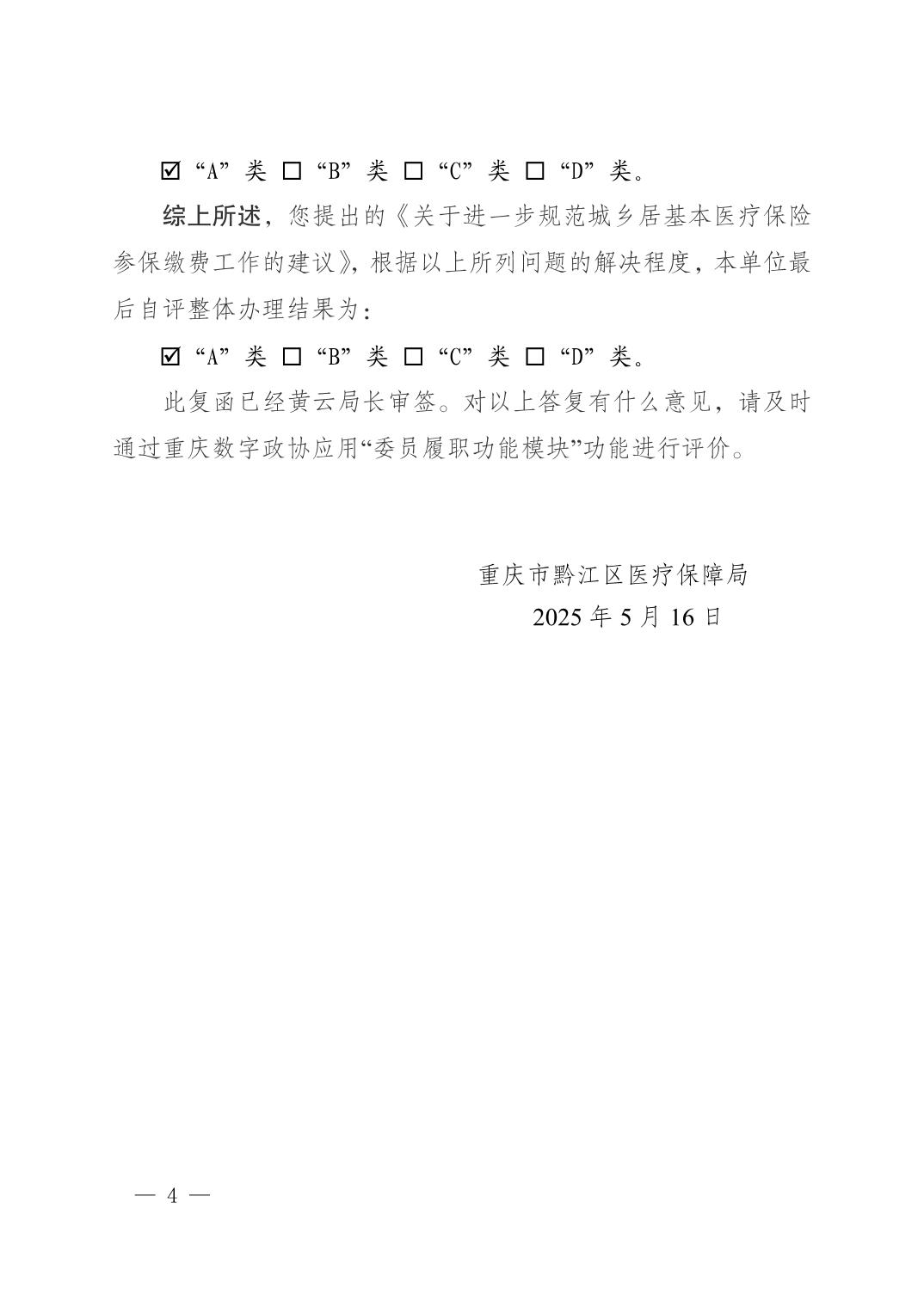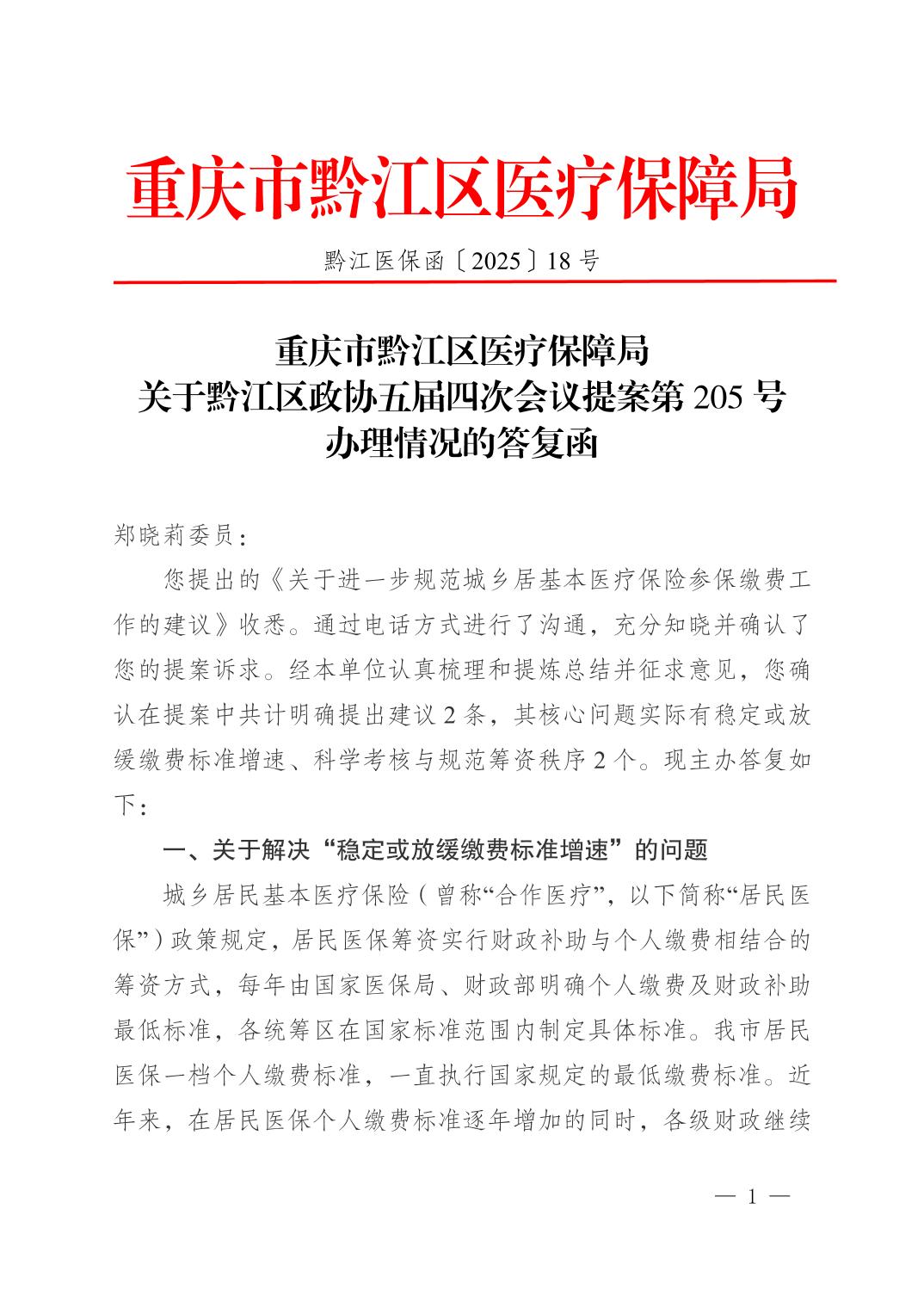 重庆市黔江区医疗保障局关于黔江区政协五届四次会议提案第205号办理情况的答复函