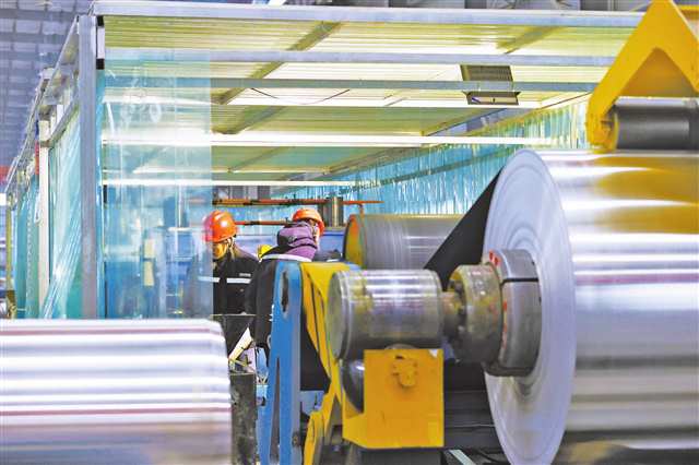 工人们在黔江高新区一再生铝加工企业的生产线上忙碌