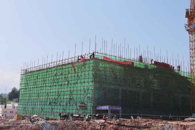 8月21日,在项目建设现场,挖掘机、起重机等机器轰鸣,100余名建设者挥汗如雨、紧密协作,一派热火朝天、如火如荼的建设场面。目前,主体工程完成60%,集散中心主体即将封顶。
