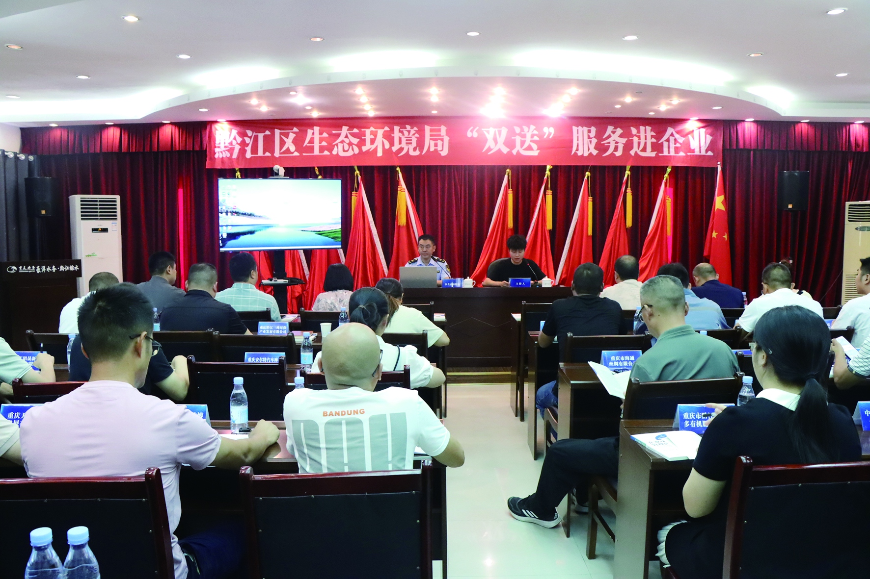 9月5日,黔江区生态环境局走进黔江污水处理厂,开展“双送”(送政策、送法律)服务进企业培训(如图),引导企业知法、懂法、守法,助力企业绿色高质量发展。全区近40家企业代表参加此次培训。此次活动旨在进一步宣传生态环境“惠企”政策,提高企业自觉遵守生态环境法律法规主体意识,发挥法治固根本、稳预期、利长远的重要作用。