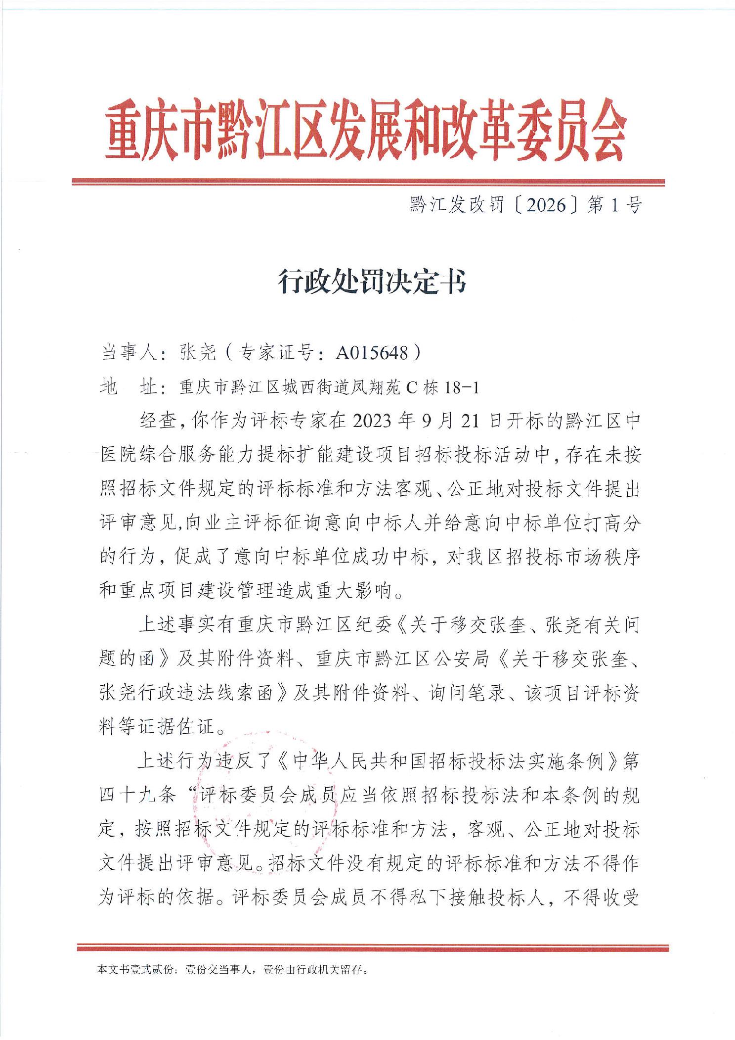 黔江发改罚〔2026〕第1号
