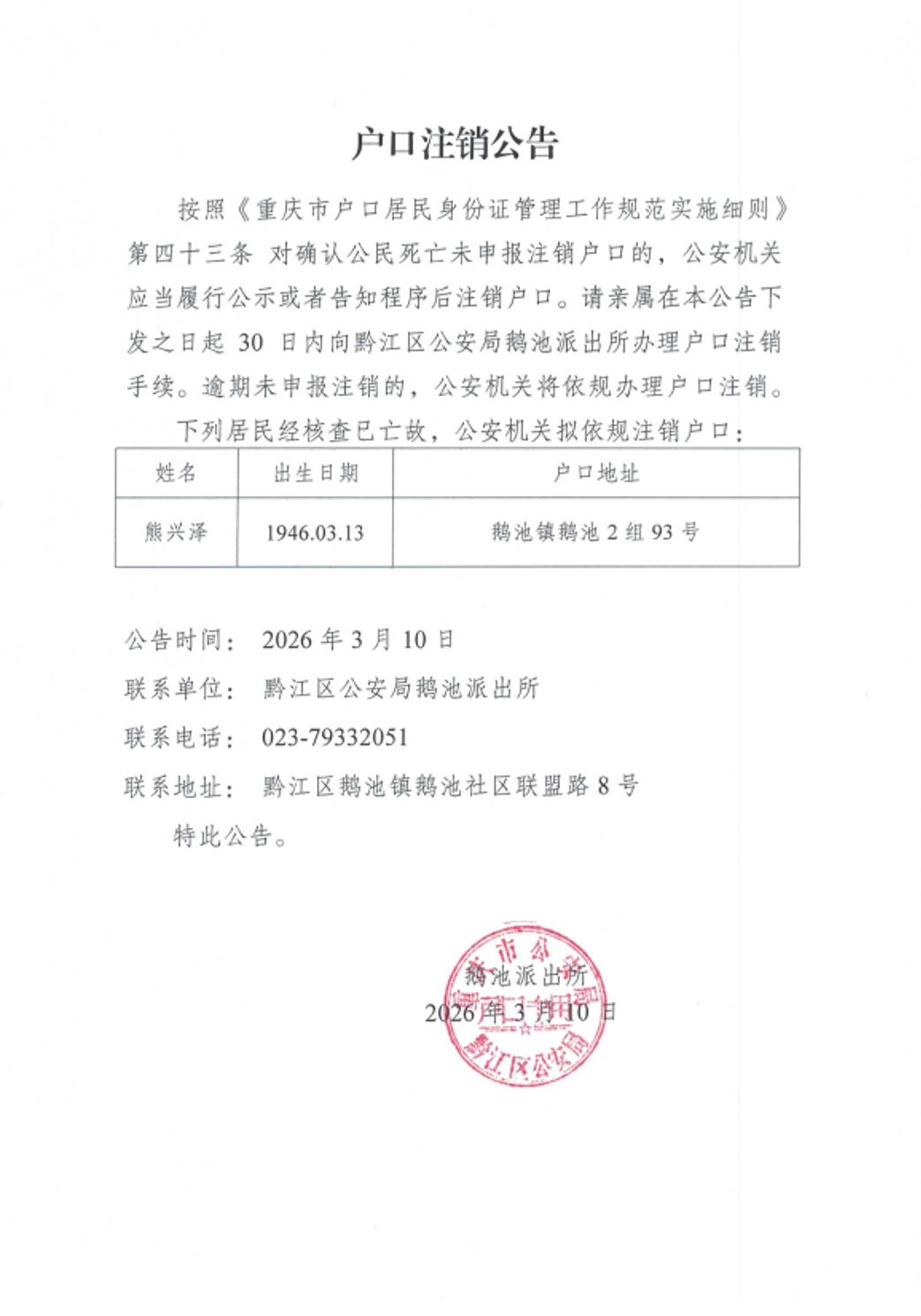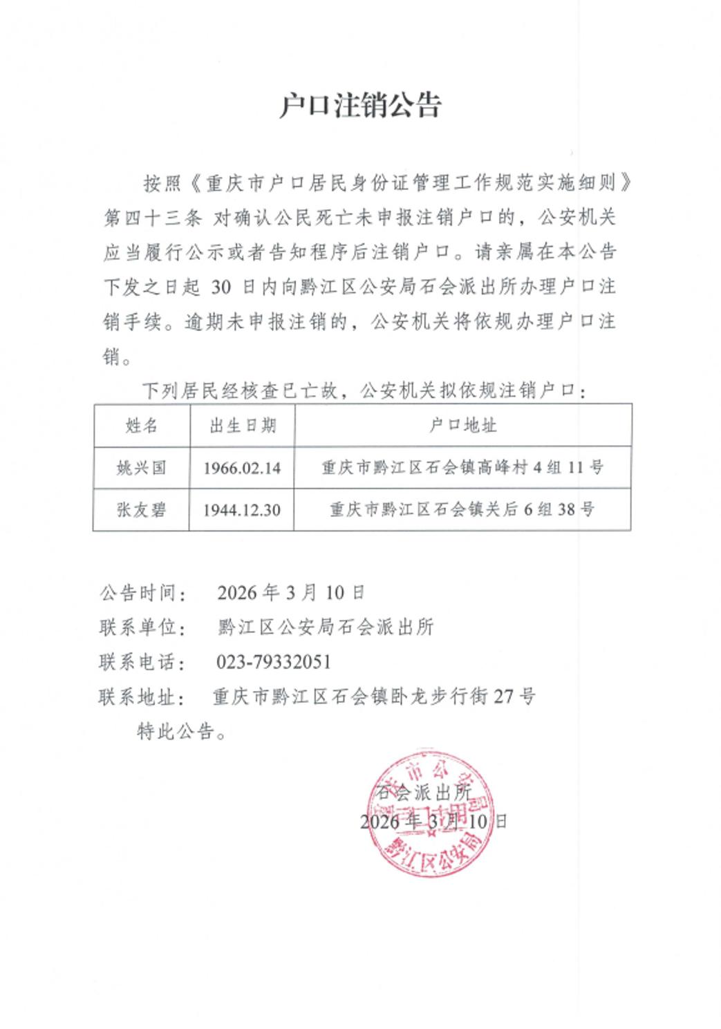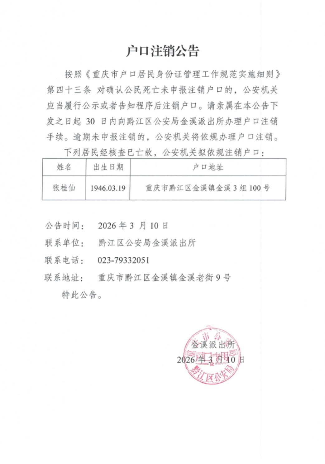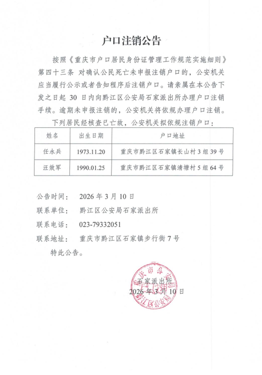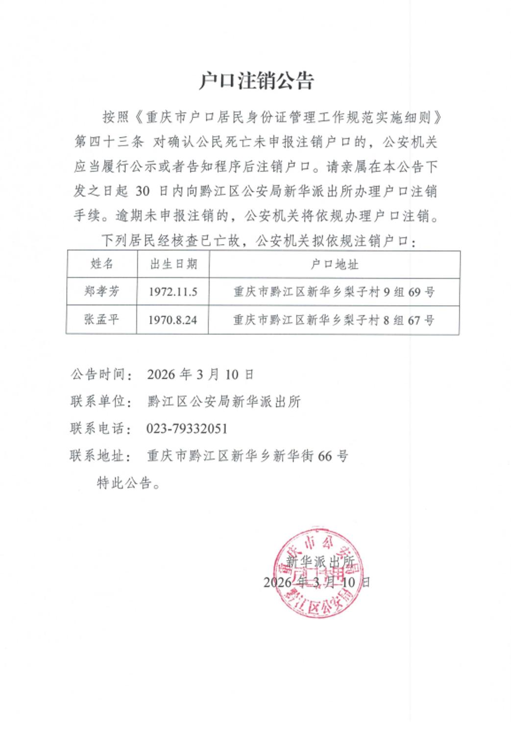 户口注销公告