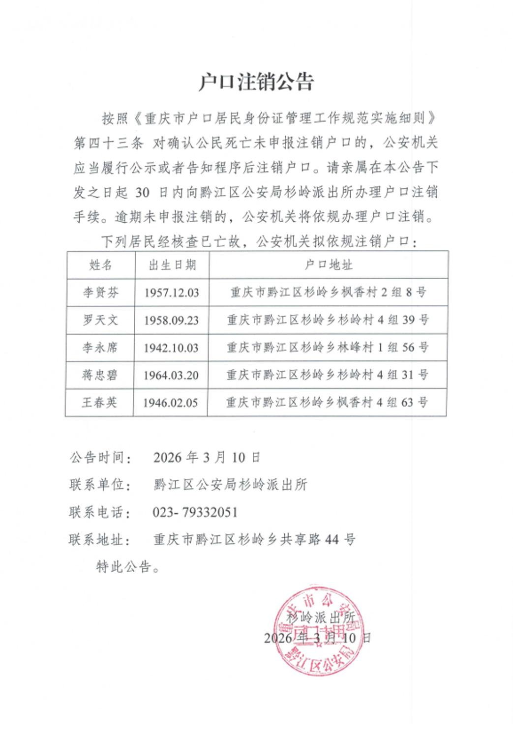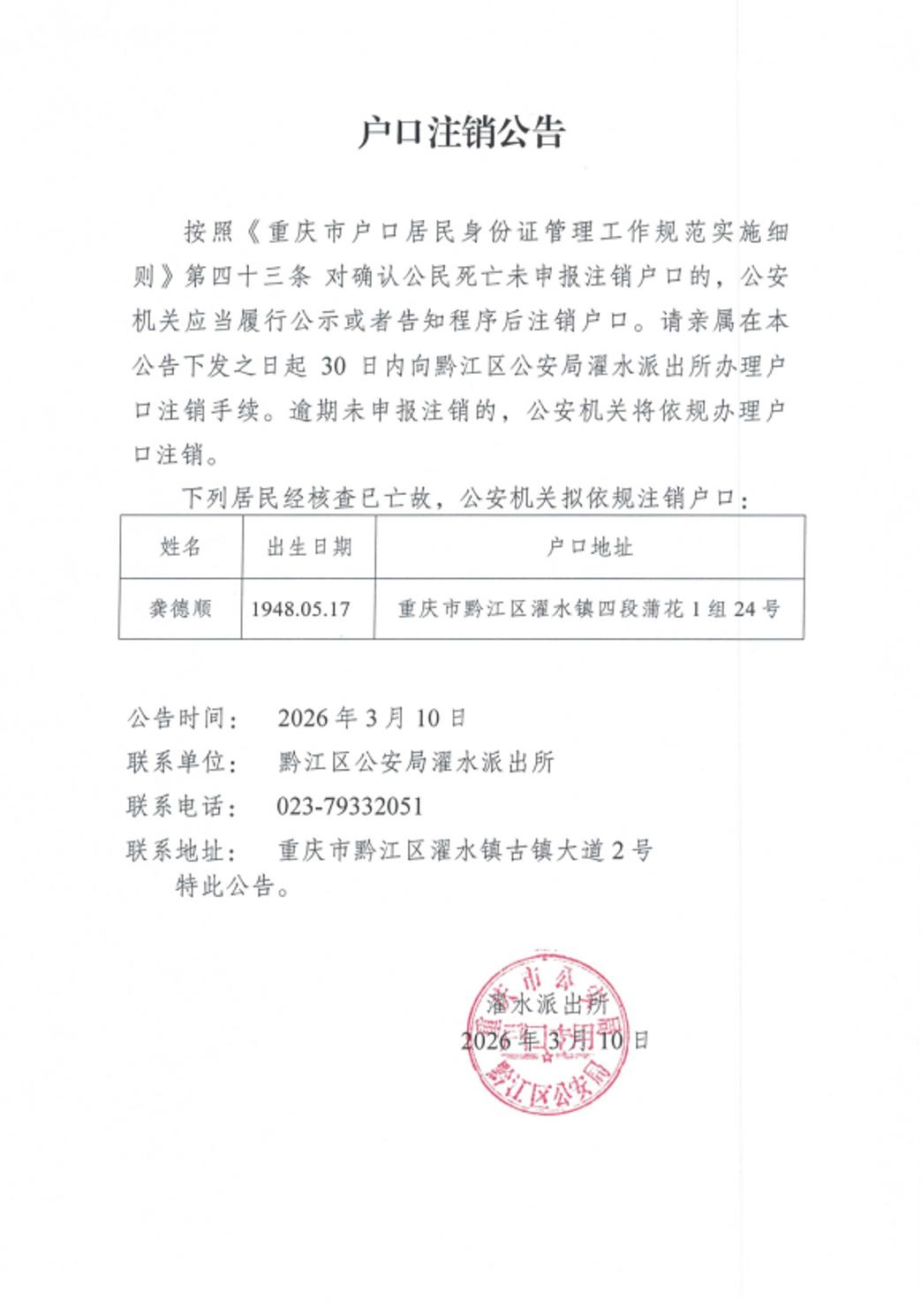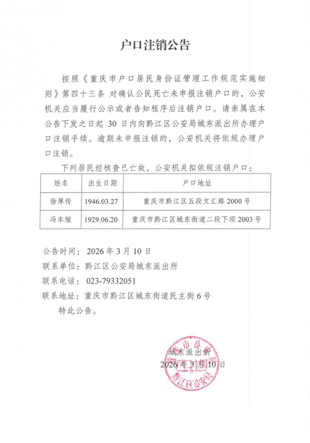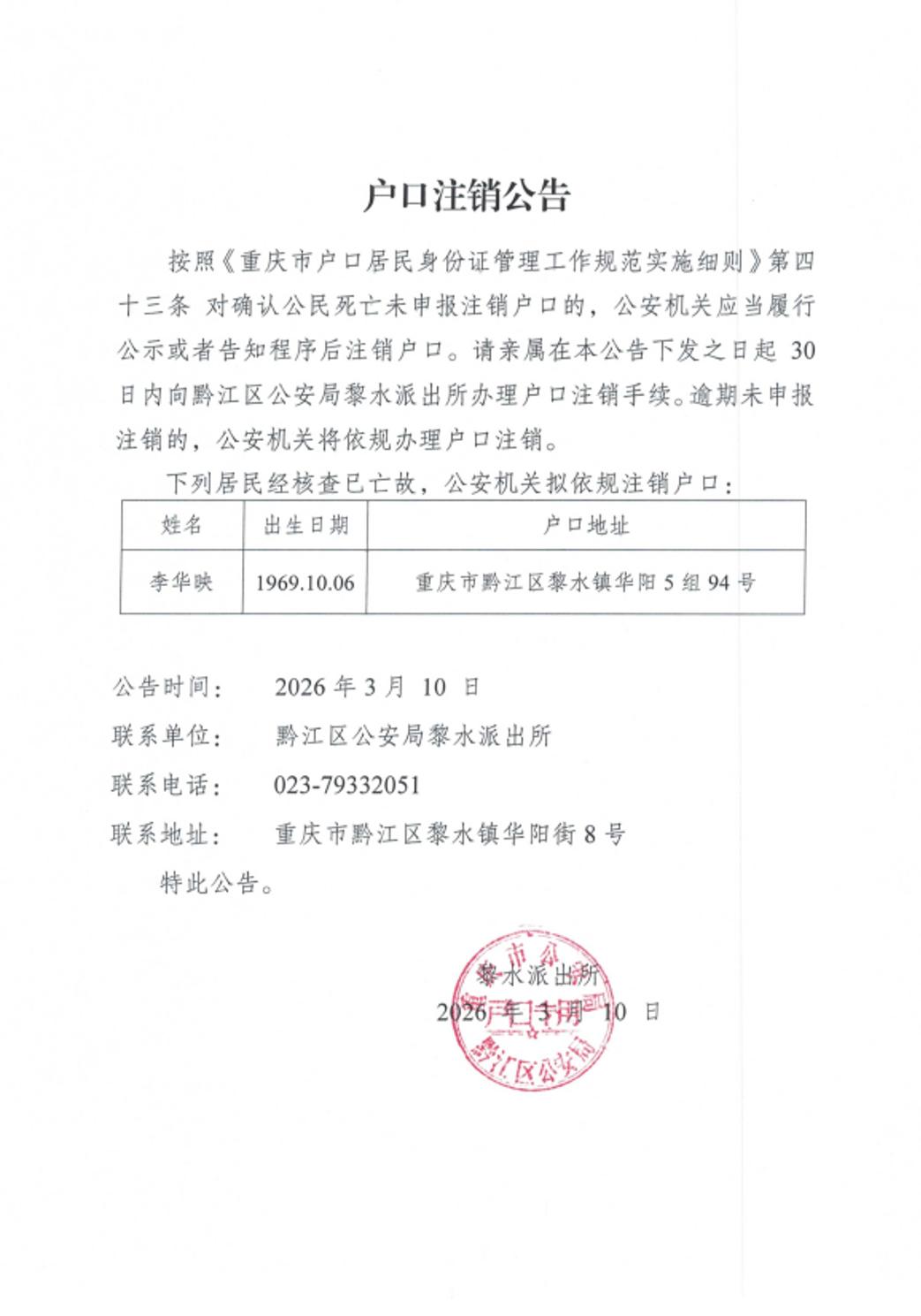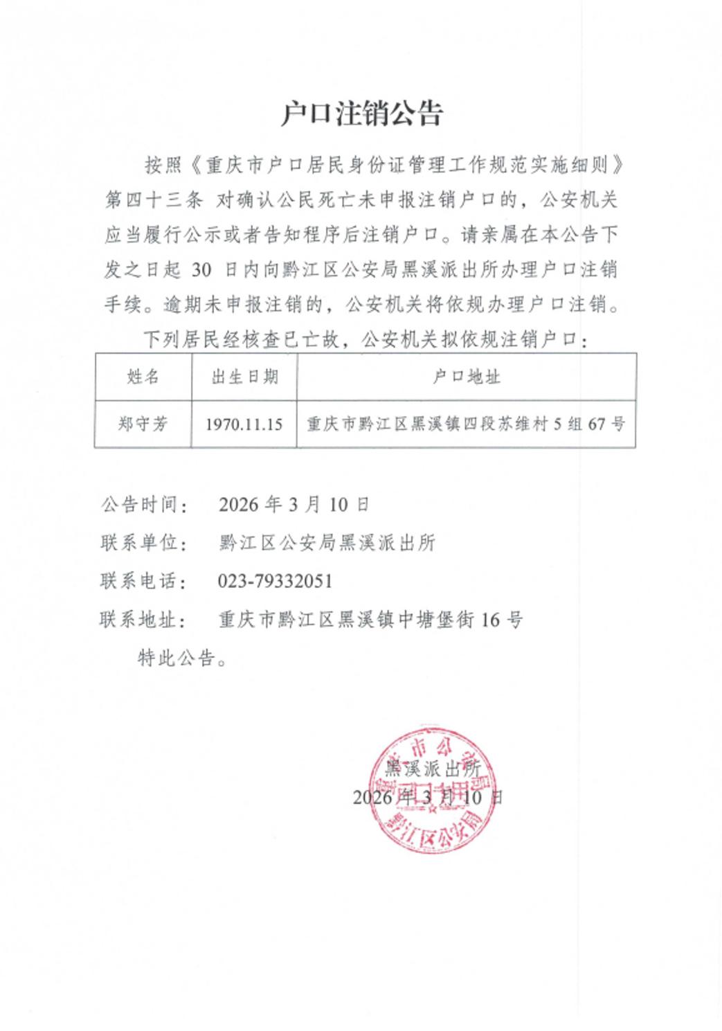 户口注销公告
