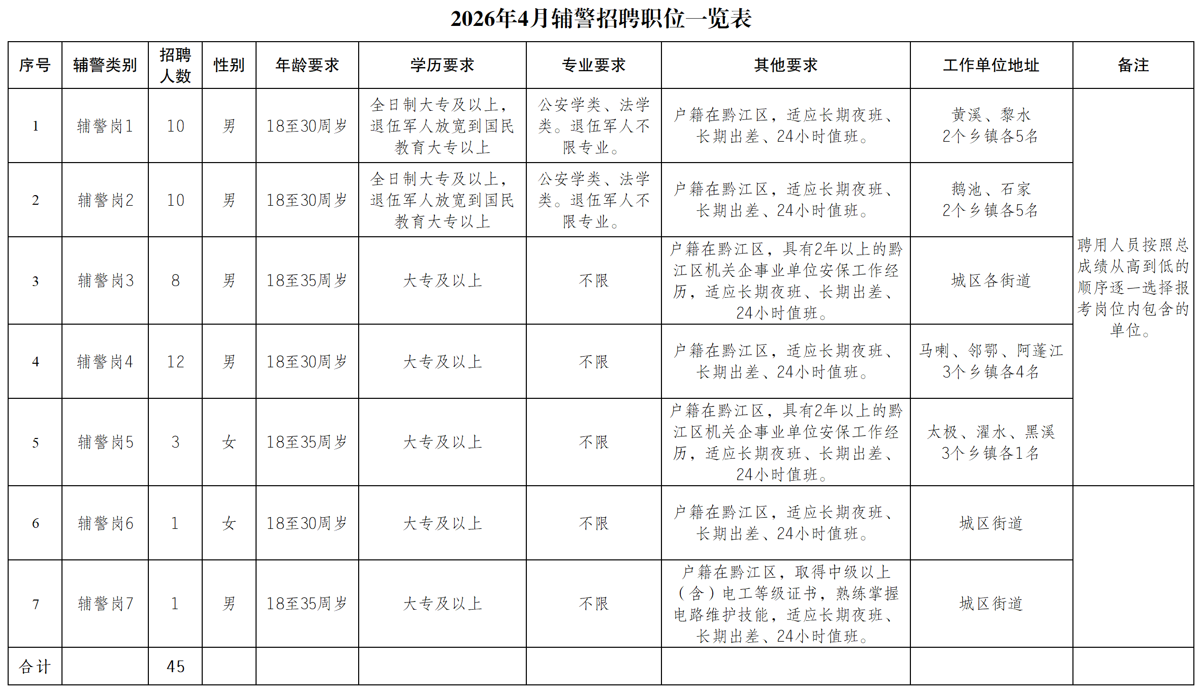 附件:辅警职位招聘一览表