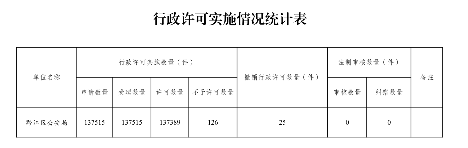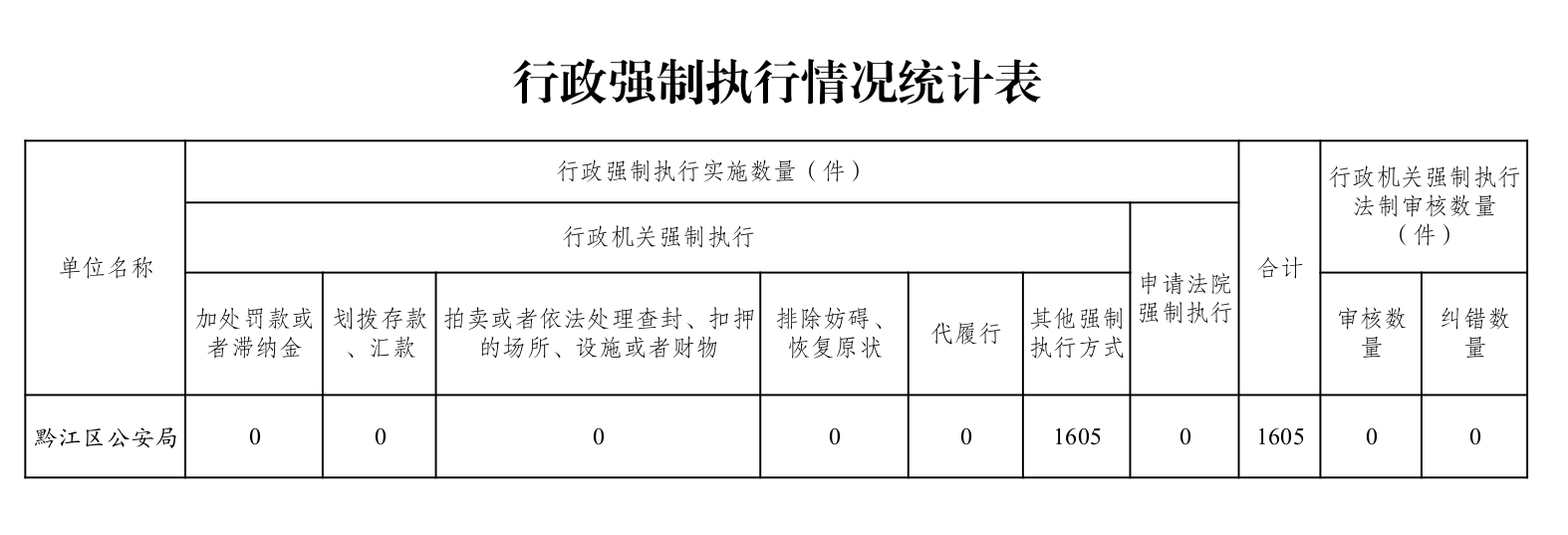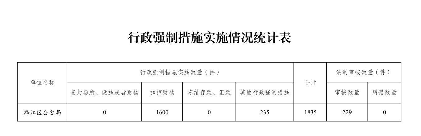 黔江区公安局2025年行政执法数据统计公示
