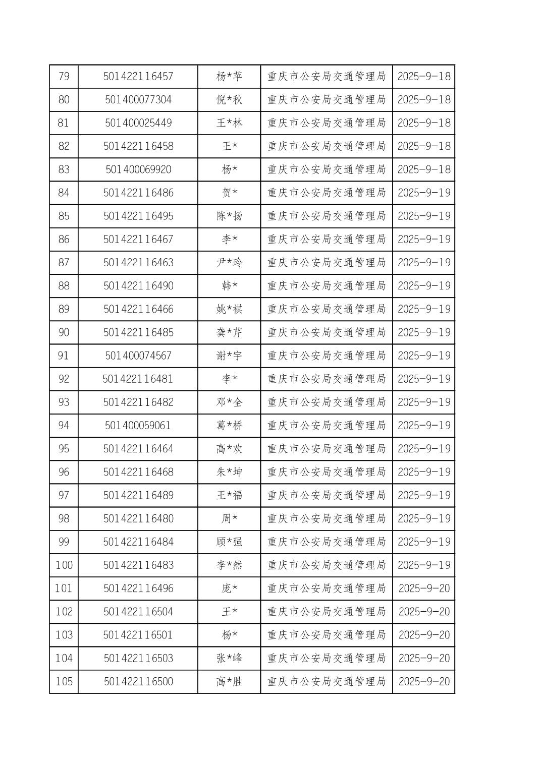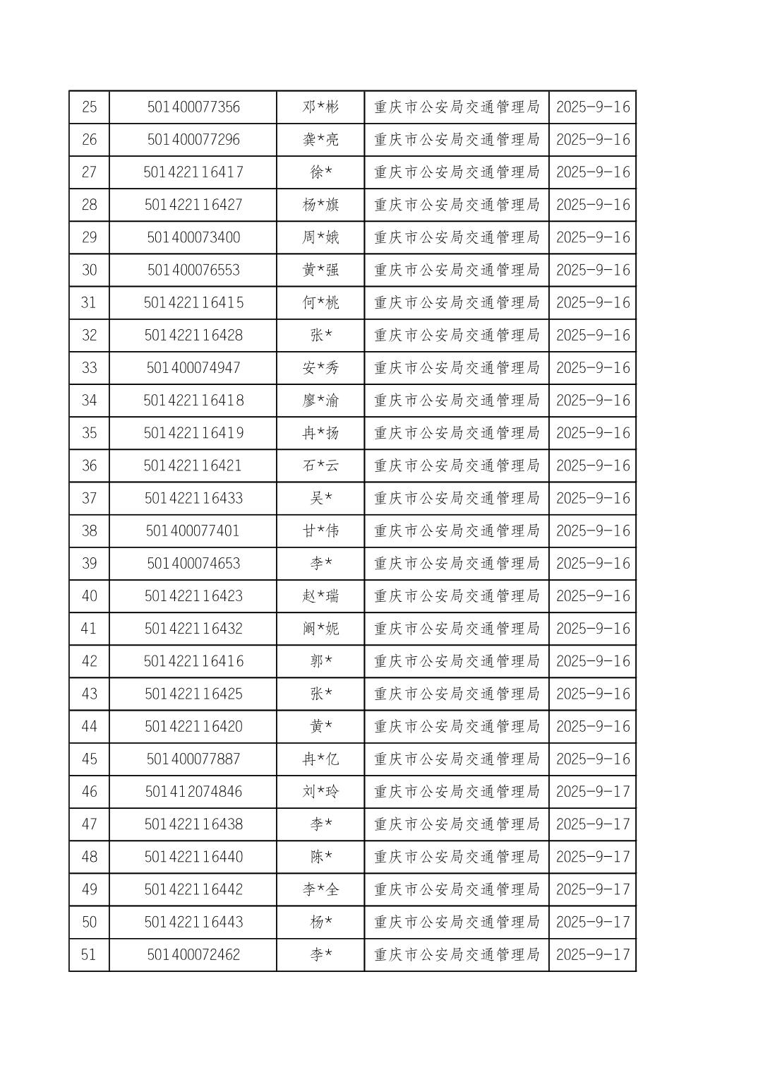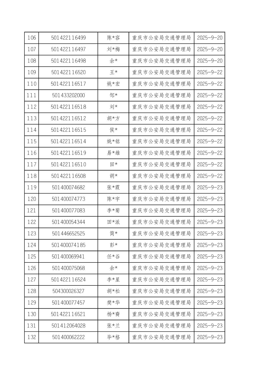 2025年9月15日至9月30日车管所相关行政许可结果公开(驾驶证核发)