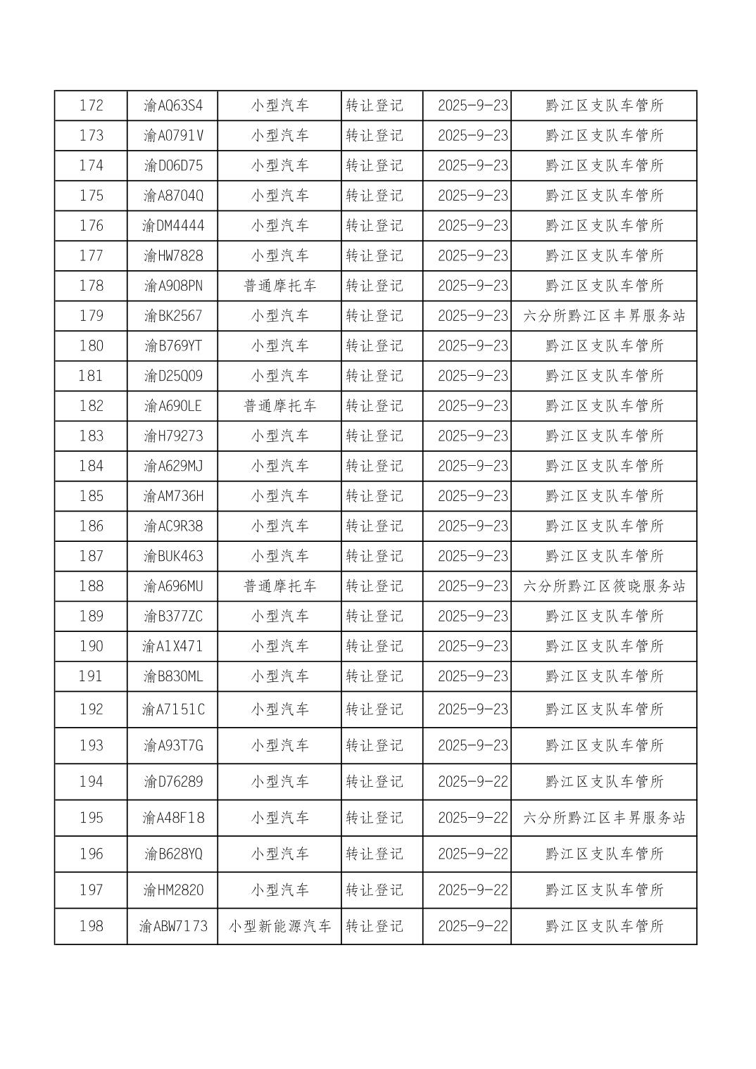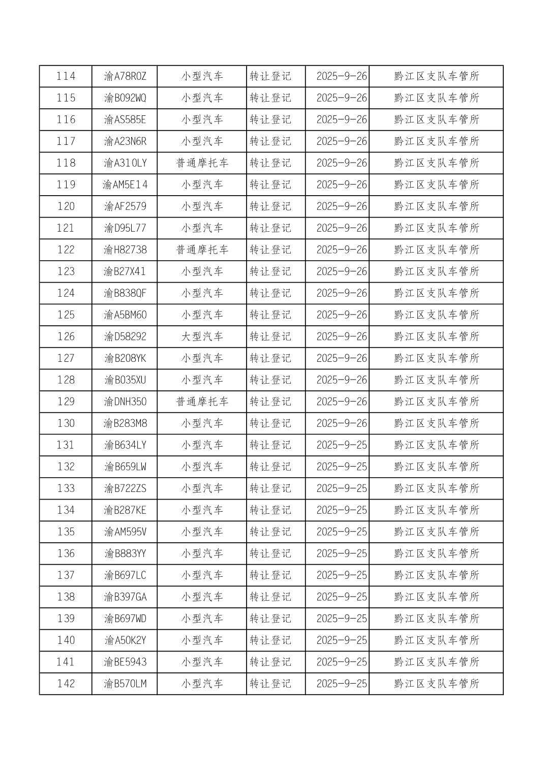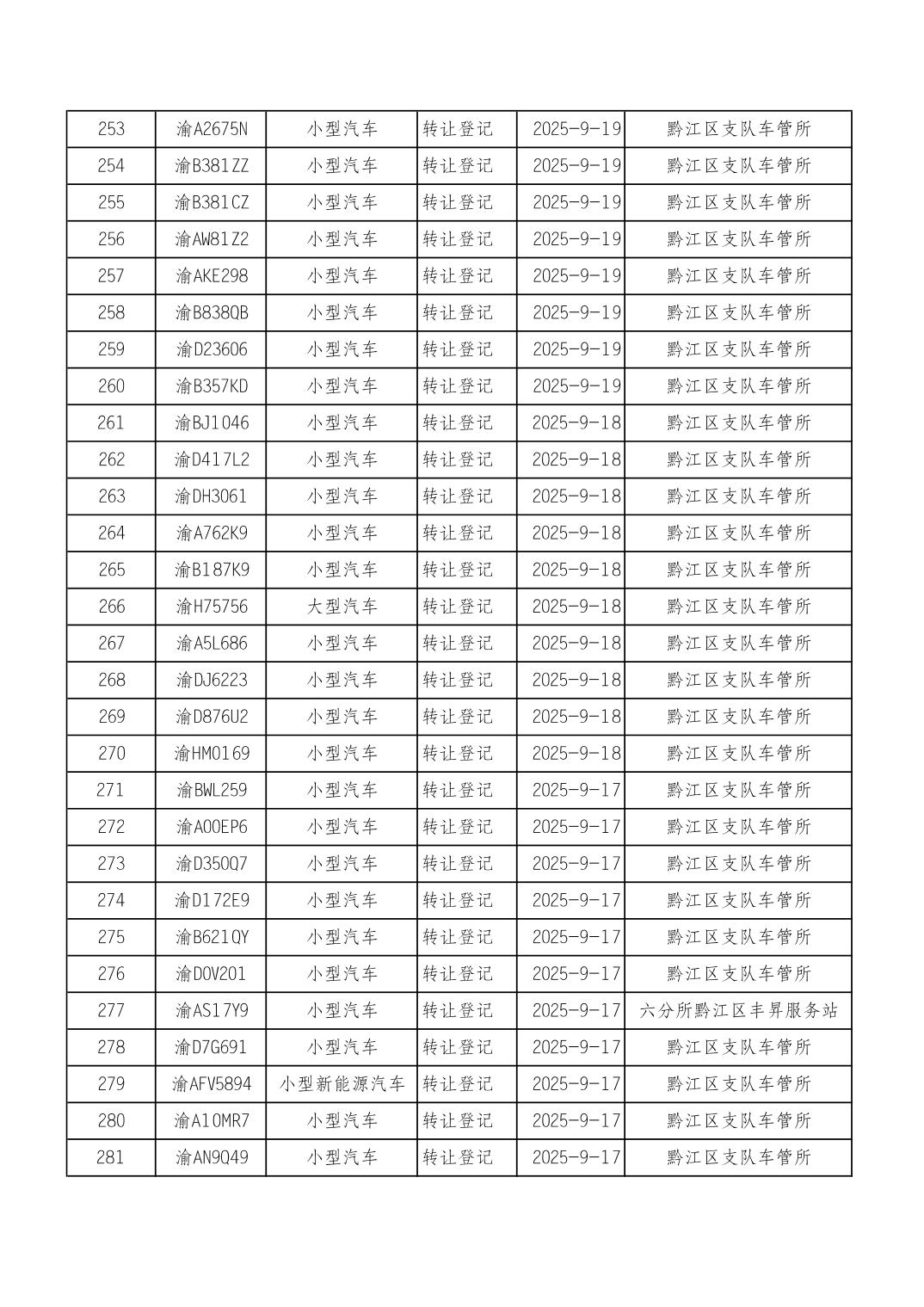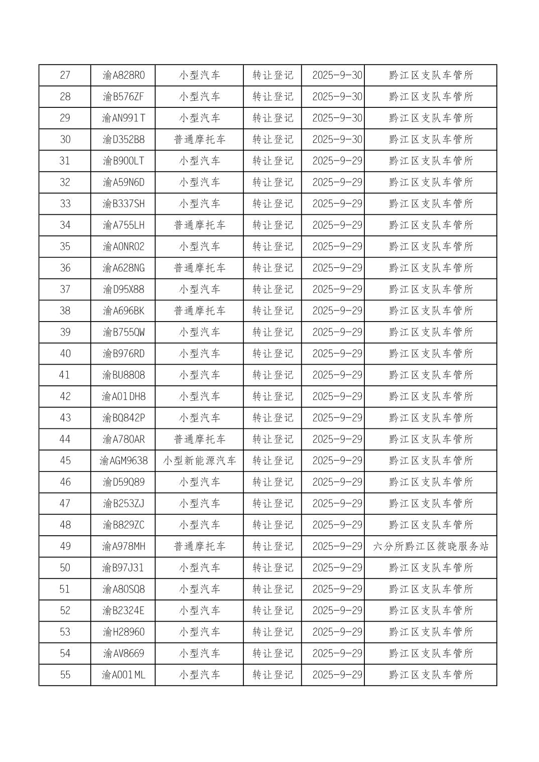 2025年9月15日至9月30日车管所相关行政许可结果公开(机动车转让登记)