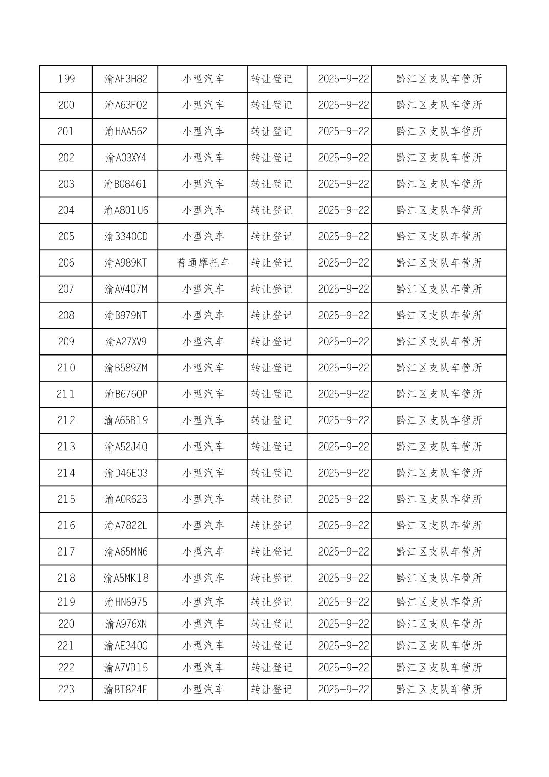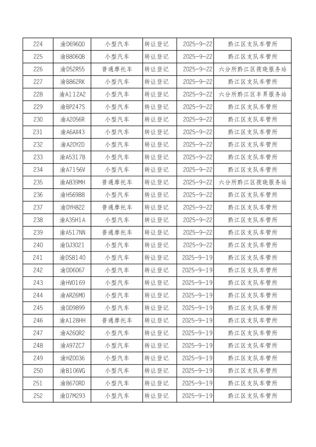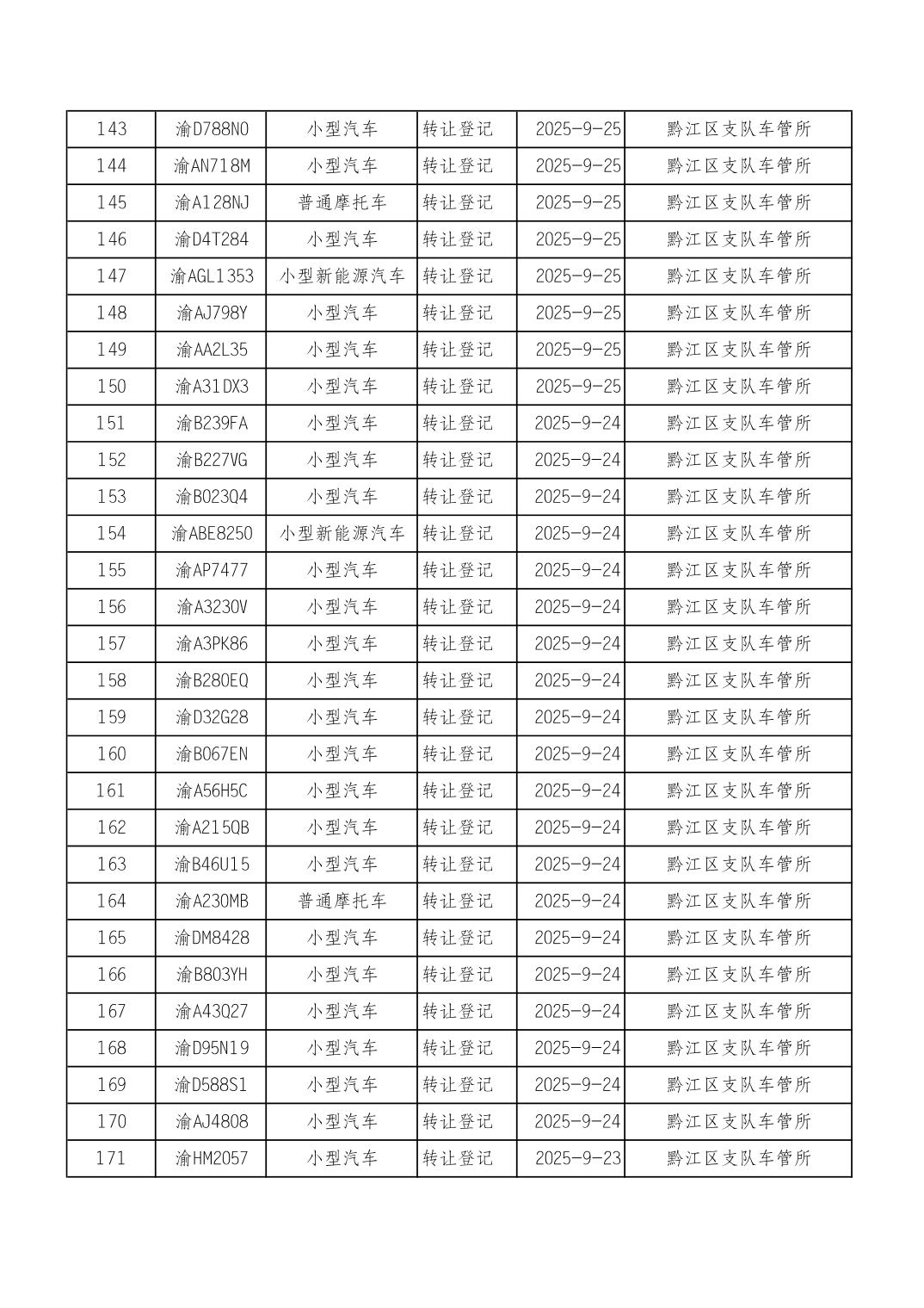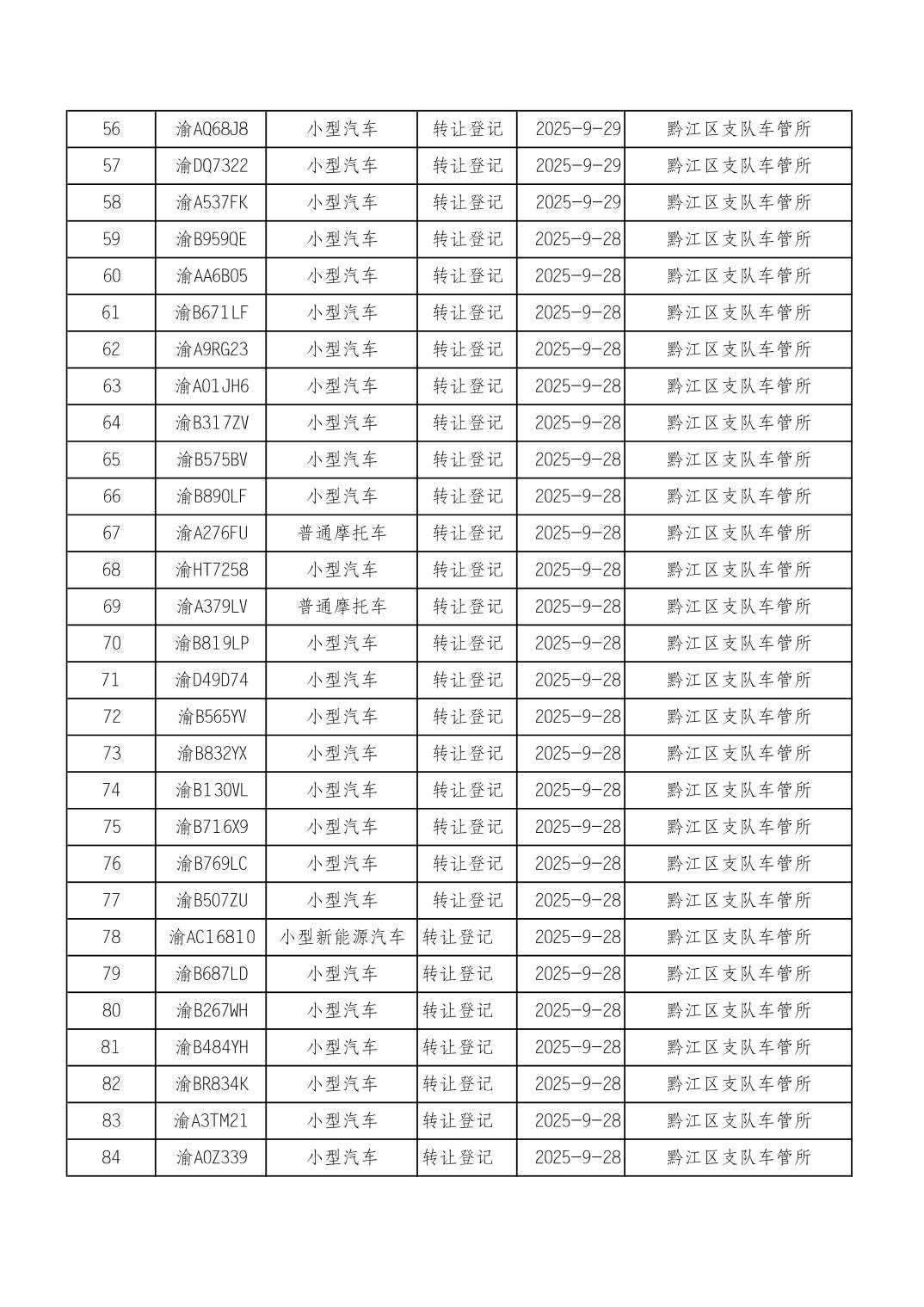 2025年9月15日至9月30日车管所相关行政许可结果公开(机动车转让登记)