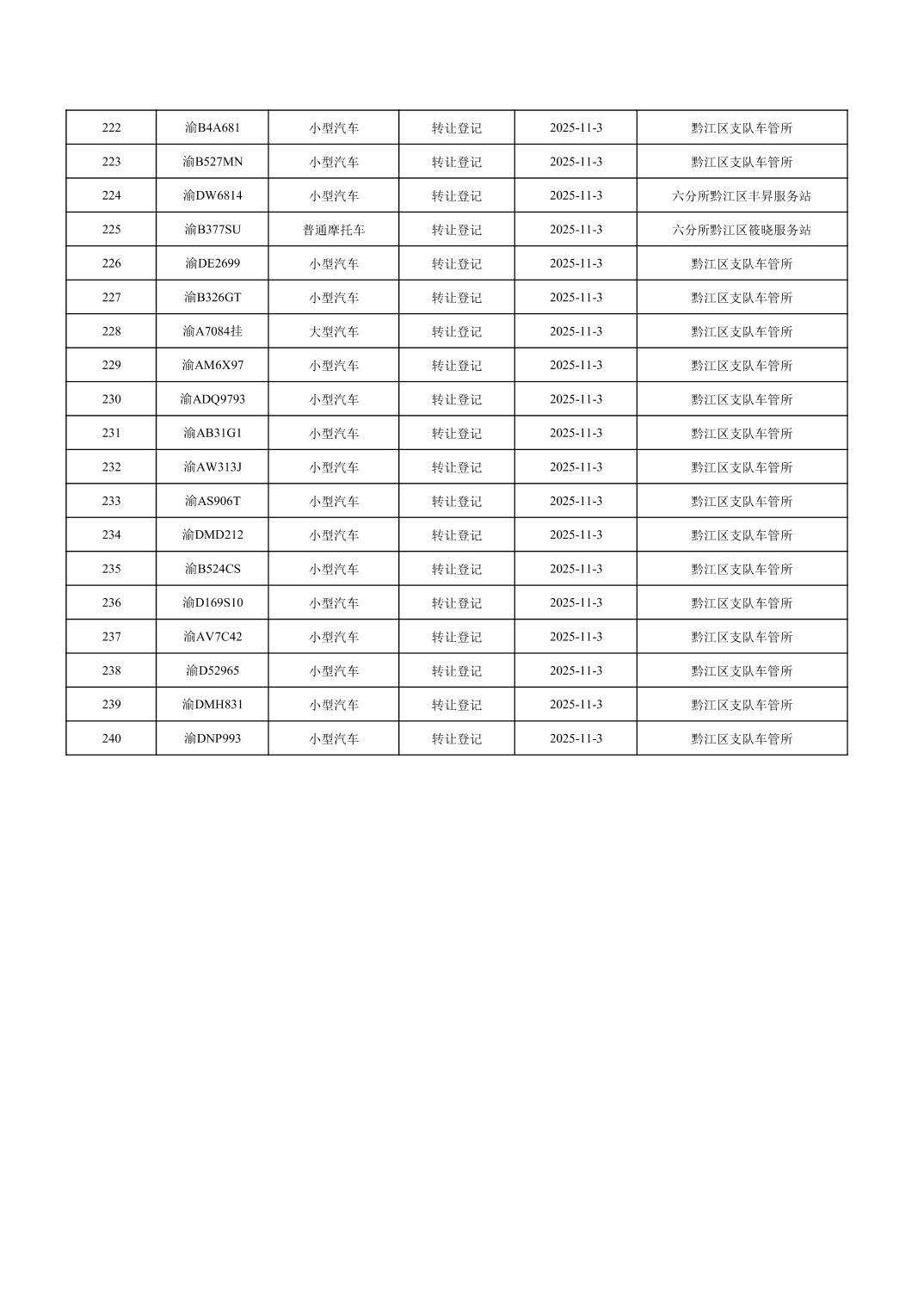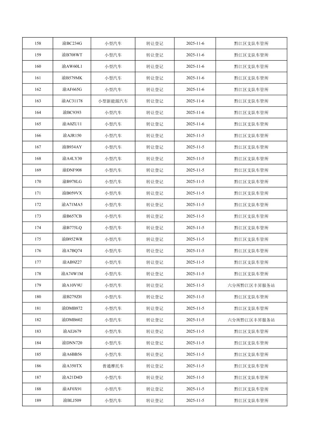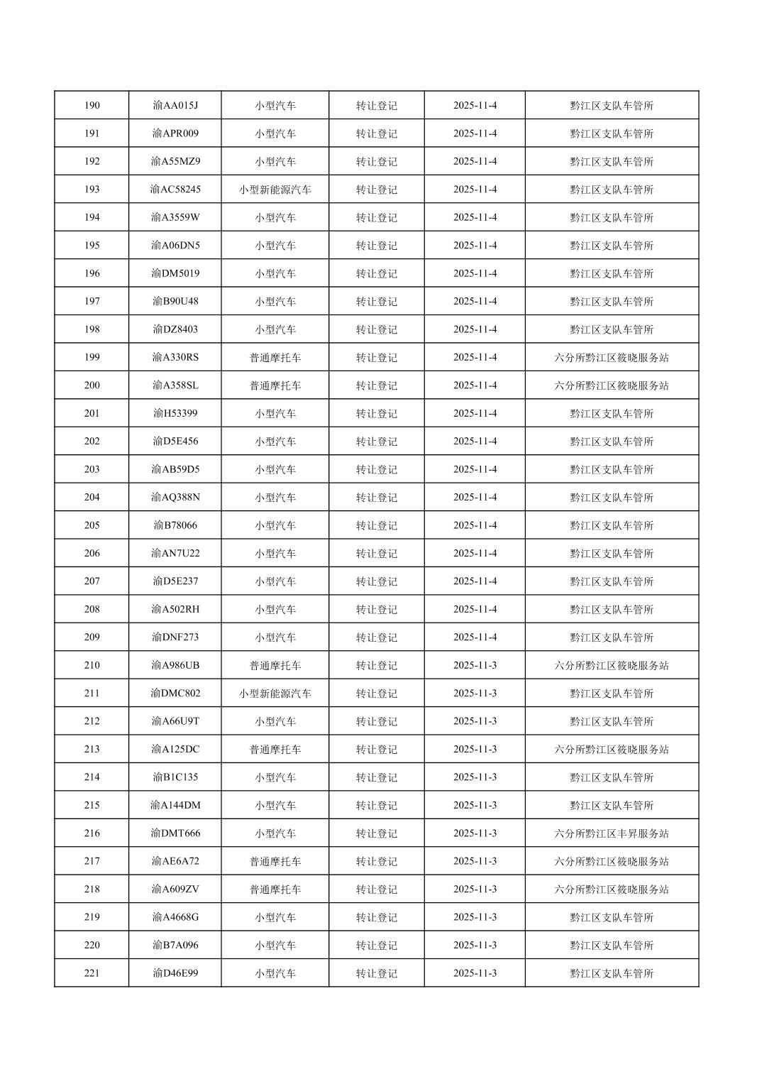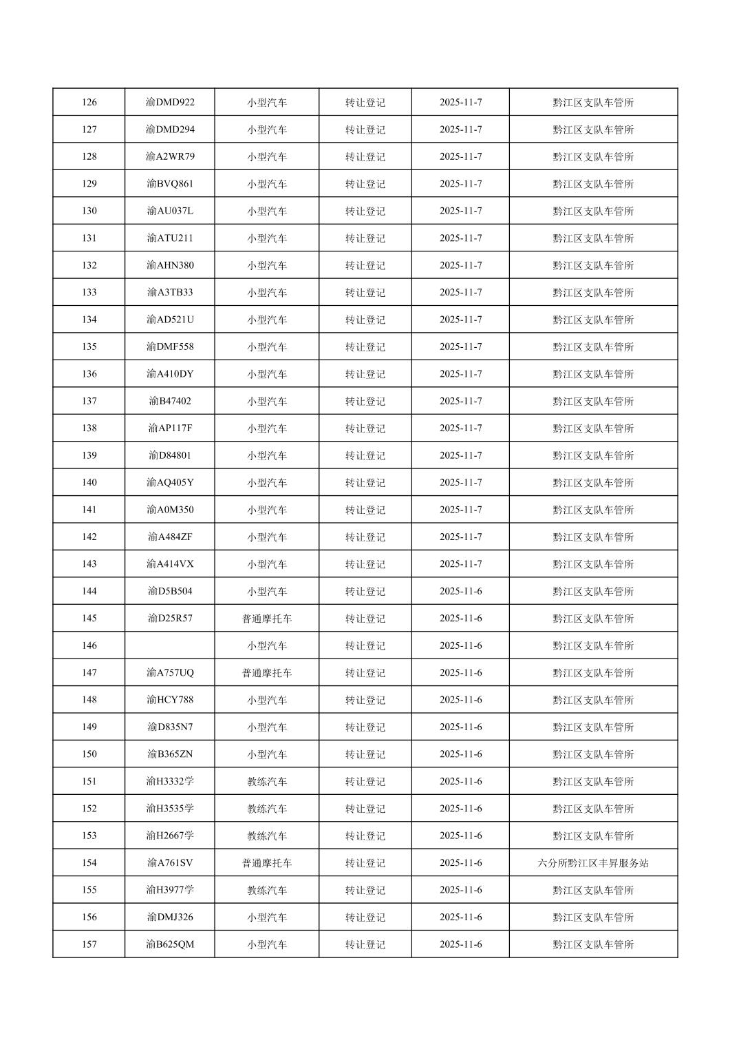 2025年11月1日至11月15日车管所相关行政许可结果公开(机动车转让登记)