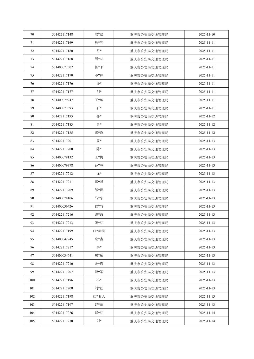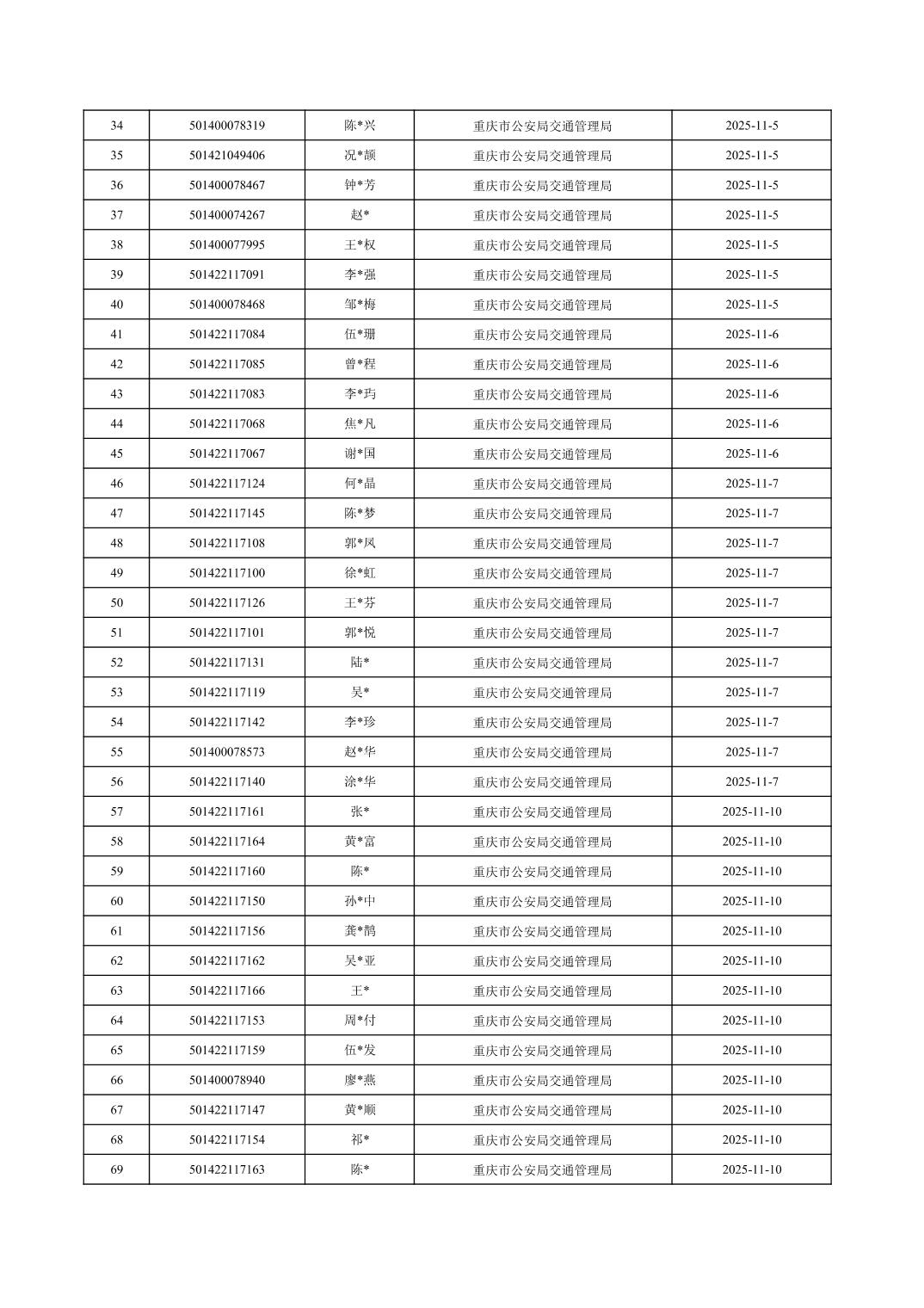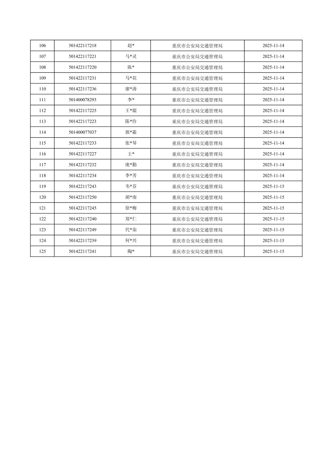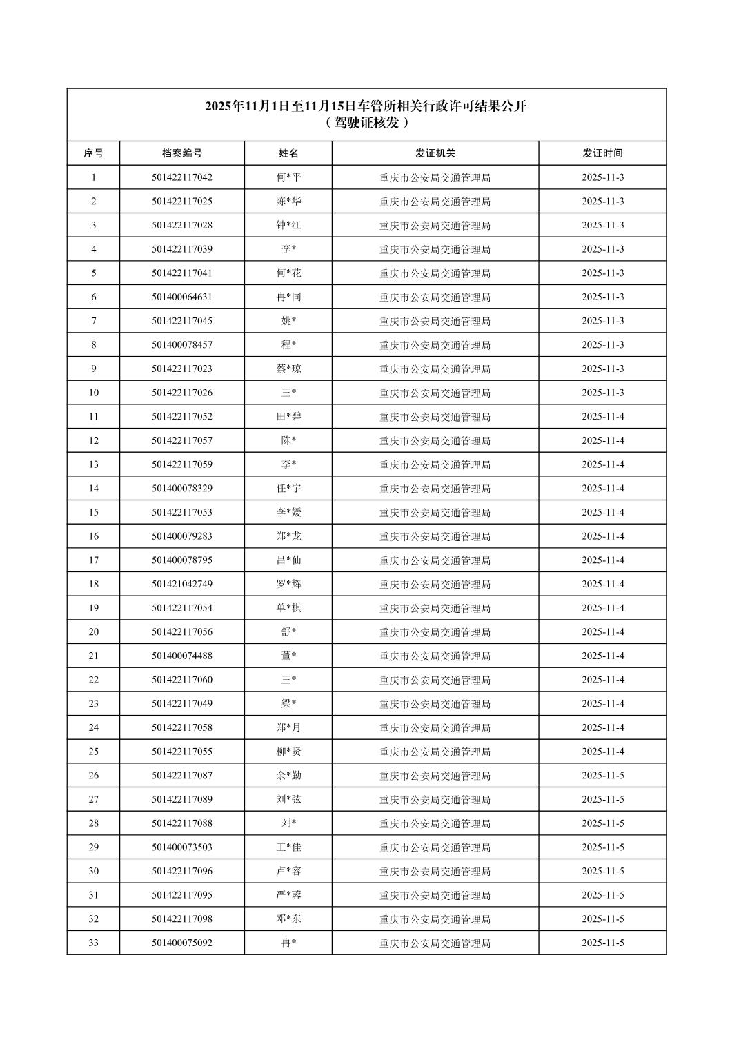 2025年11月1日至11月15日车管所相关行政许可结果公开(驾驶证核发)