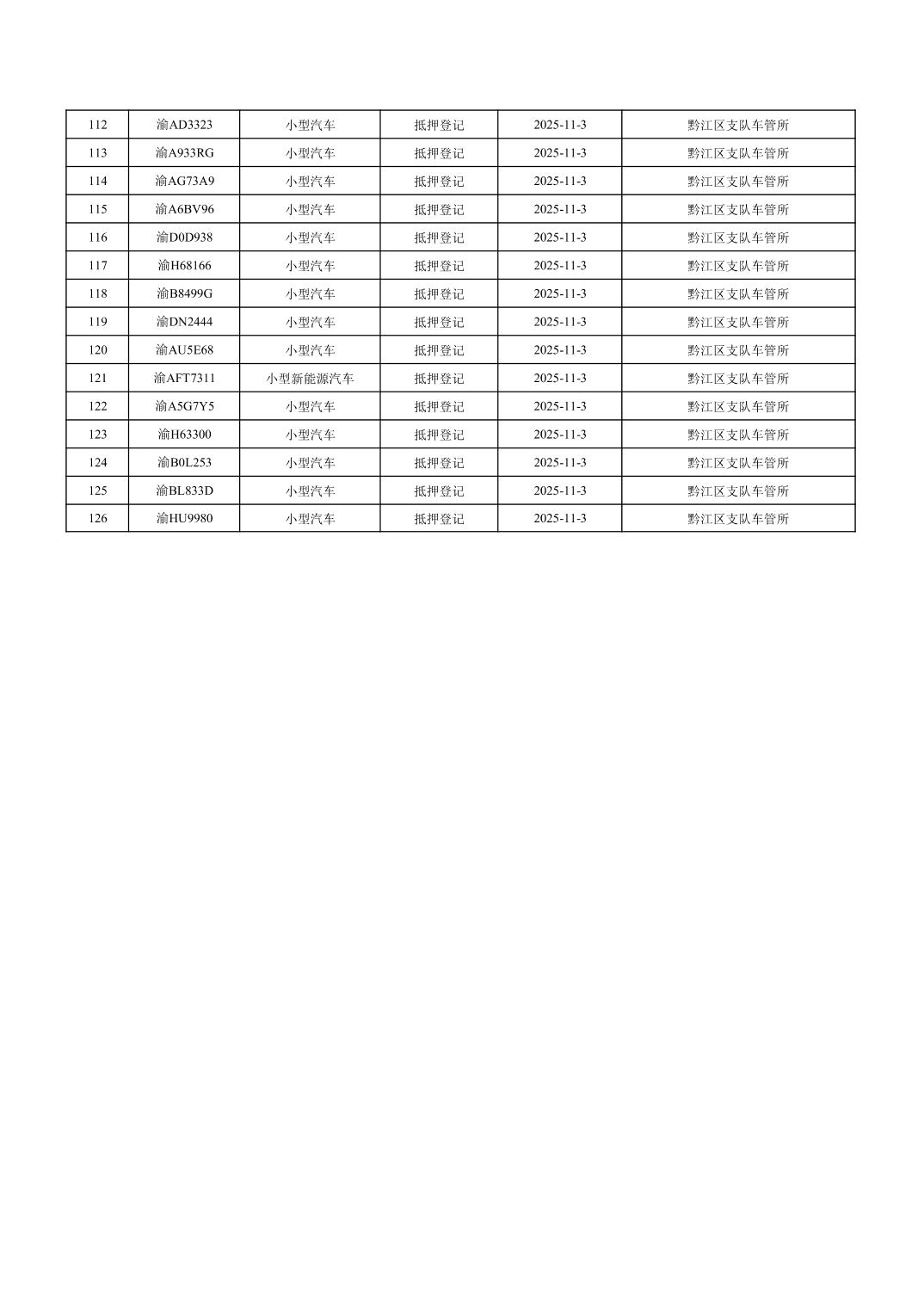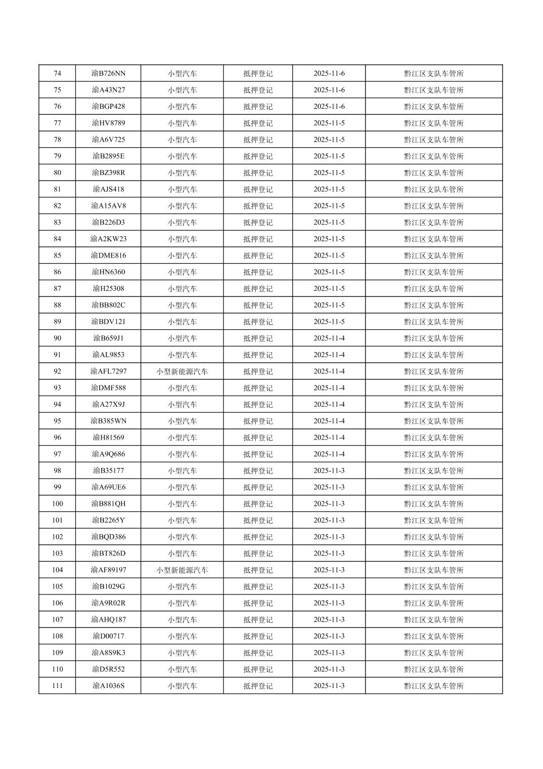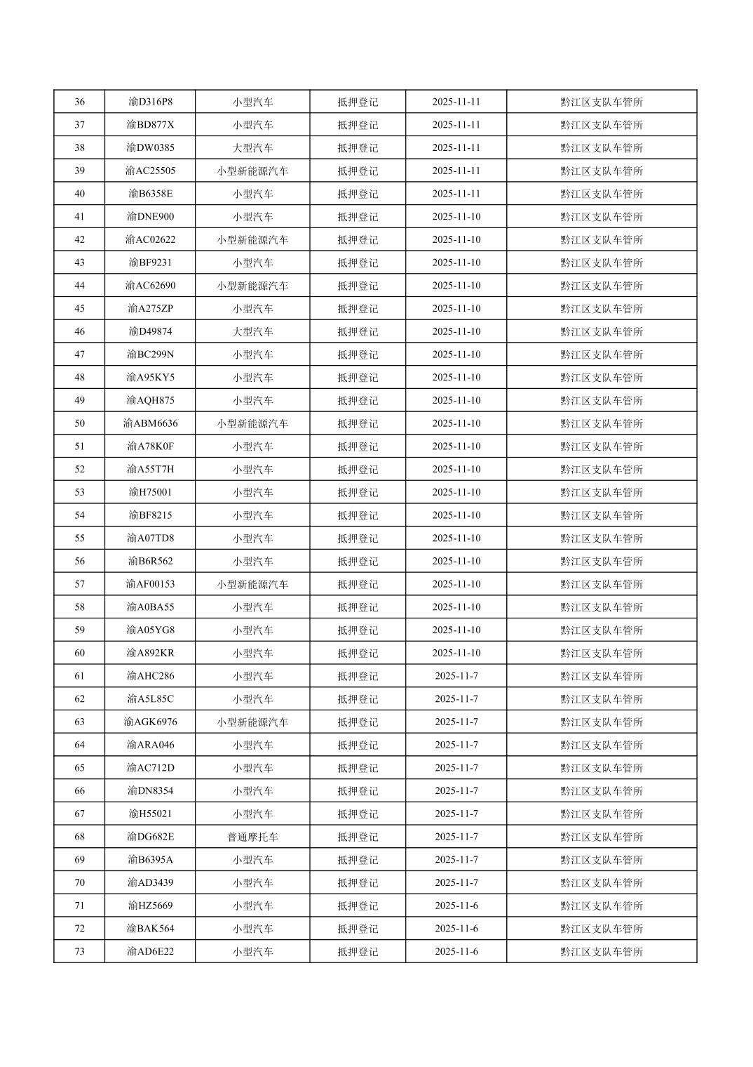2025年11月1日至11月15日车管所相关行政许可结果公开(机动车抵押登记)