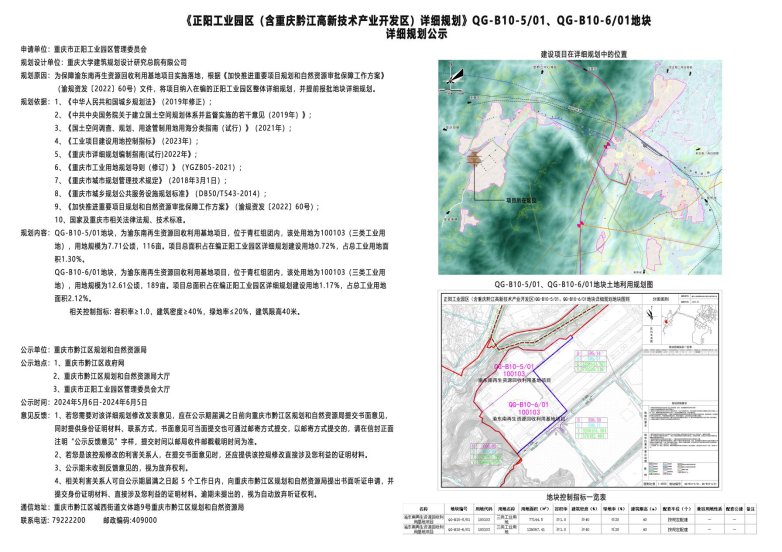《正阳工业园区(含重庆黔江高新技术产业开发区)详细规划》QG-B10-5/01、QG-B10-6/01地块详细规划 |