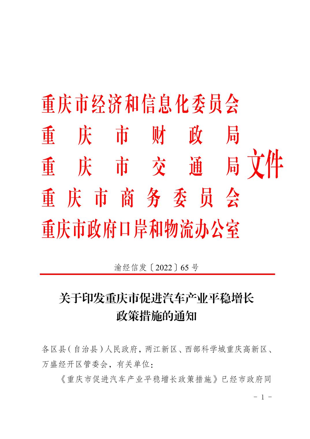 转发关于印发重庆市促进汽车产业平稳增长政策措施的通知