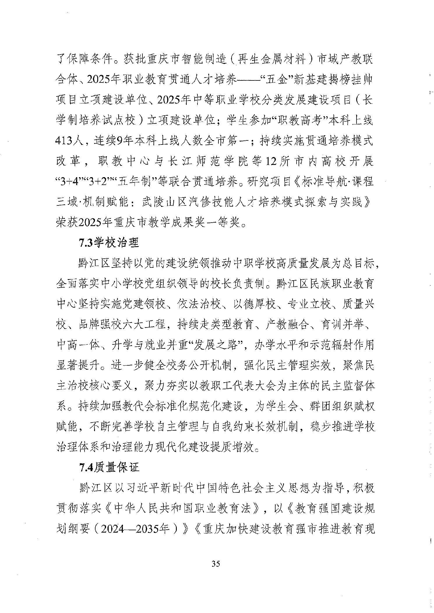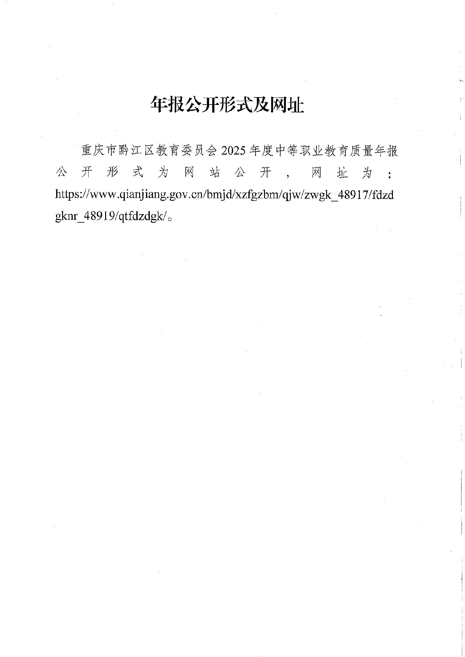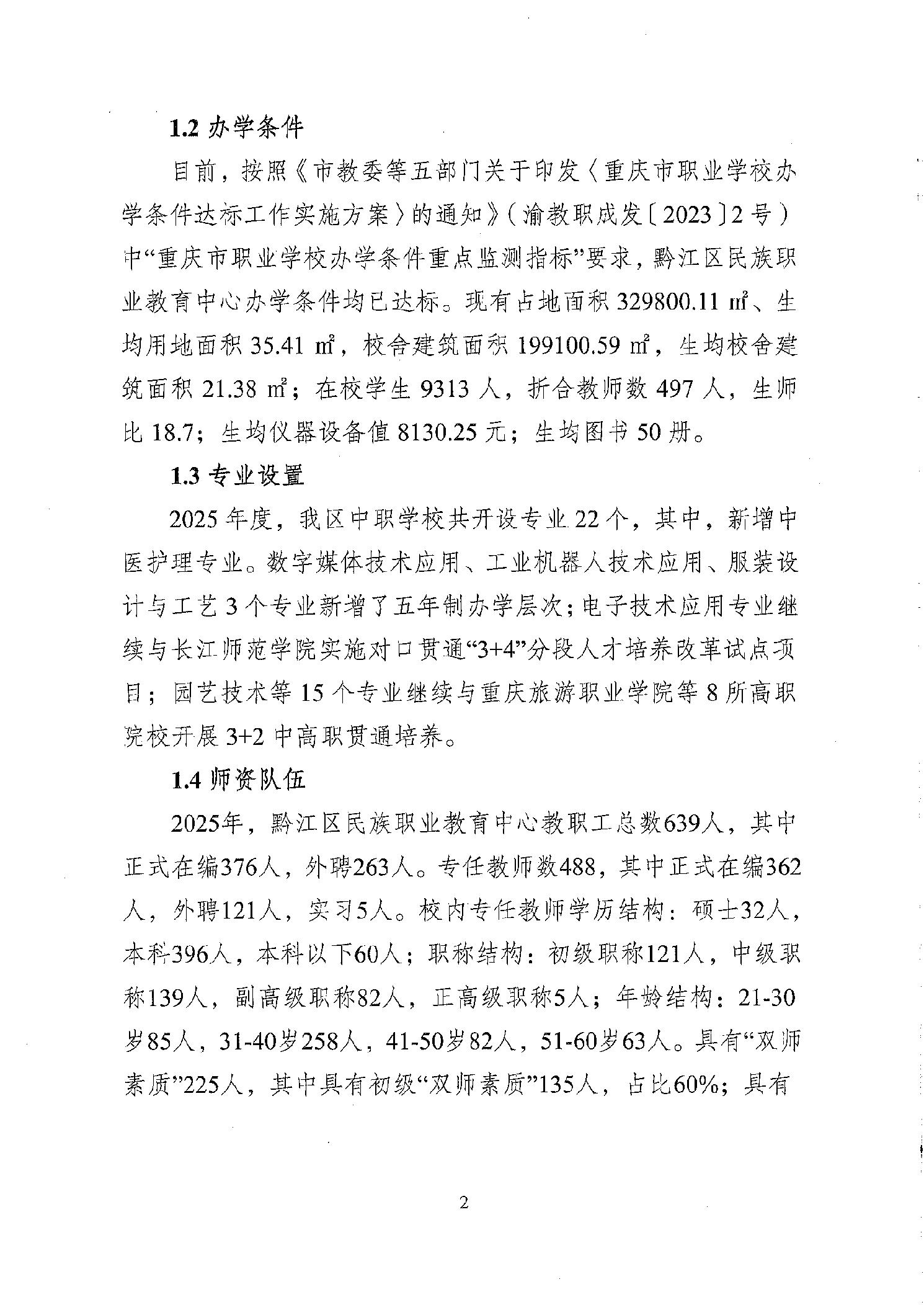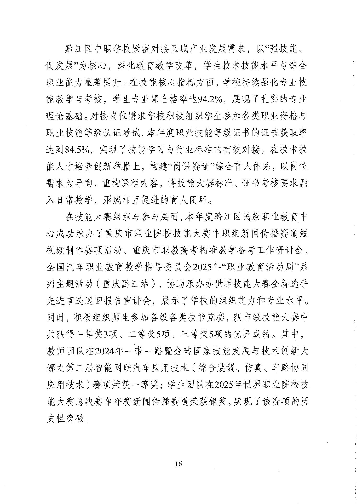 重庆市黔江区教育委员会 黔江区中等职业教育 质量年度报告 (2025年度)