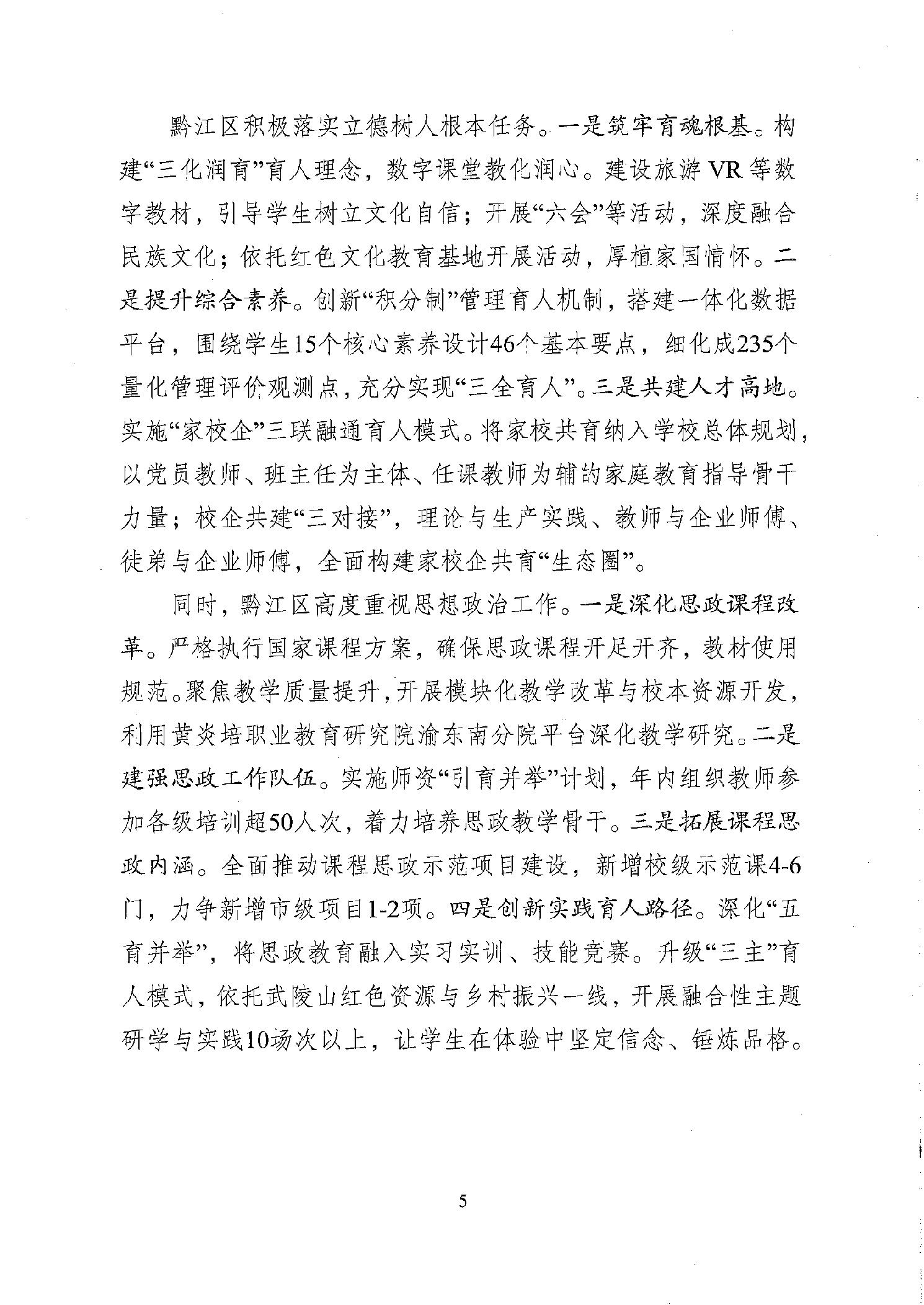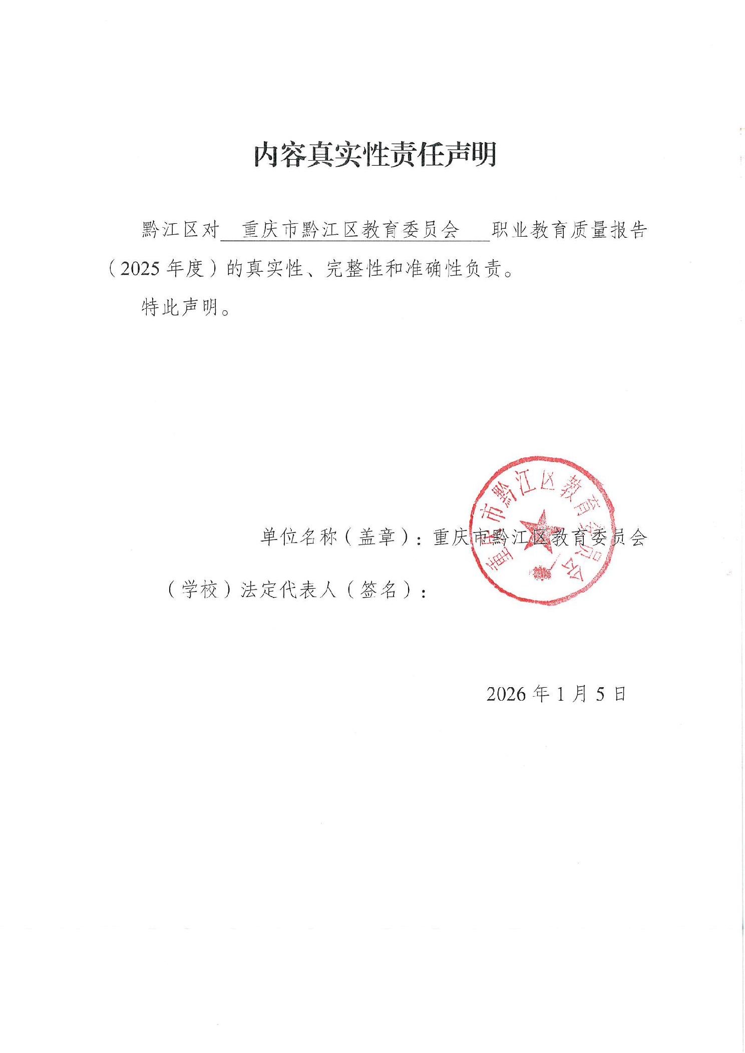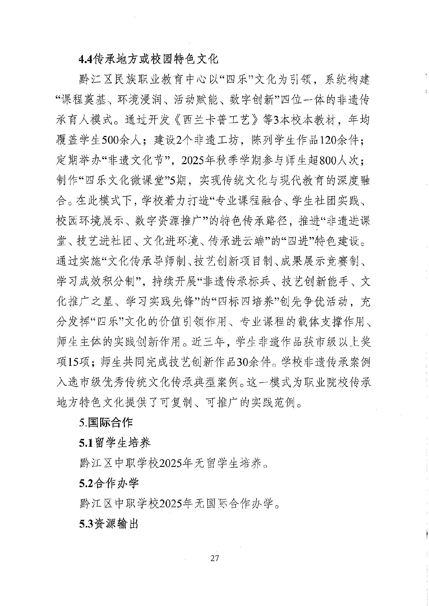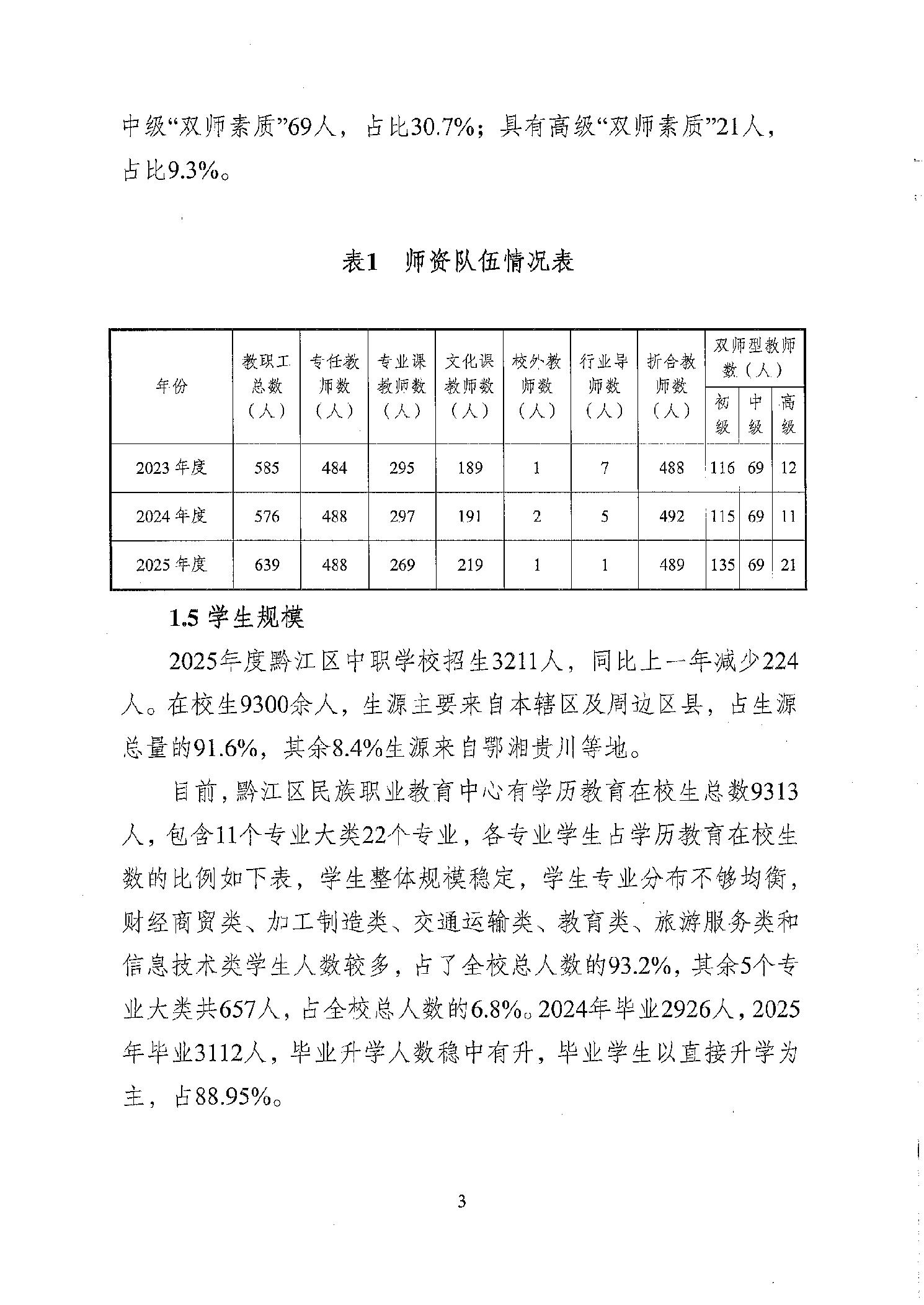 重庆市黔江区教育委员会 黔江区中等职业教育 质量年度报告 (2025年度)