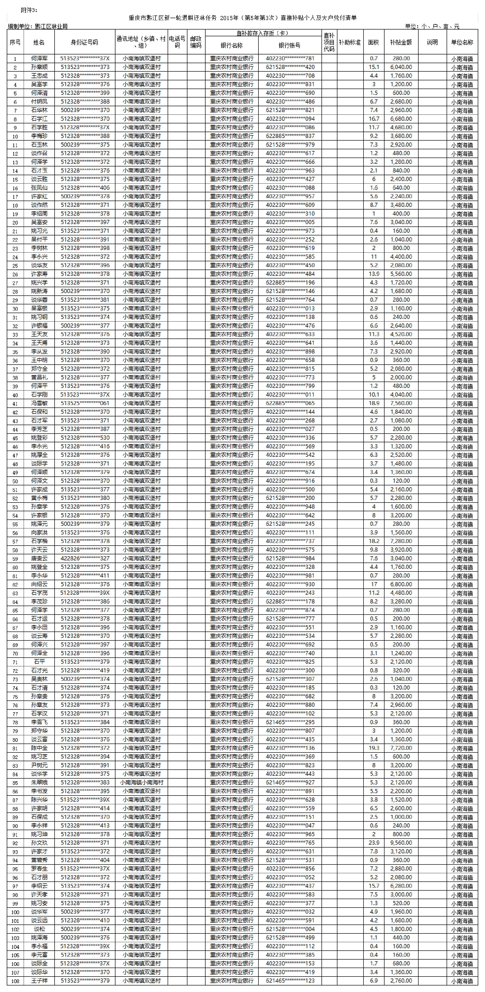 (2015年第3次)重庆市黔江区新一轮退耕还林直接补贴个人及大户兑付退耕户清单(个人补贴系统).xls