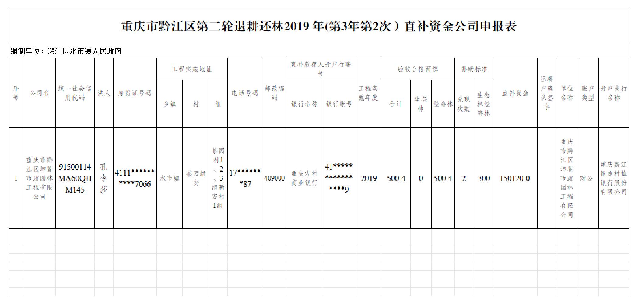 重庆市黔江区第二轮退耕还林2019 年(第3年第2次)直补资金公司申报表.xls
