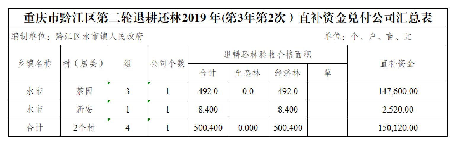 重庆市黔江区第二轮退耕还林2019 年(第3年第2次)直补资金兑付公司汇总表.xlsx