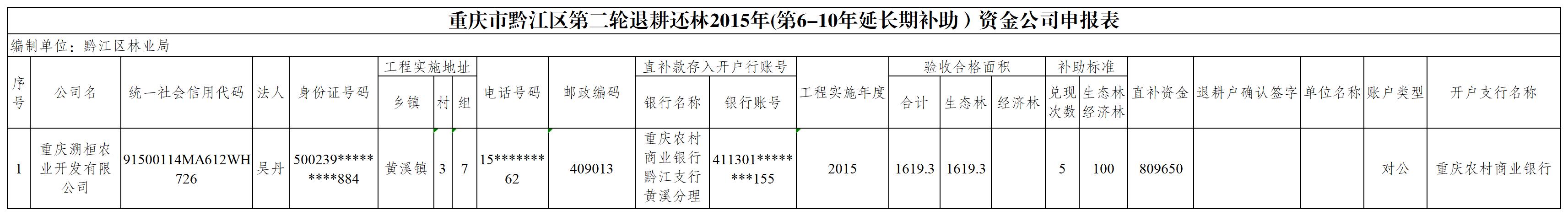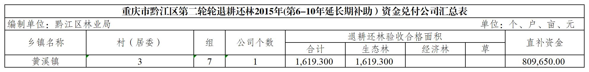 重庆市黔江区第二轮轮退耕还林2015年(第6-10年延长期补助)资金兑付公司汇总表(黄溪镇).xls