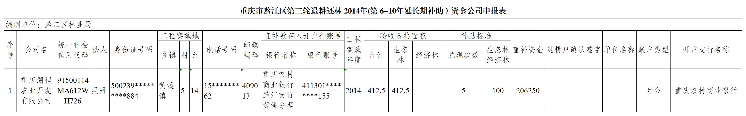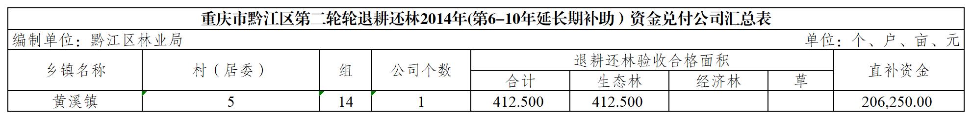 重庆市黔江区第二轮轮退耕还林2014年(第6-10年延长期补助)资金兑付公司汇总表(黄溪镇).xls