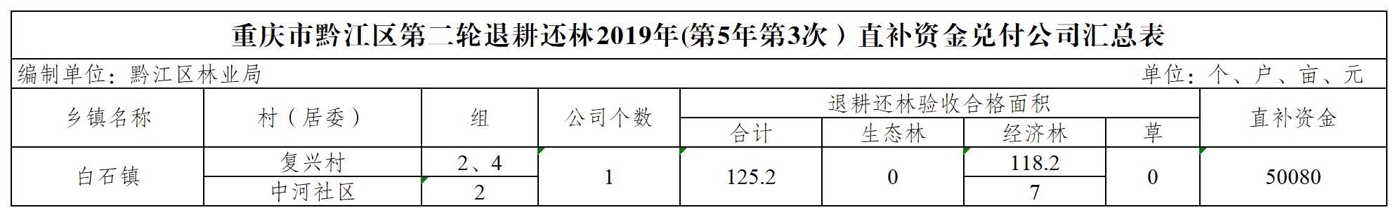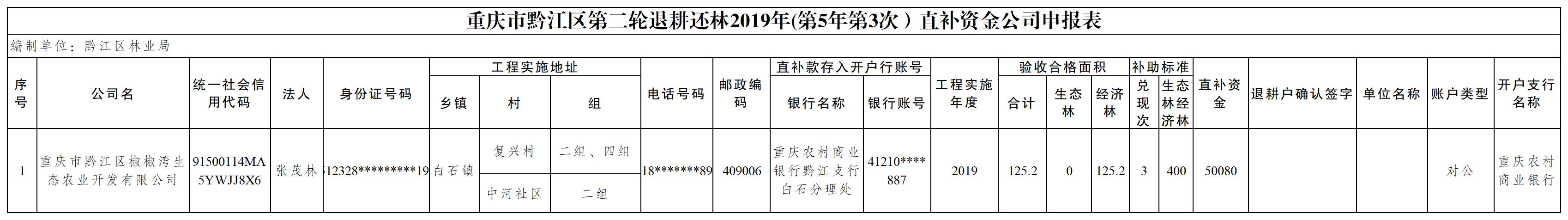 重庆市黔江区林业局2025年第二轮退耕还林11月直补资金兑付情况公示(白石镇)
