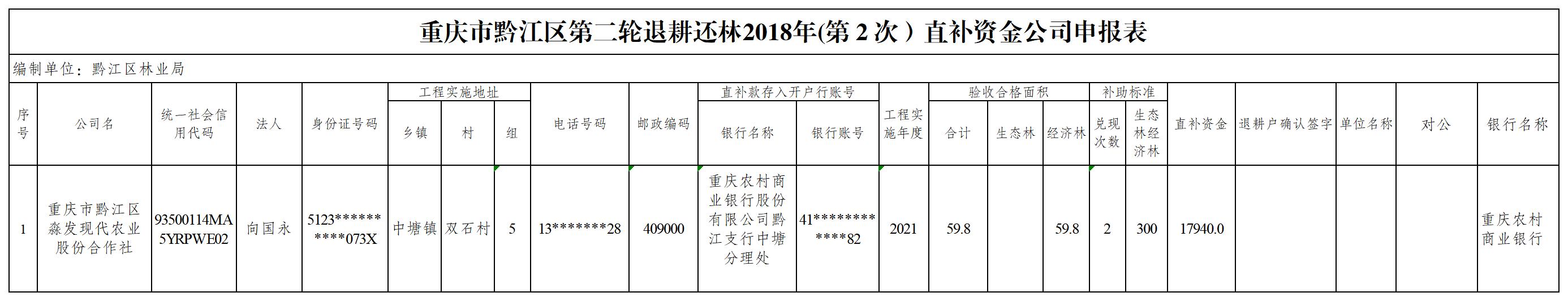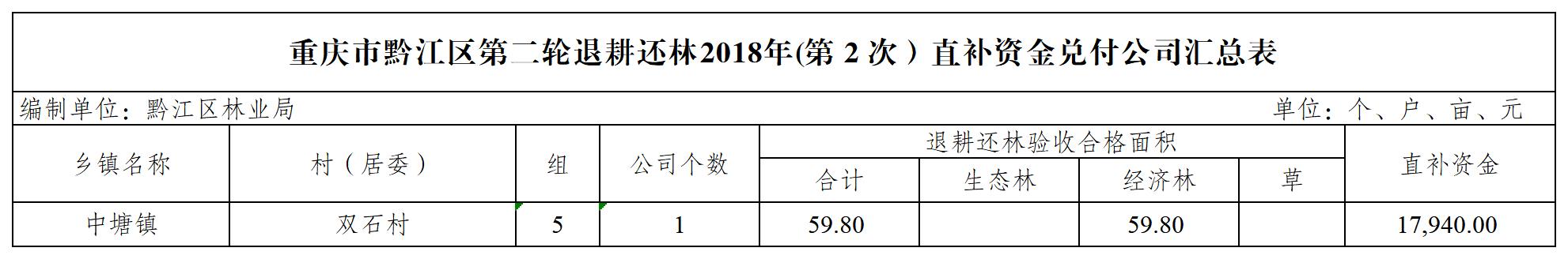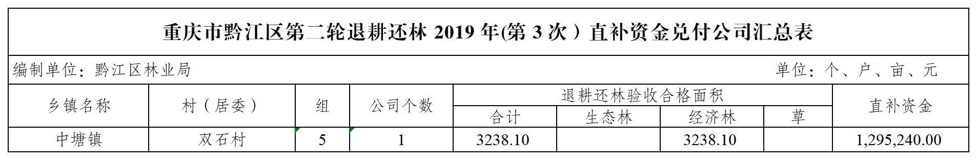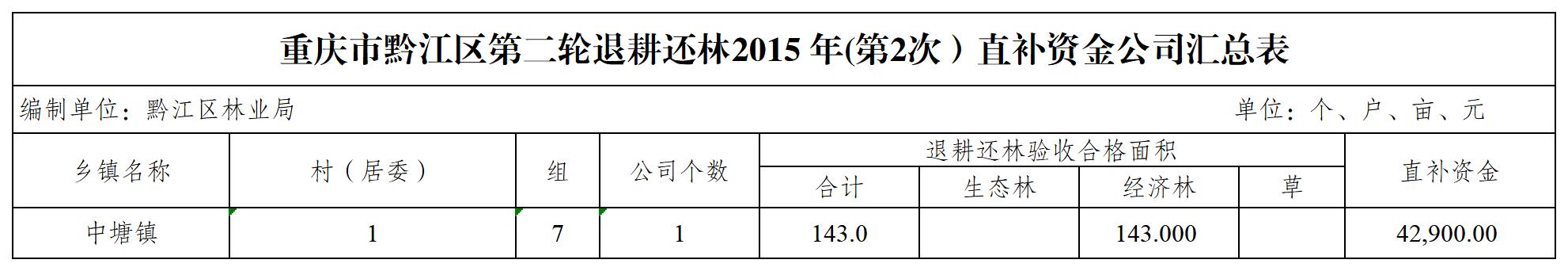 重庆市黔江区林业局2025年第二轮退耕还林12月直补资金兑付情况公示(中塘镇)