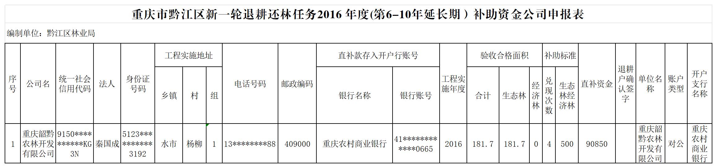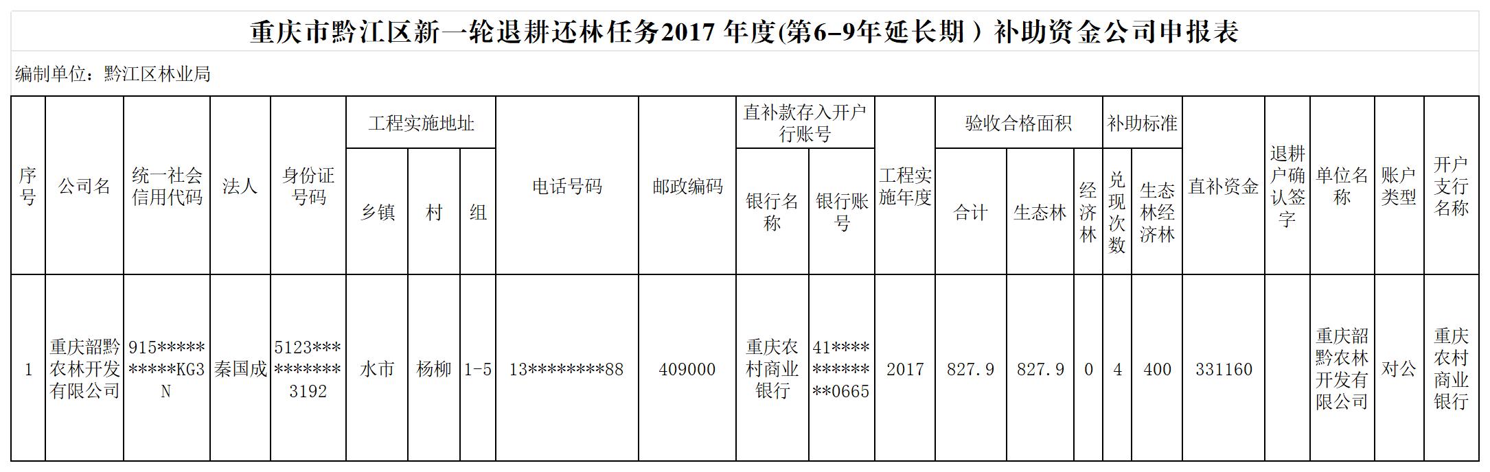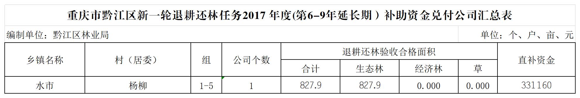 重庆市黔江区林业局2026年第二轮退耕还林1月补助资金兑付情况公示(水市镇)
