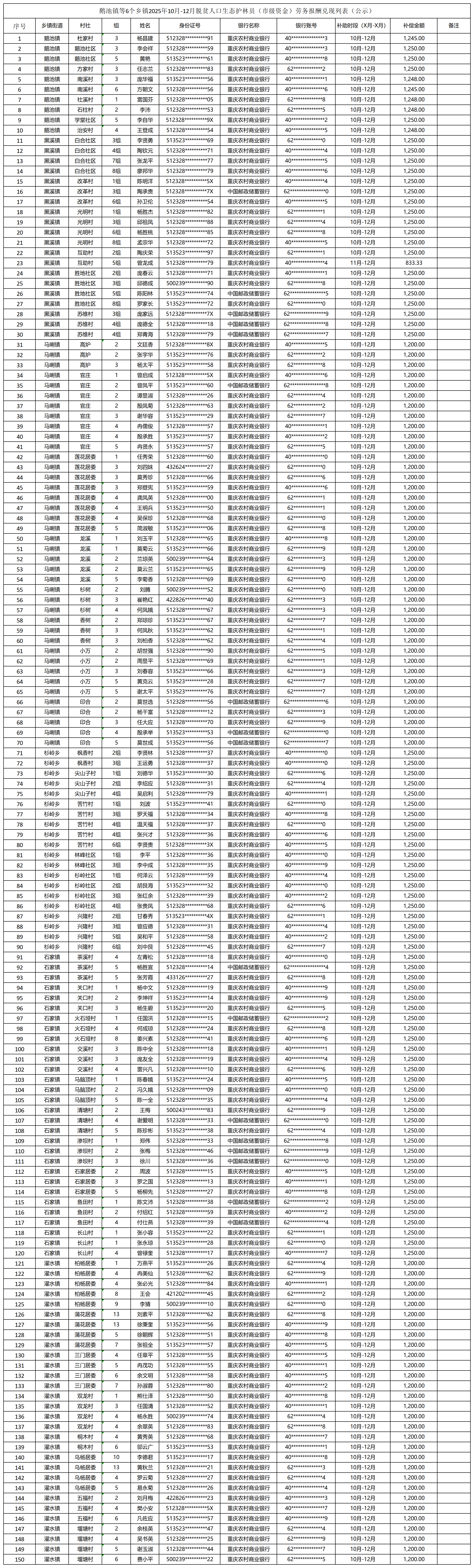 关于鹅池镇等6个乡镇2025年10月—12月脱贫人口生态护林员(市级资金)劳务报酬兑现的公示