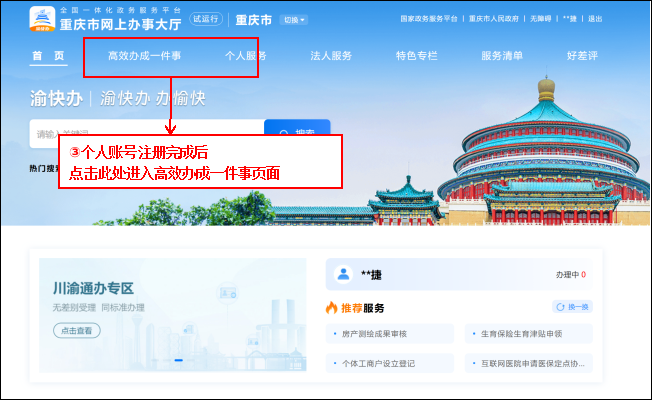 为便利群众婚姻登记后(含结婚登记和离婚登记)一次性办理生育服务证、户口婚姻状态项目变更、夫妻投靠落户,现由重庆市统筹,将上述行政服务事项整合为联办服务,通过“渝快办”网页线上一次提交,即可享受证照一站式出件,不需再往返各部门线下办理。