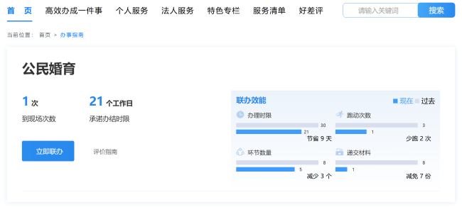 (三)进入办事指南页面,可阅读了解本事项基本信息。选择“立即联办”,进入办理页面。