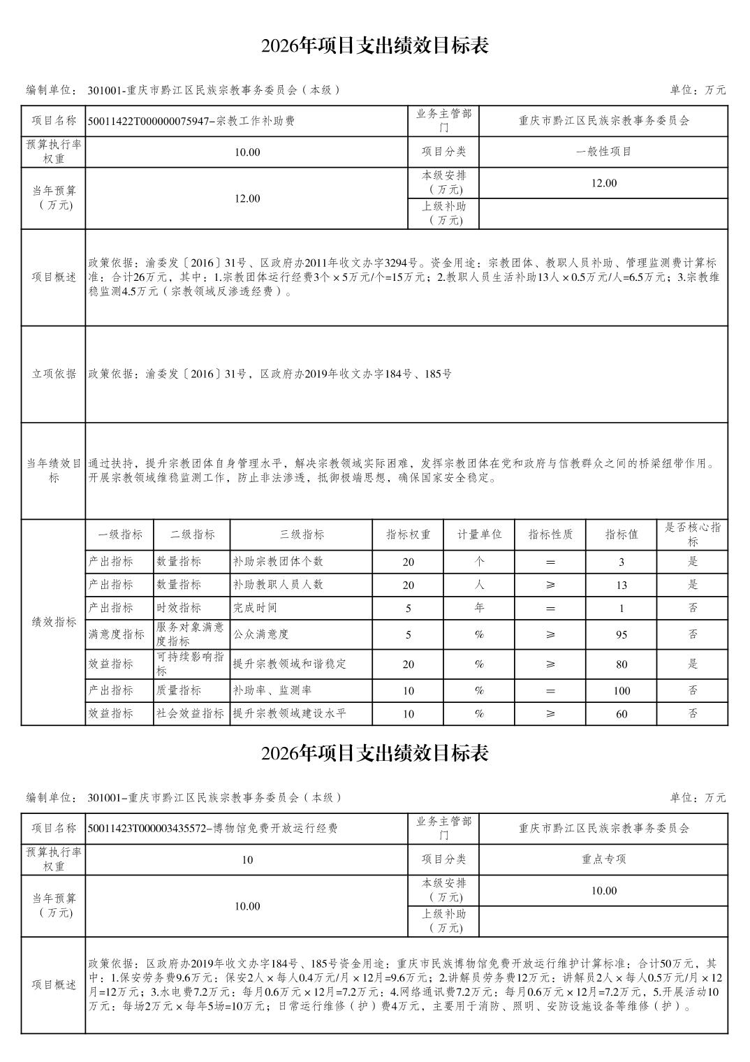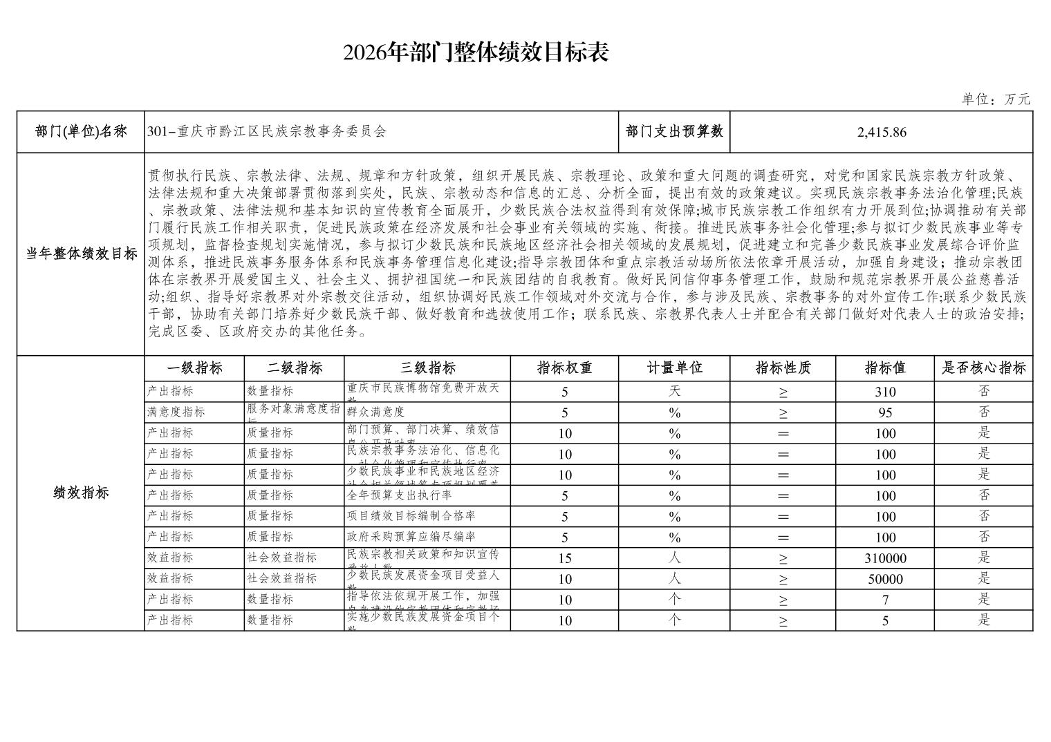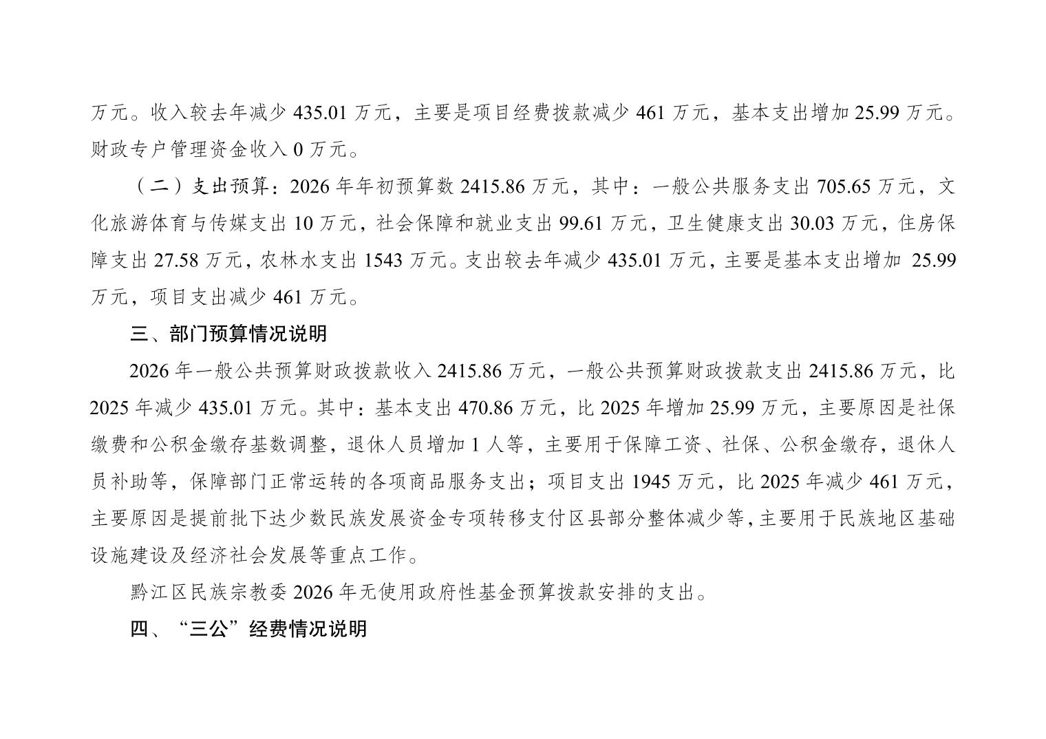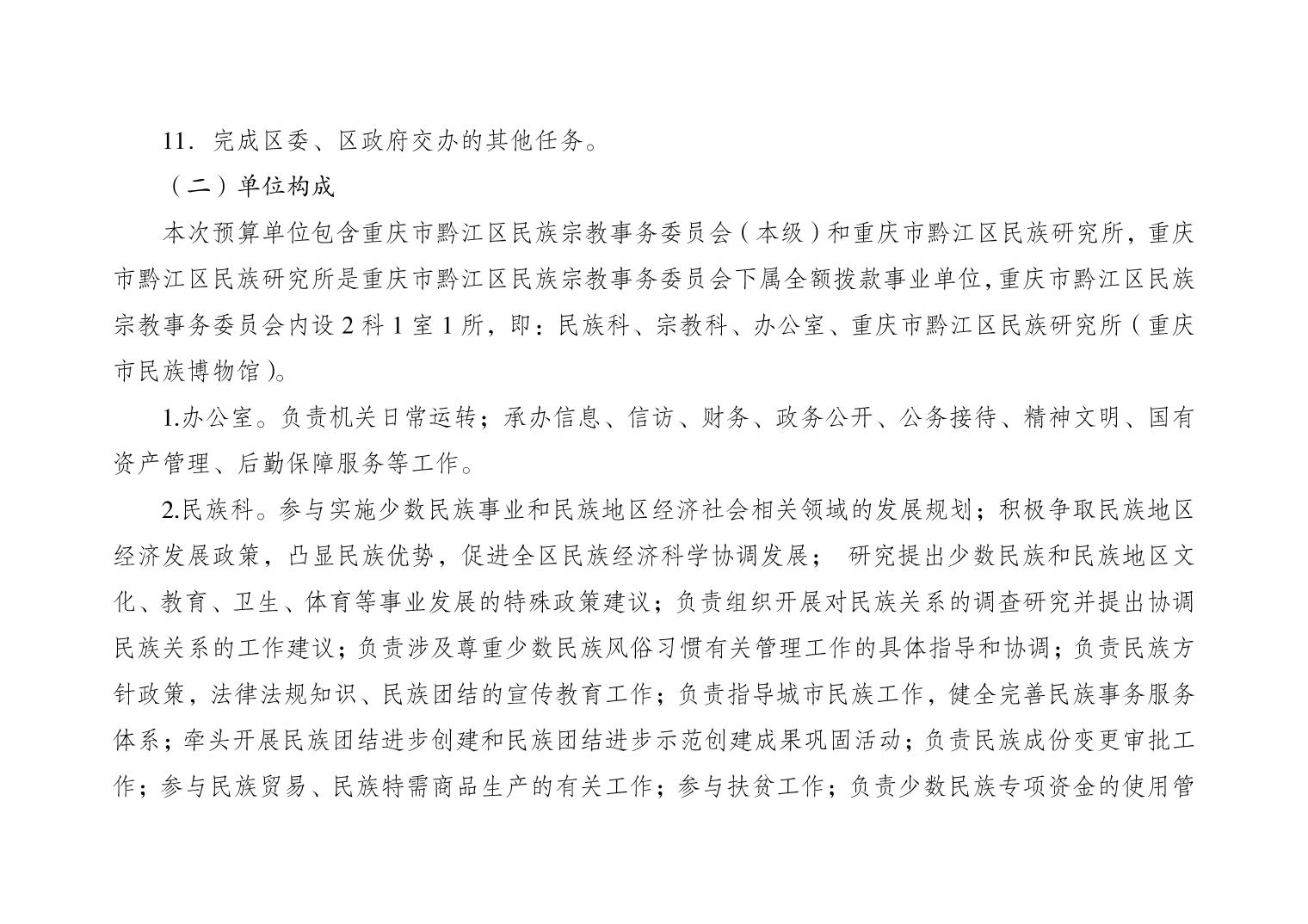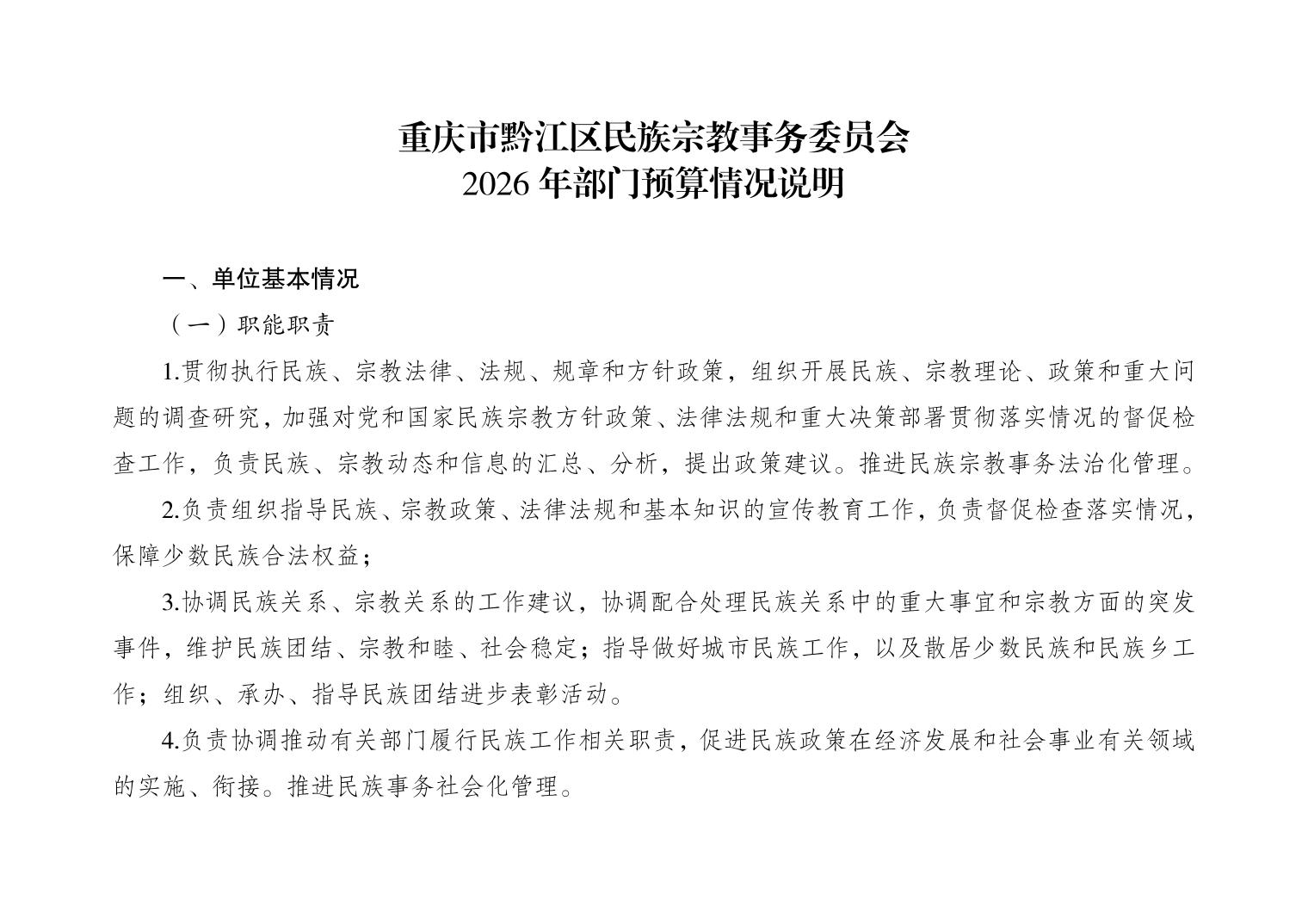 重庆市黔江区民族宗教事务委员会2026年部门预算情况说明