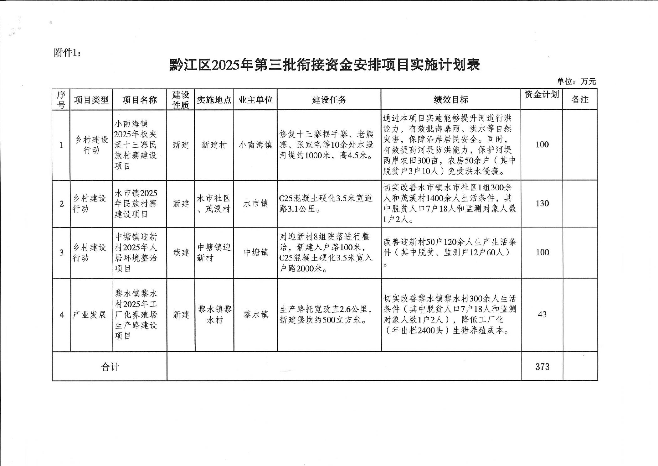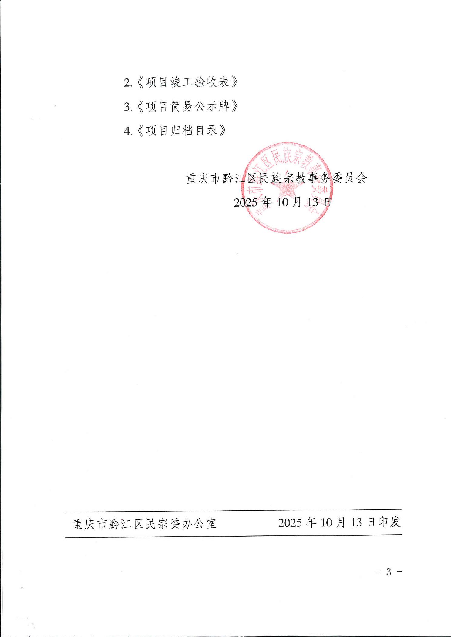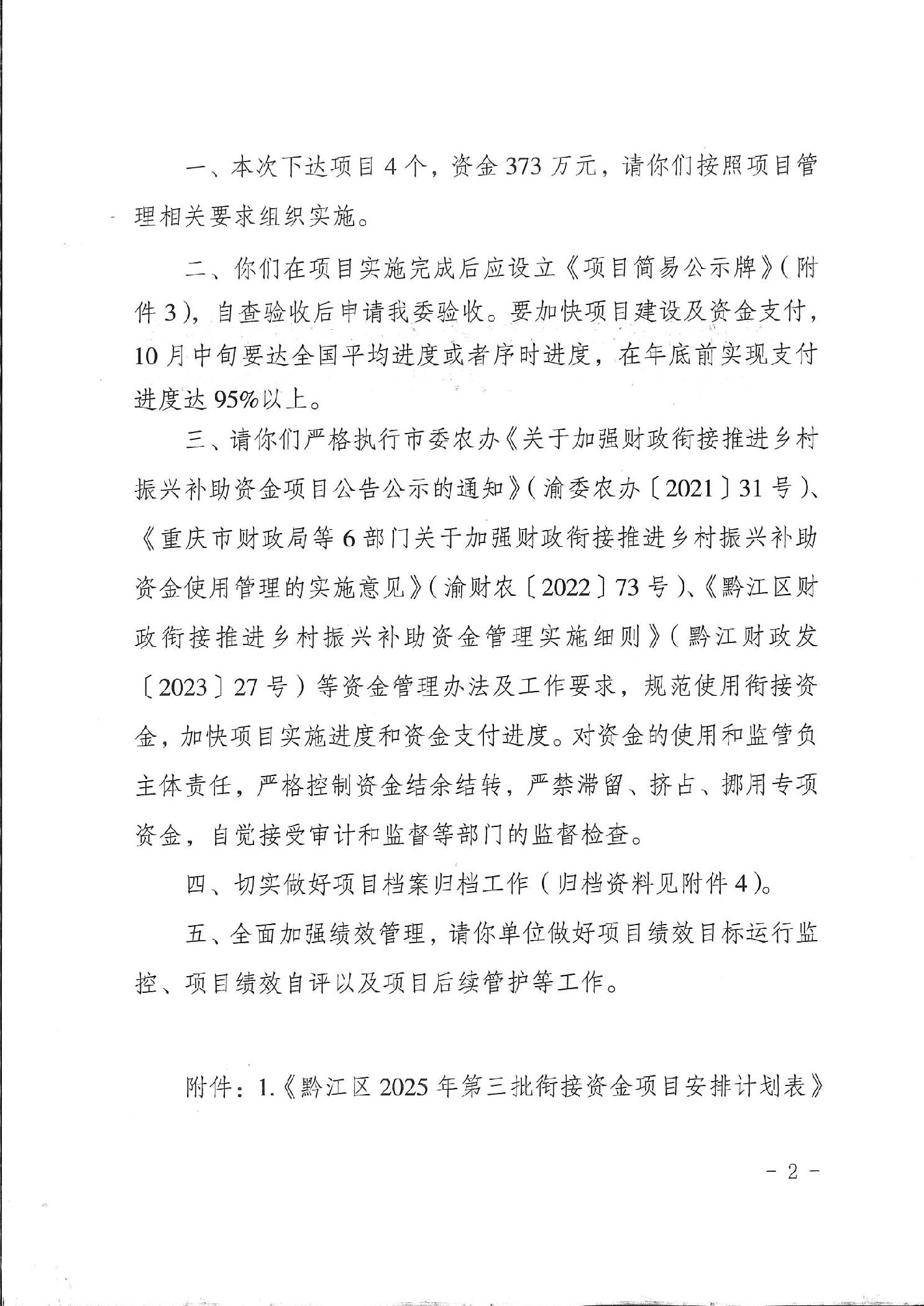 重庆市黔江区民族宗教事务委员会关于下达黔江区2025年第三批衔接资金项目计划的通知