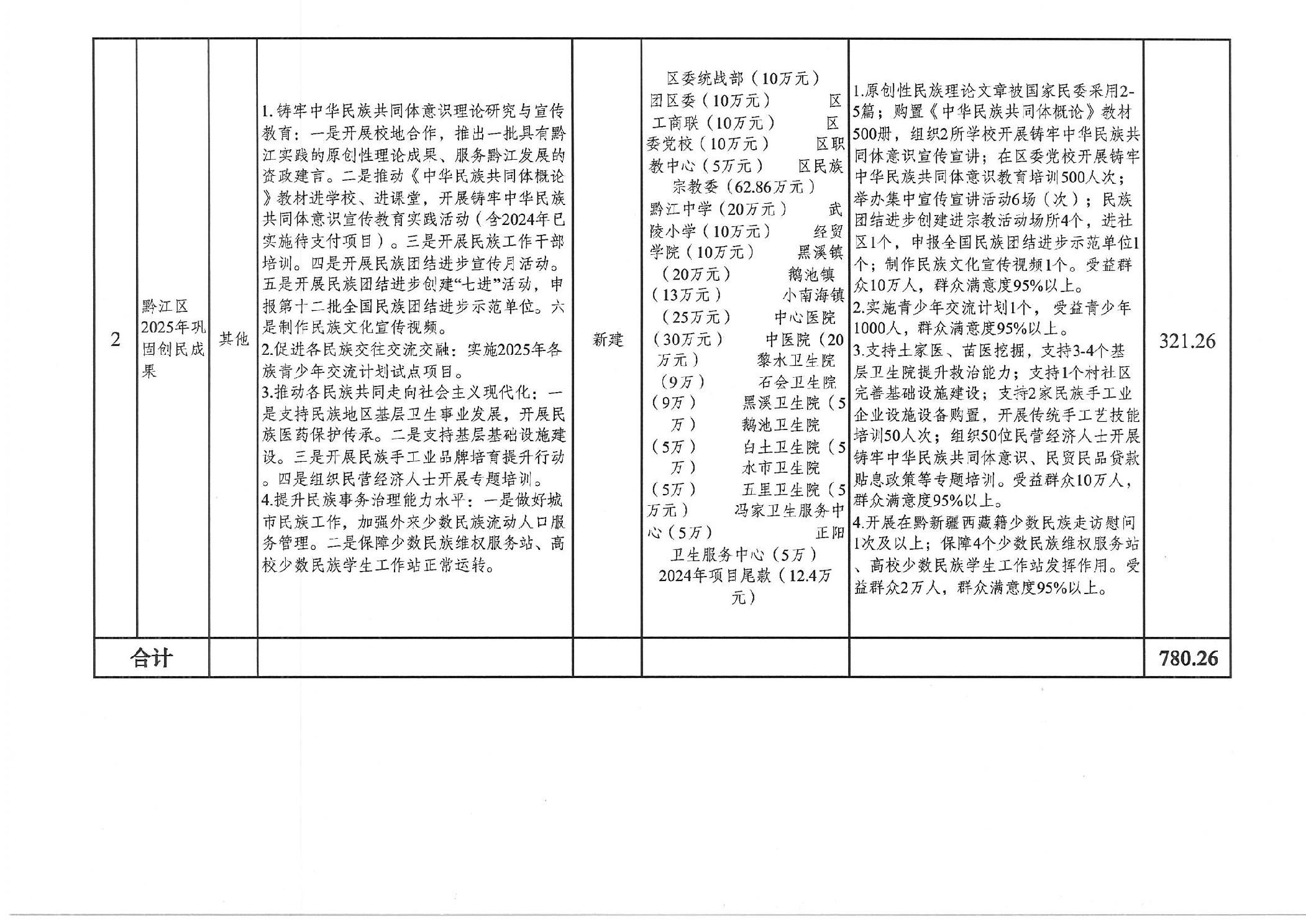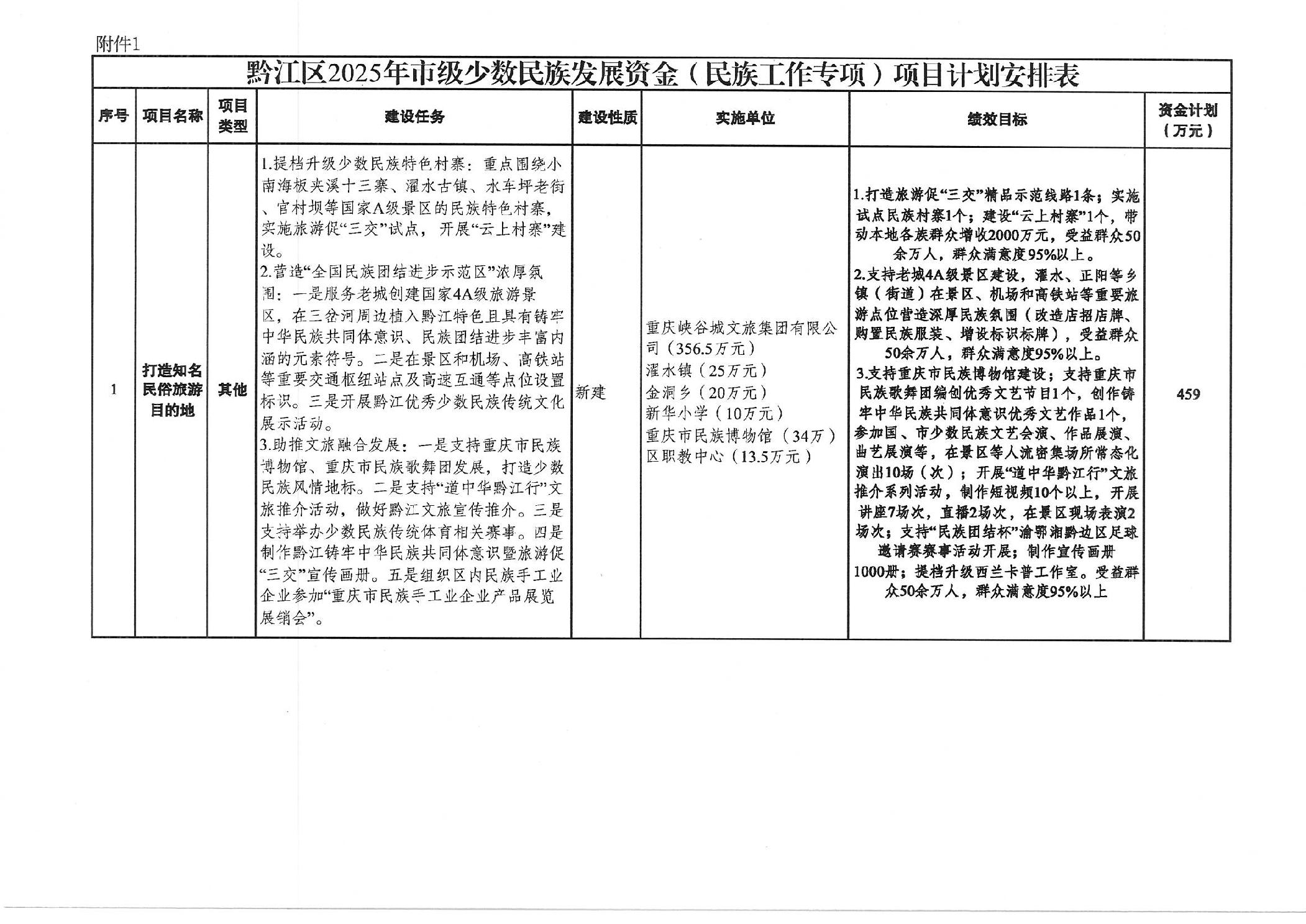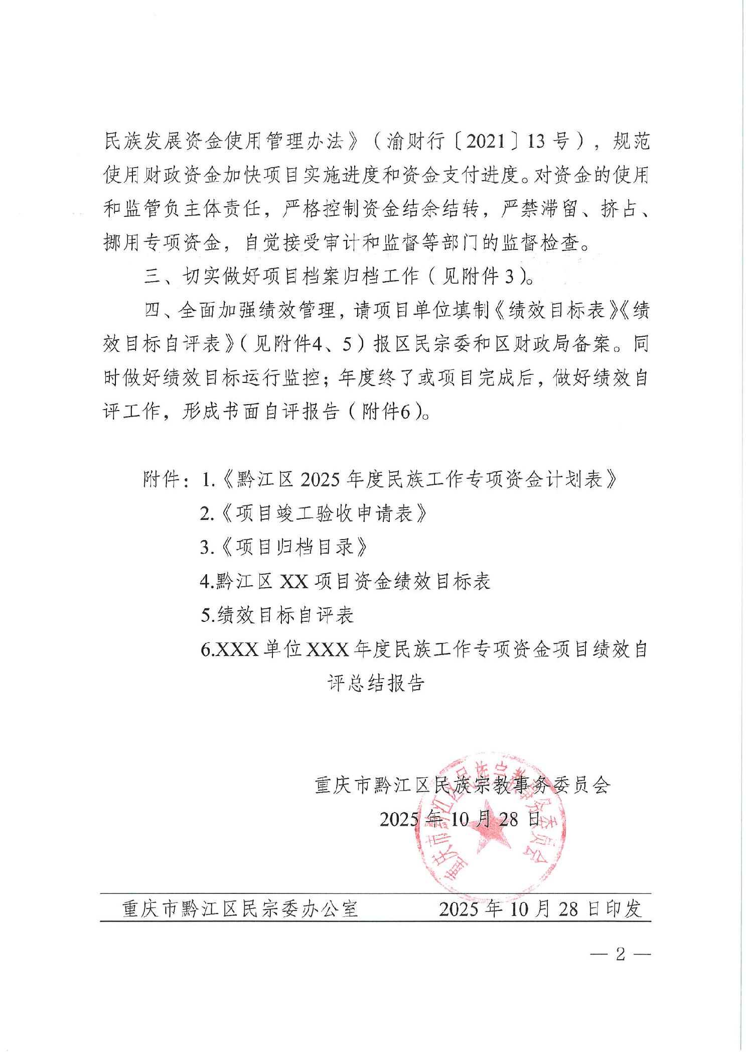 重庆市黔江区民族宗教事务委员会关于下达黔江区2025年度民族工作专项资金计划的通知