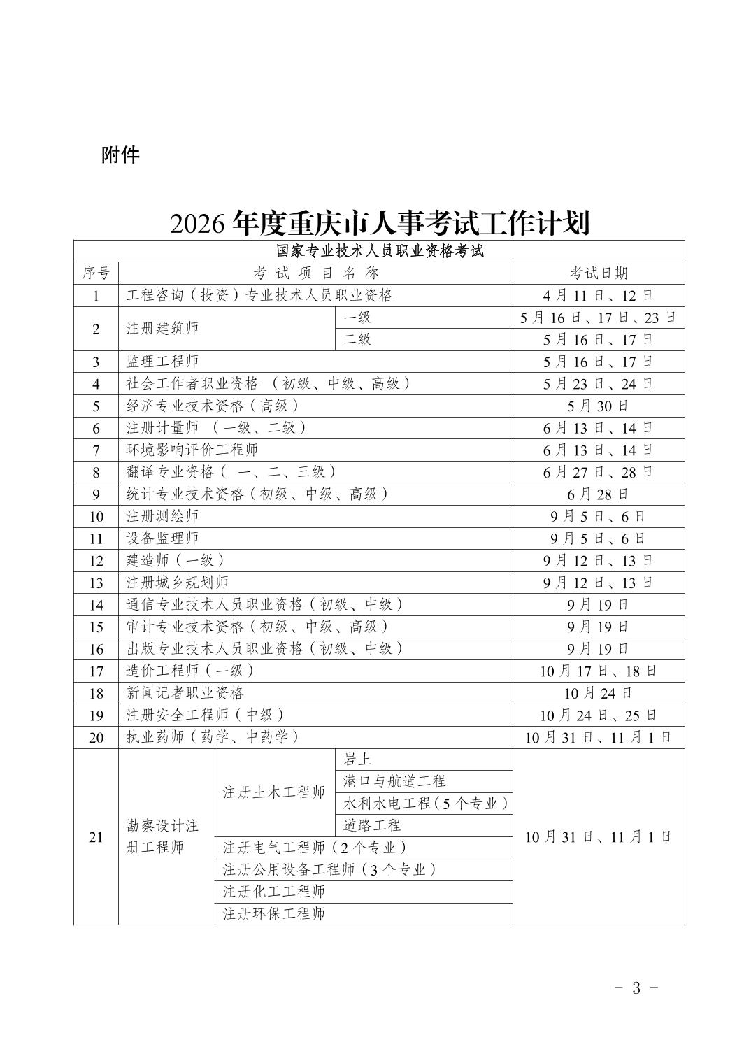 重庆市人力资源和社会保障局办公室关于印发2026年度人事考试工作计划的通知