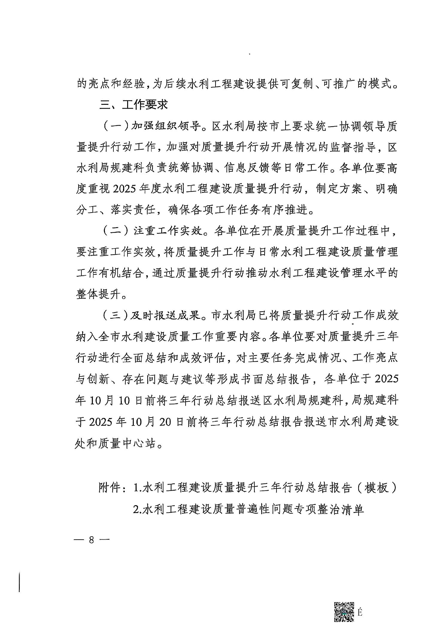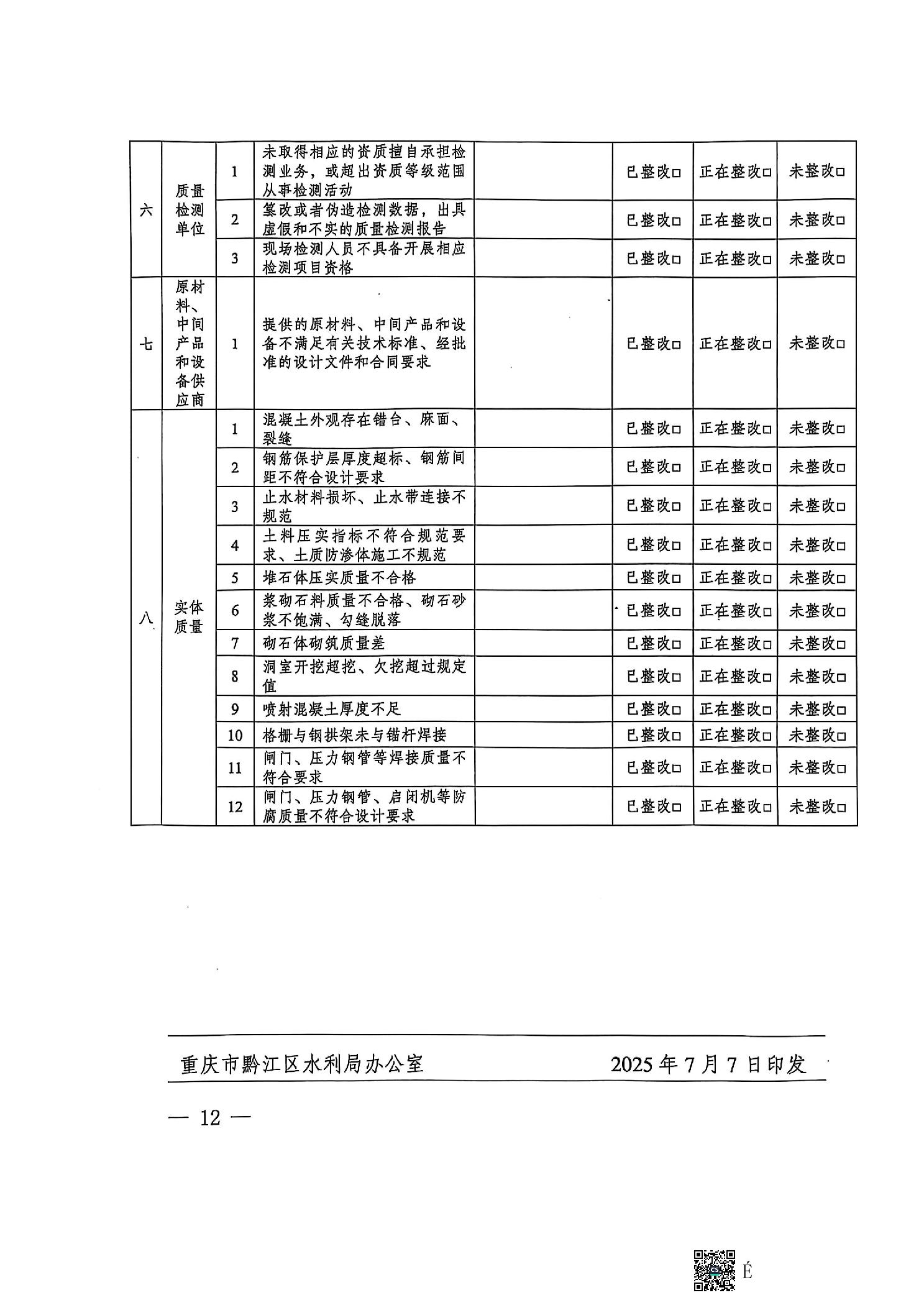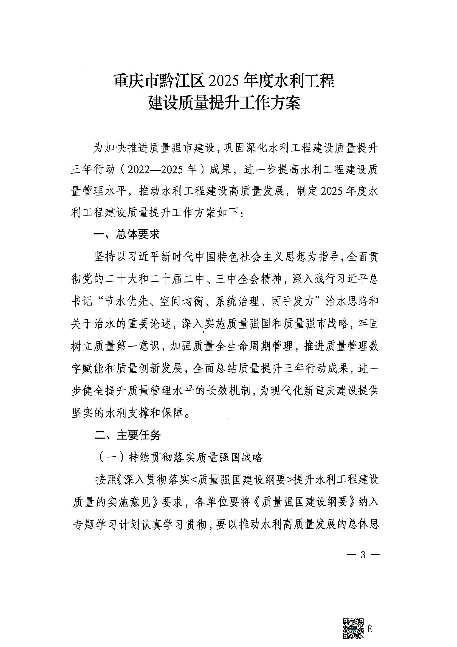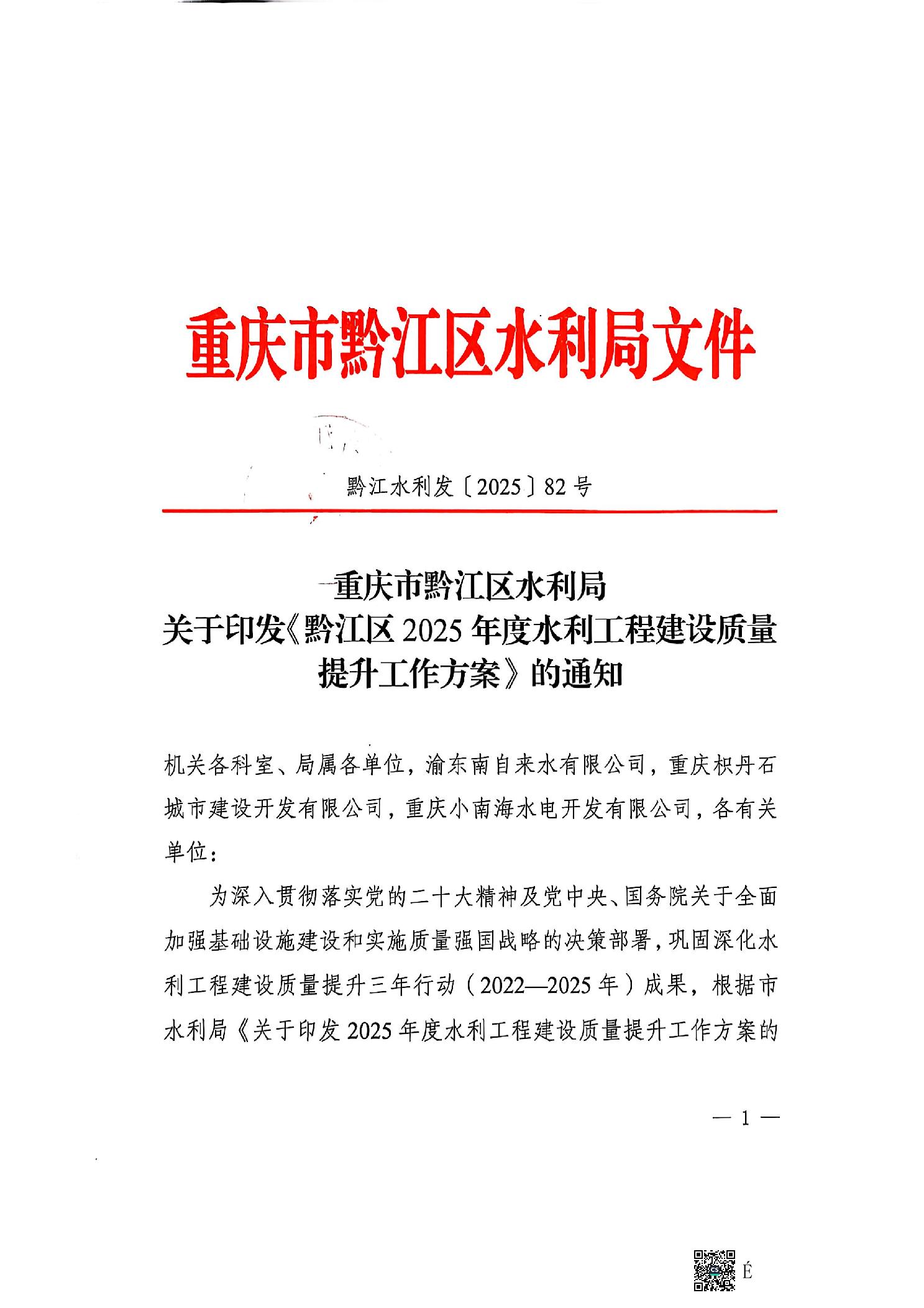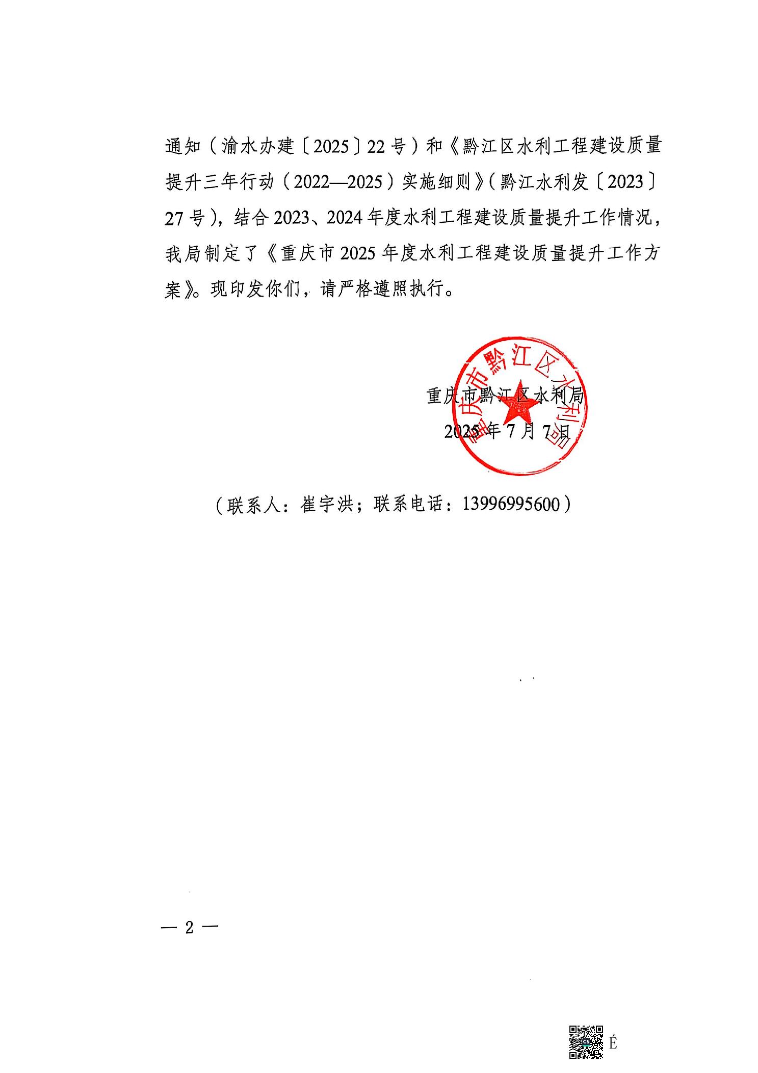 重庆市黔江区水利局关于印发《黔江区2025年度水利工程建设质量提升工作方案》的通知