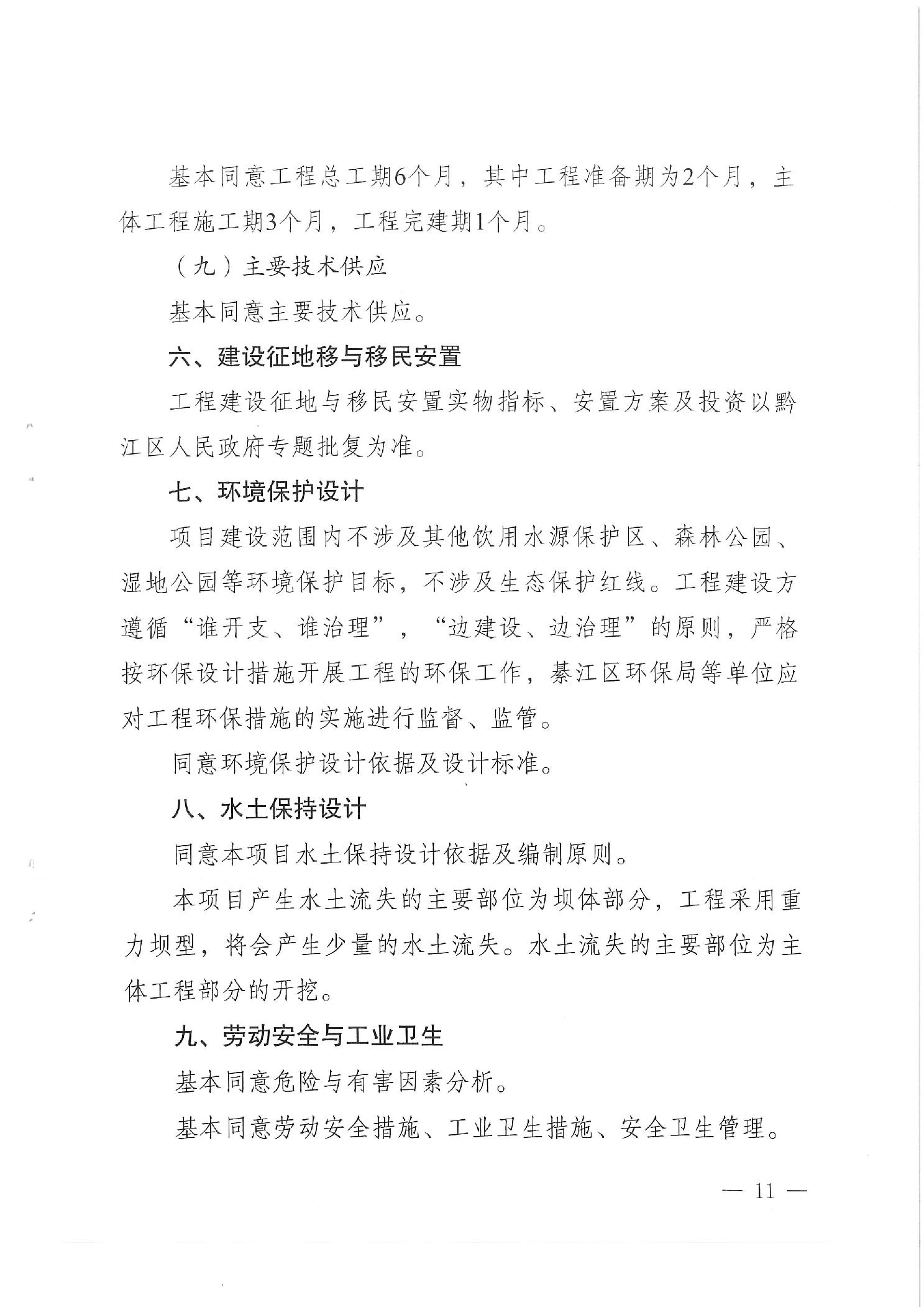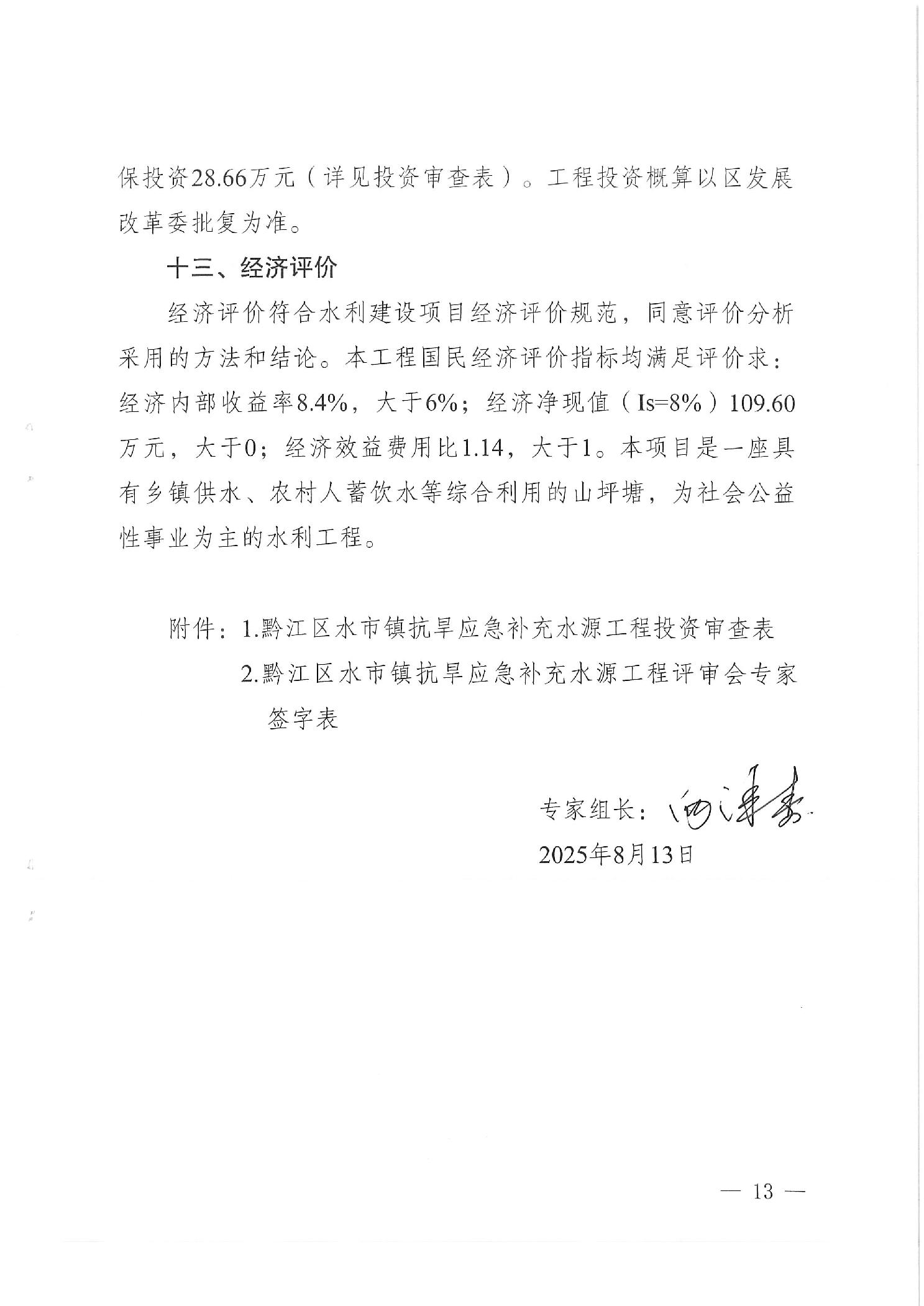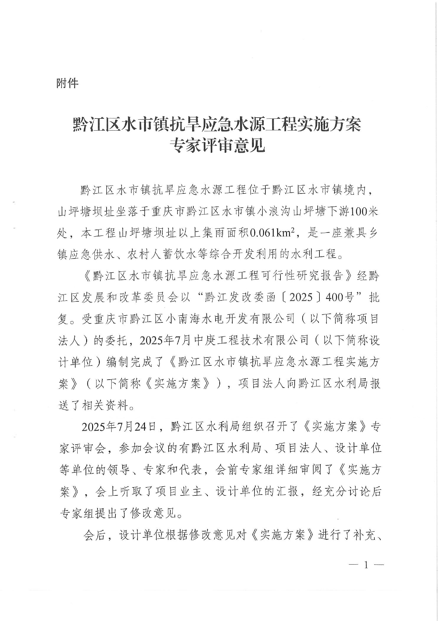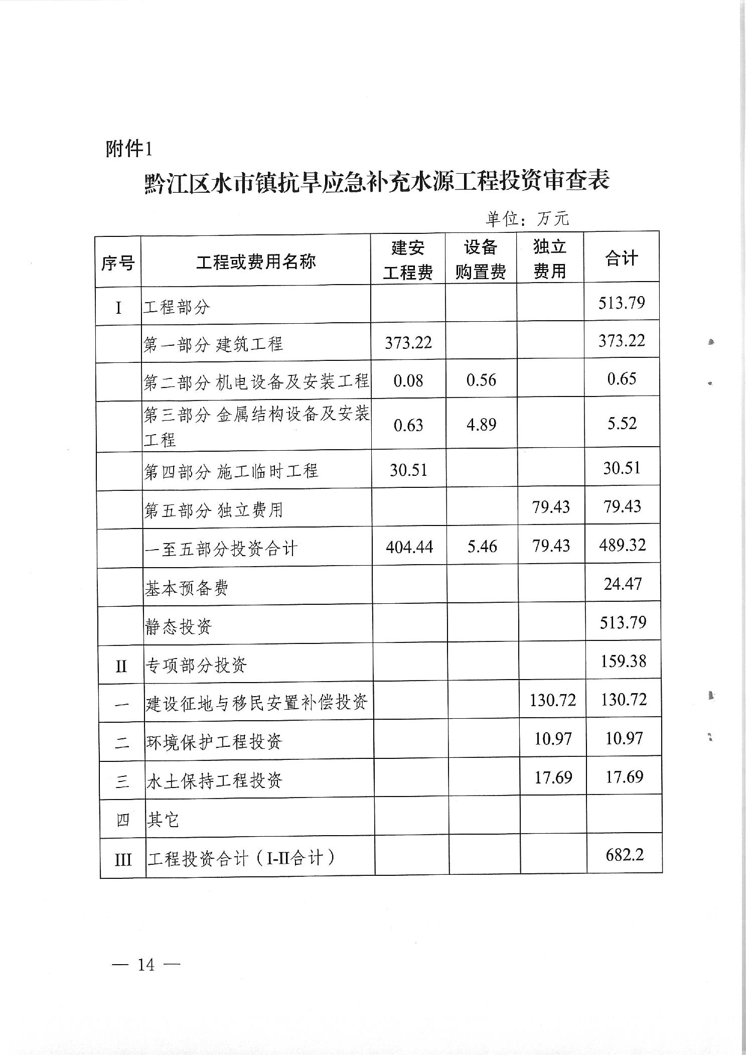 关于黔江区水市镇抗旱应急补充水源工程实施方案的批复