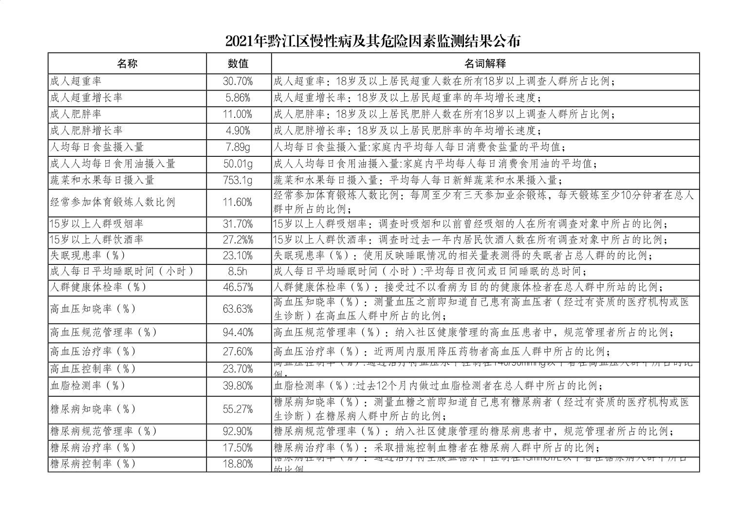 2021年黔江区慢性病及其危险因素监测结果公布