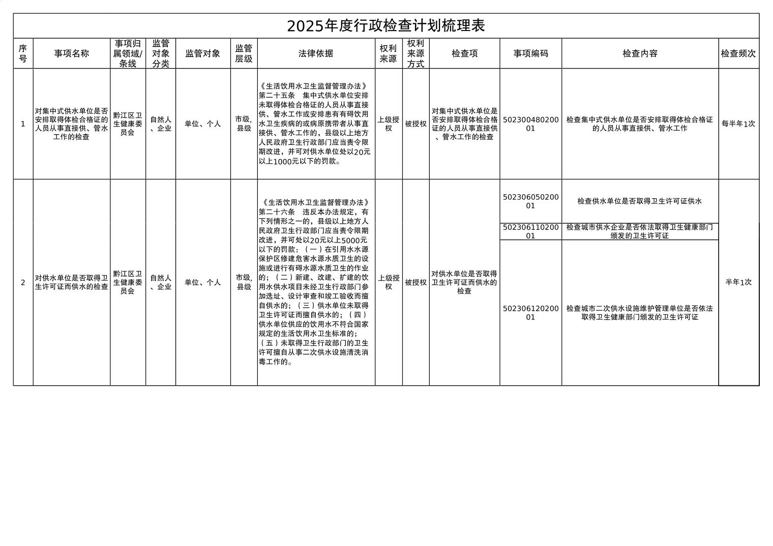 2025年度行政检查计划表