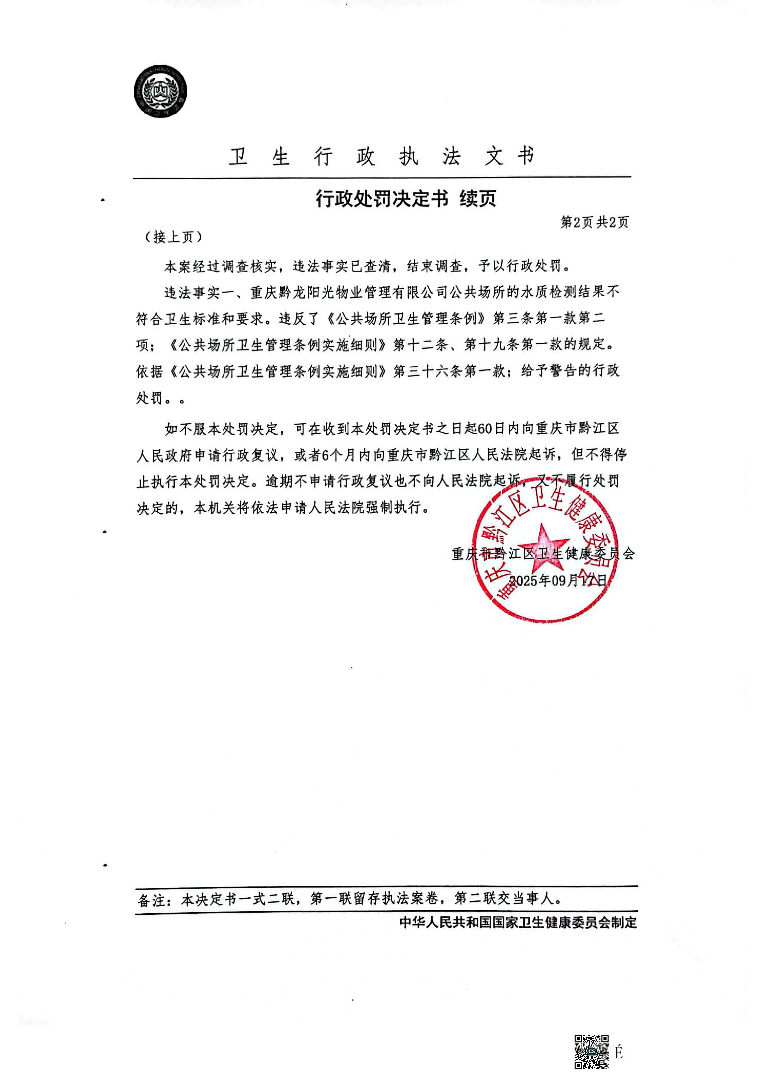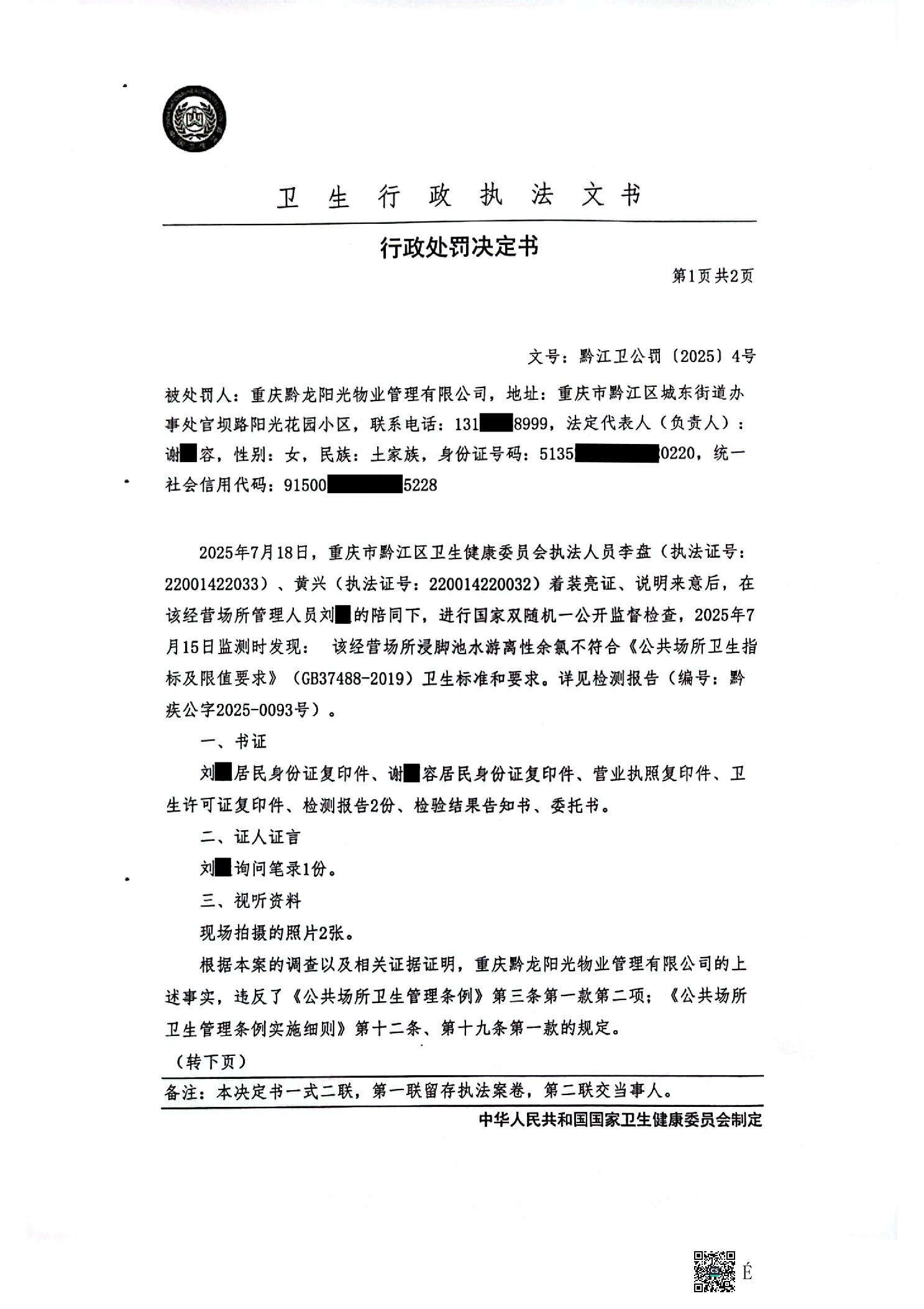 行政处罚决定书(黔江卫公罚〔2025〕4号)