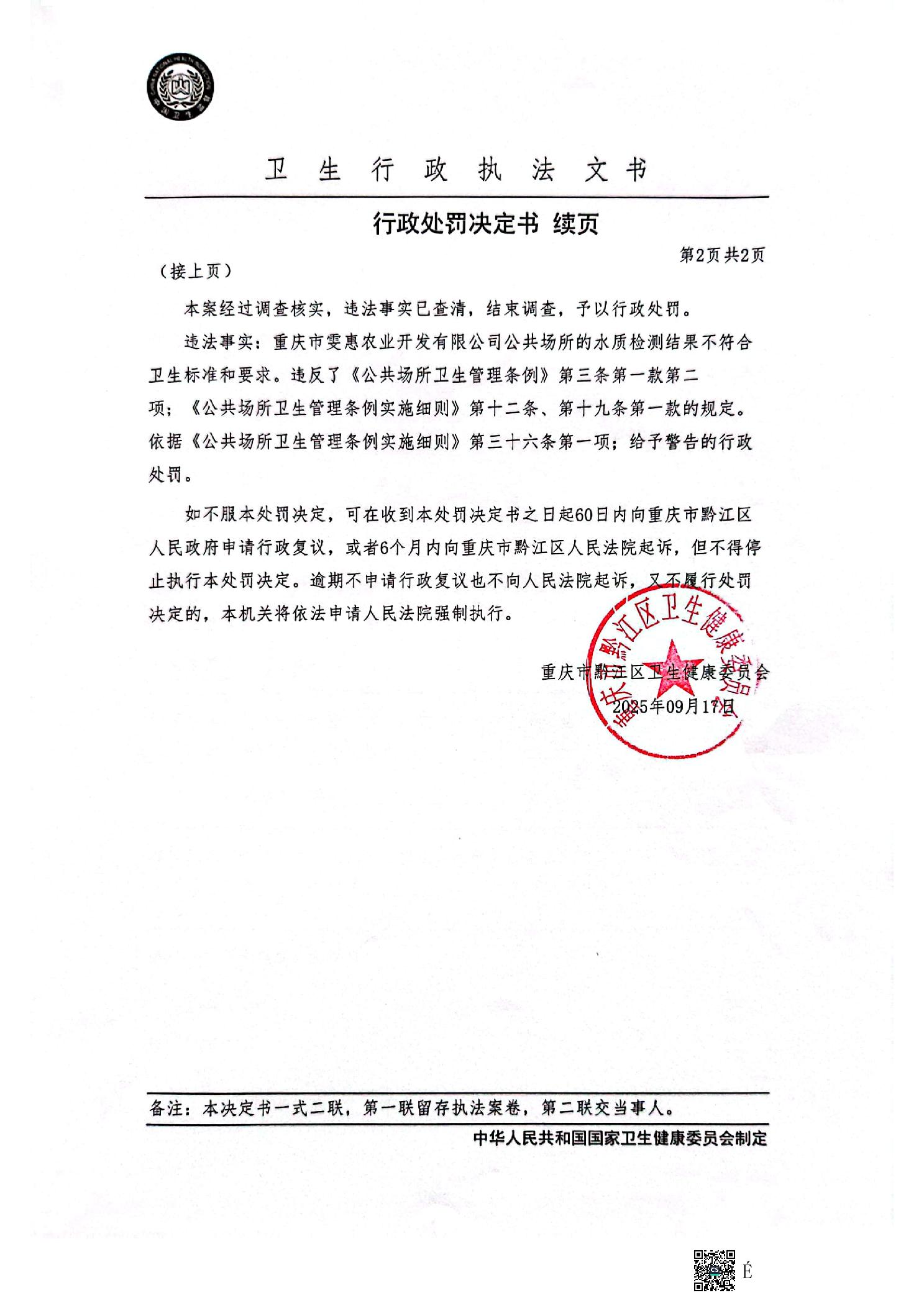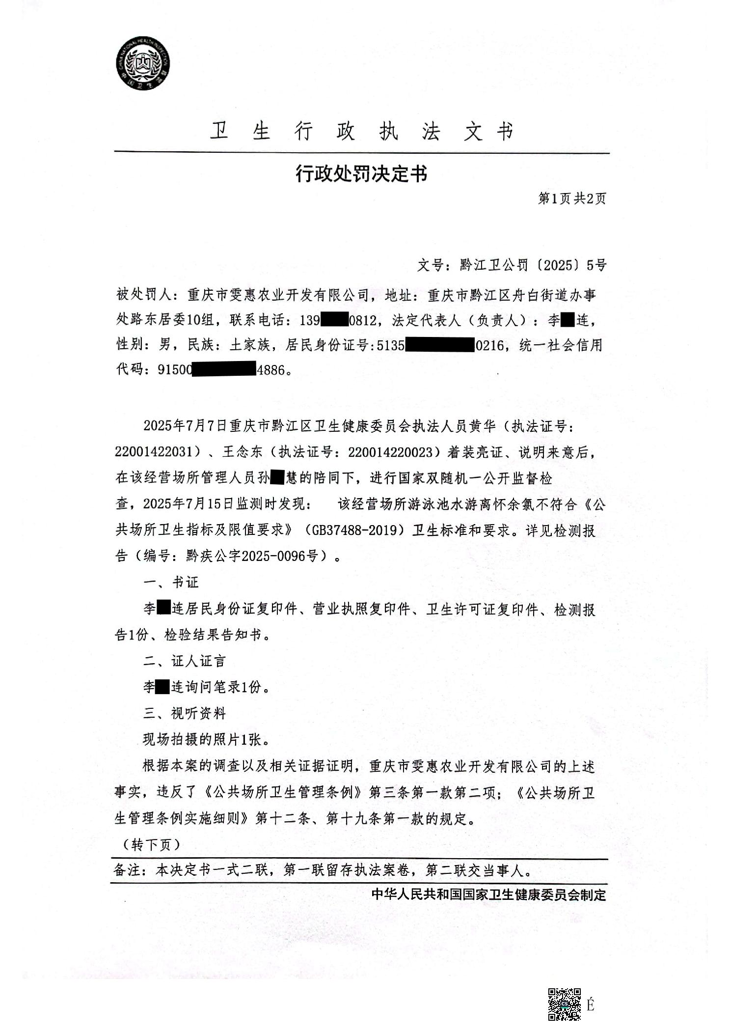 行政处罚决定书(黔江卫公罚〔2025〕5号)