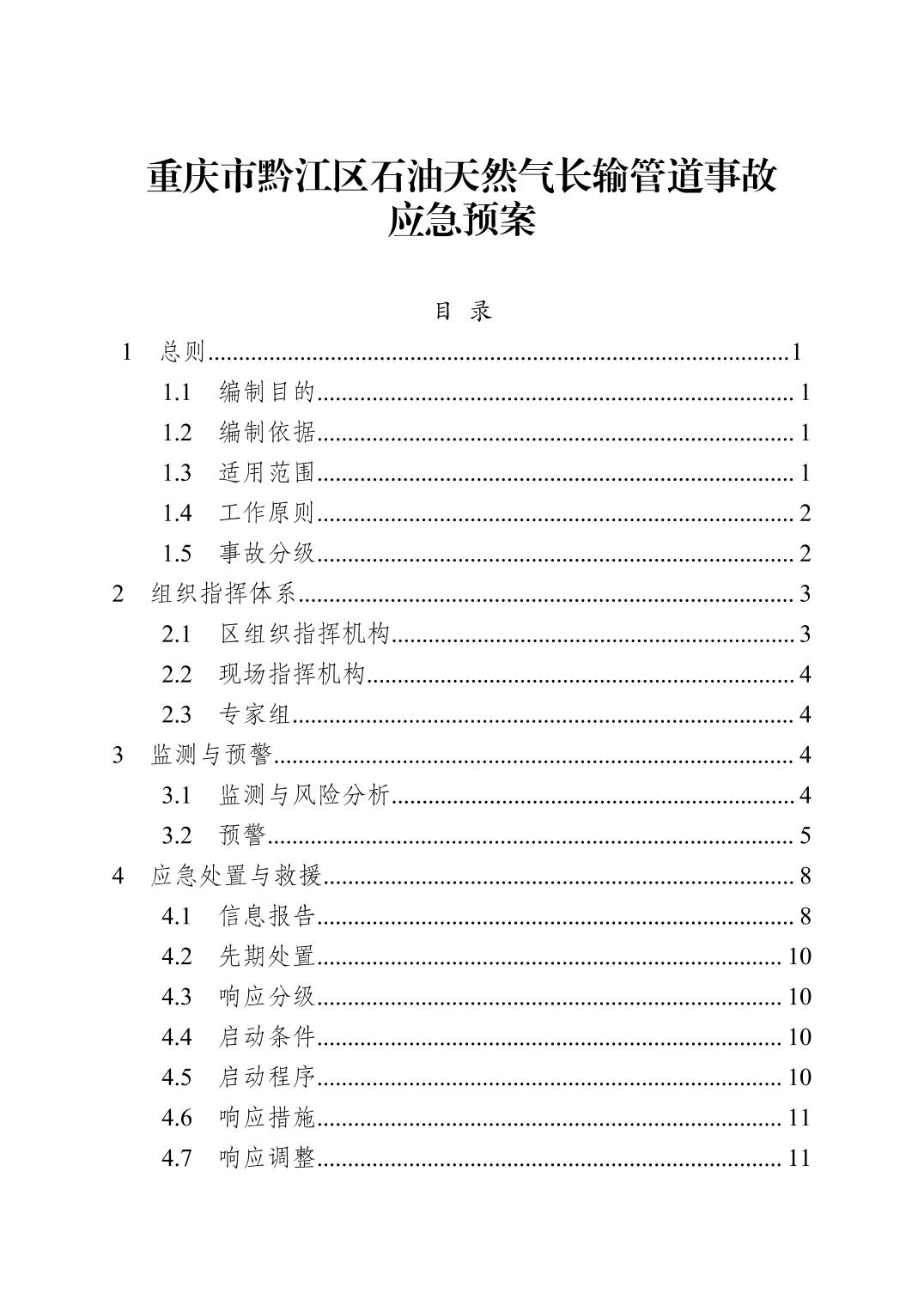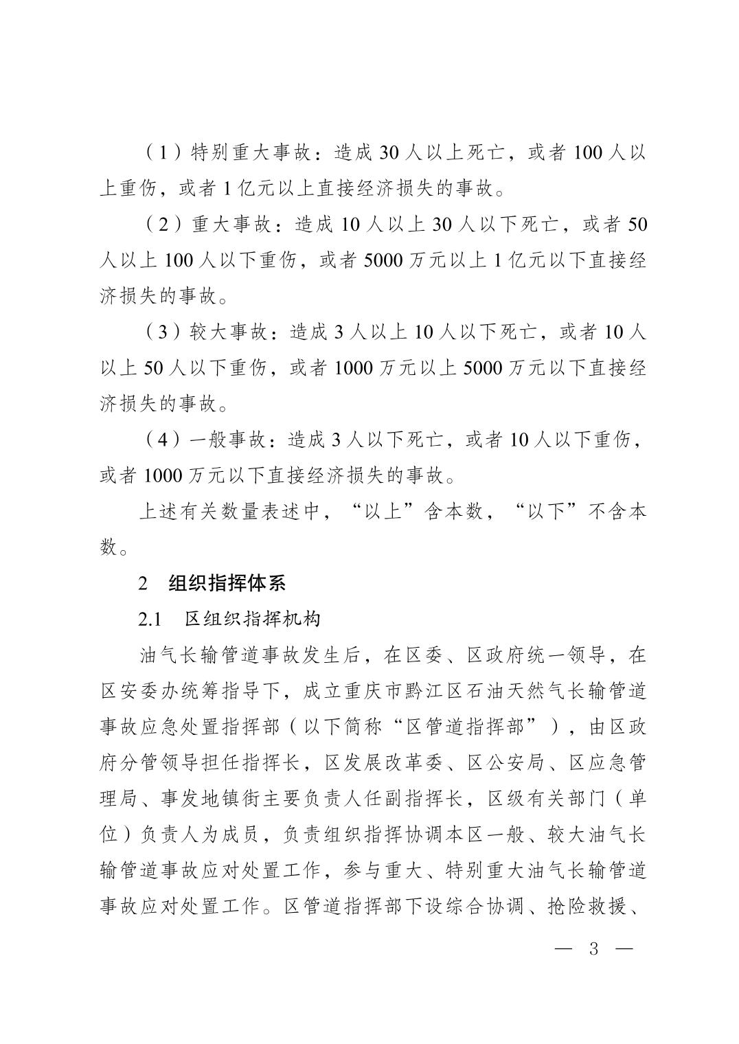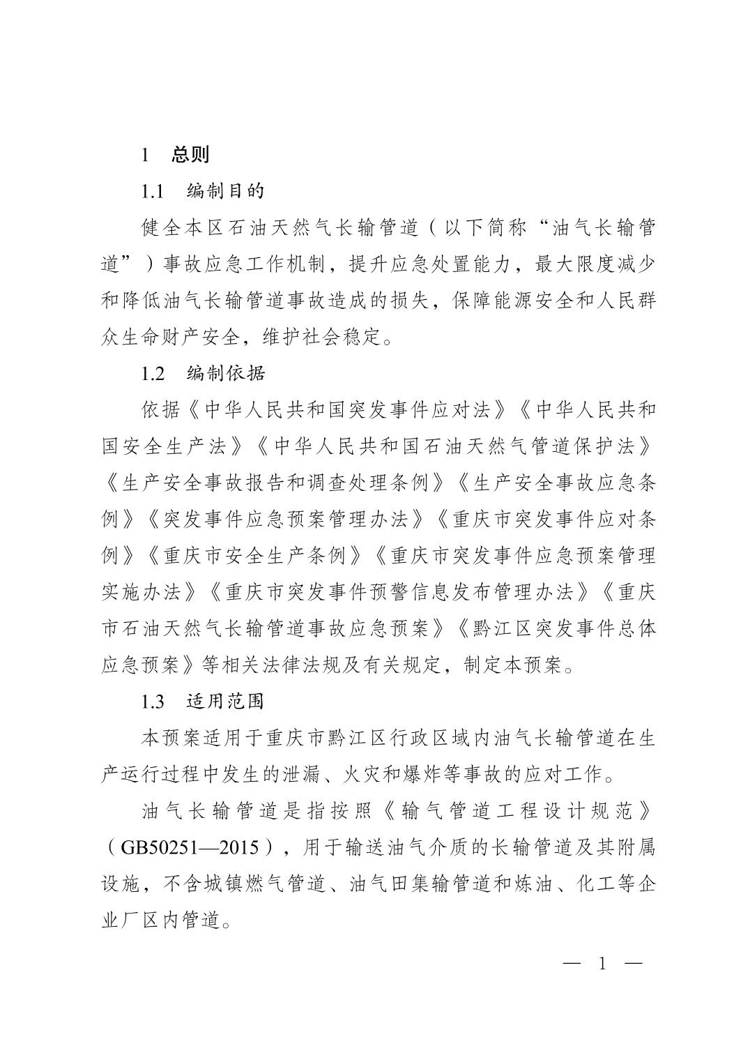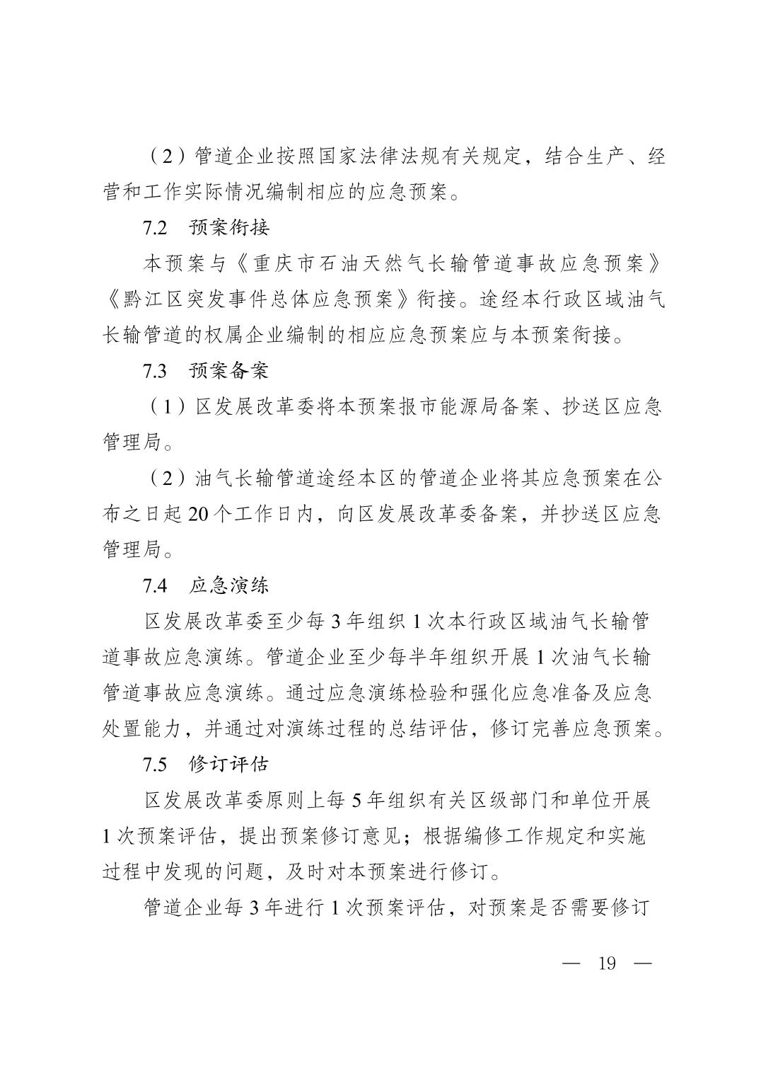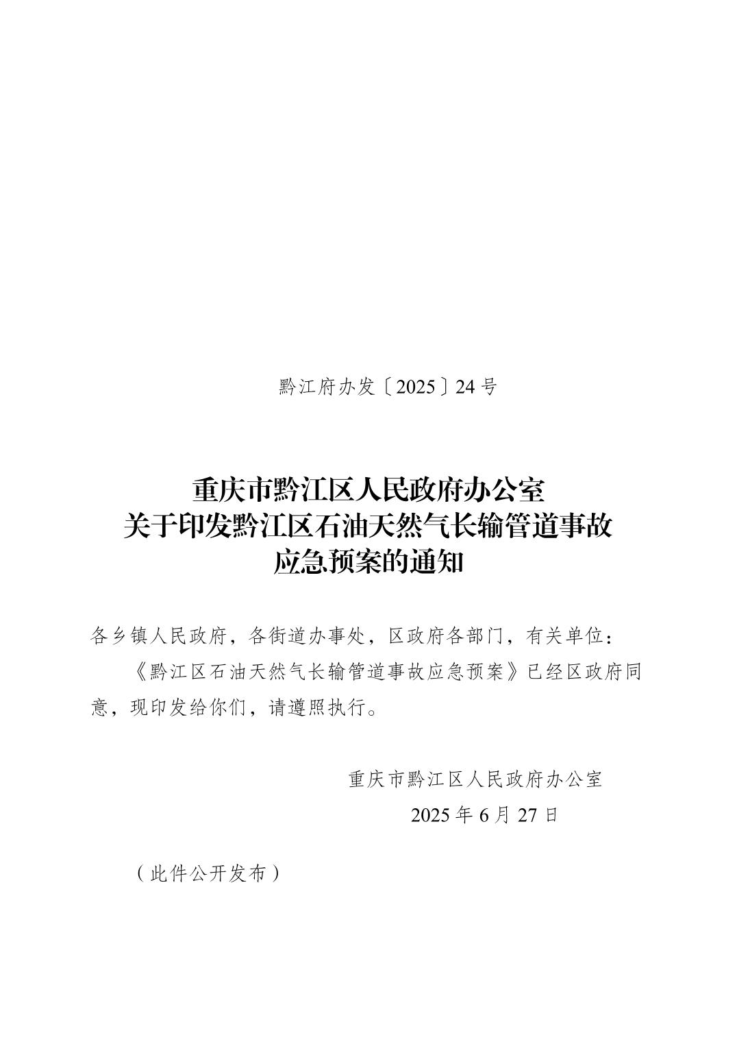 重庆市黔江区人民政府办公室关于印发黔江区石油天然气长输管道事故 应急预案的通知