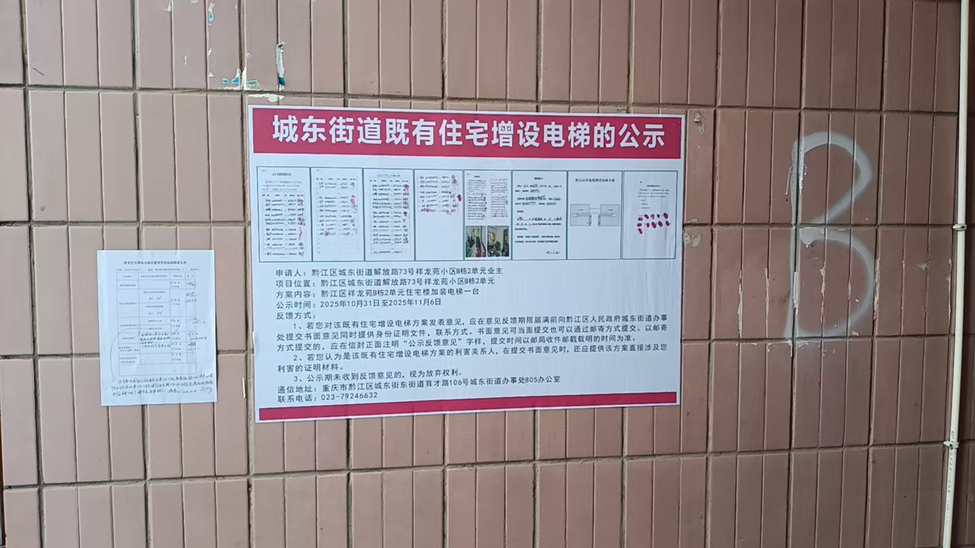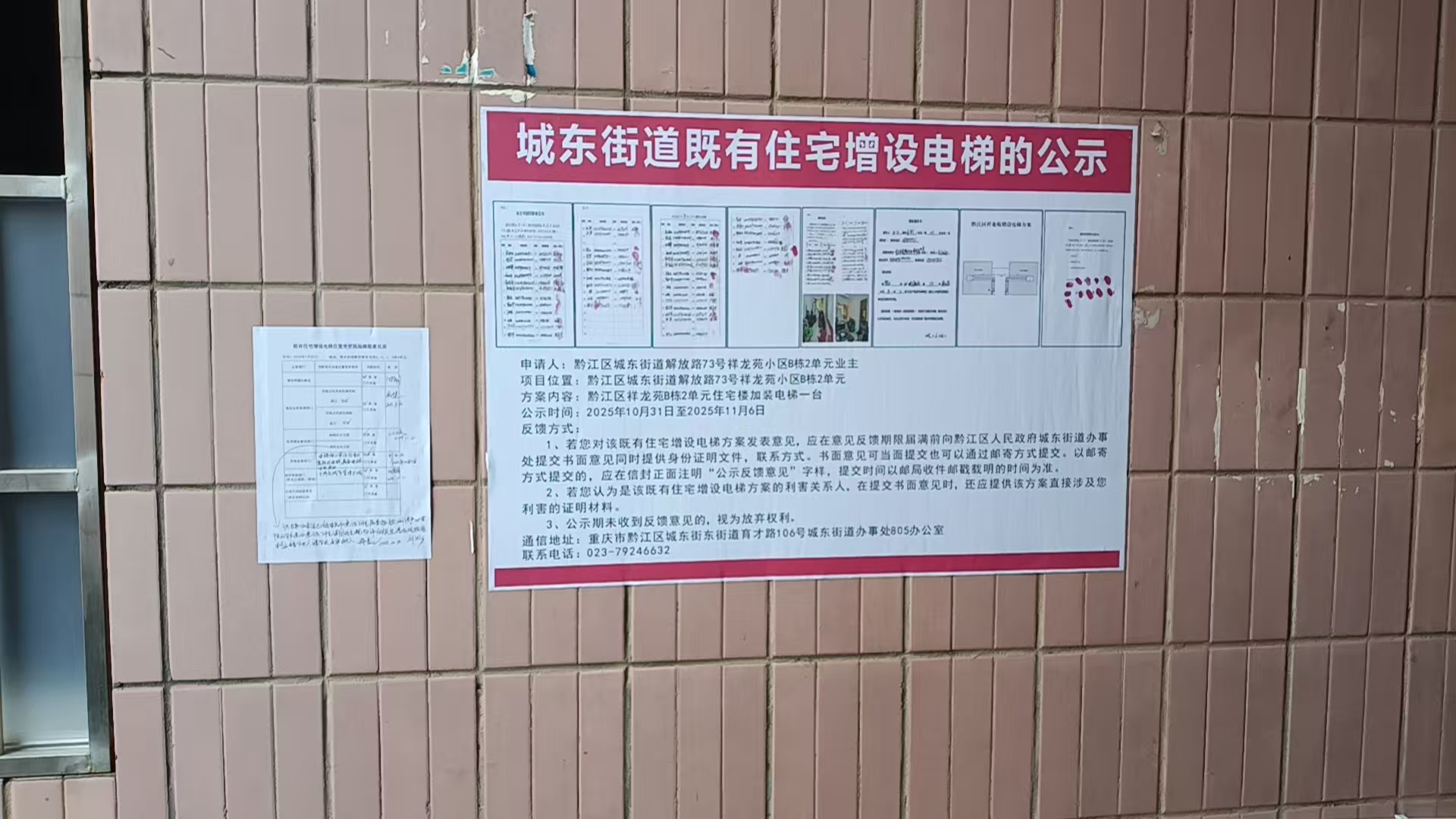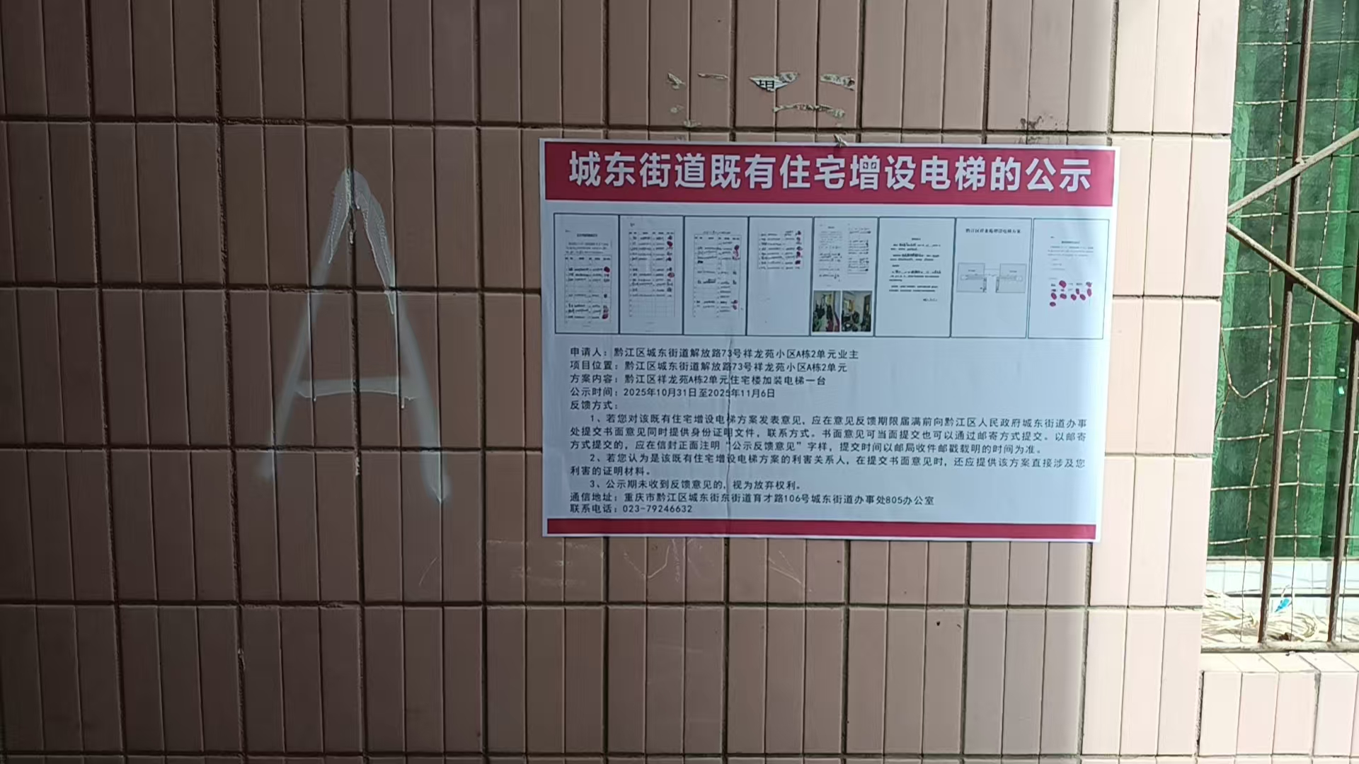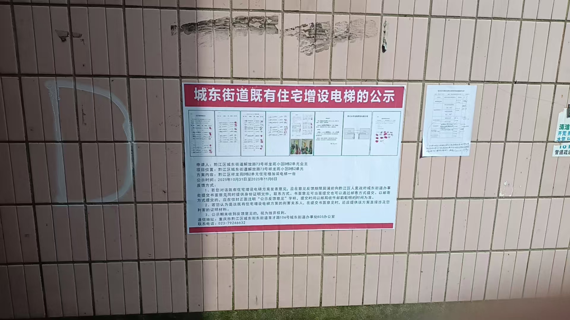 重庆市黔江区城东街道既有住宅增设电梯公告