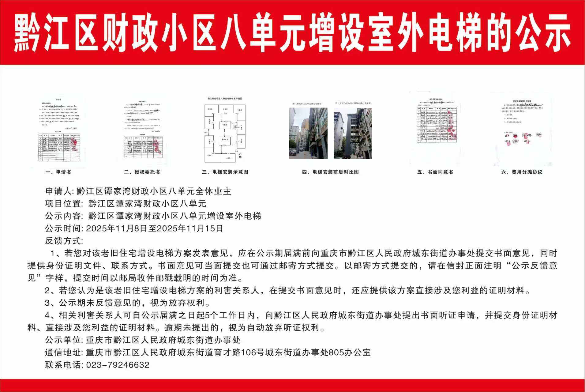 重庆市黔江区城东街道既有住宅增设电梯公告
