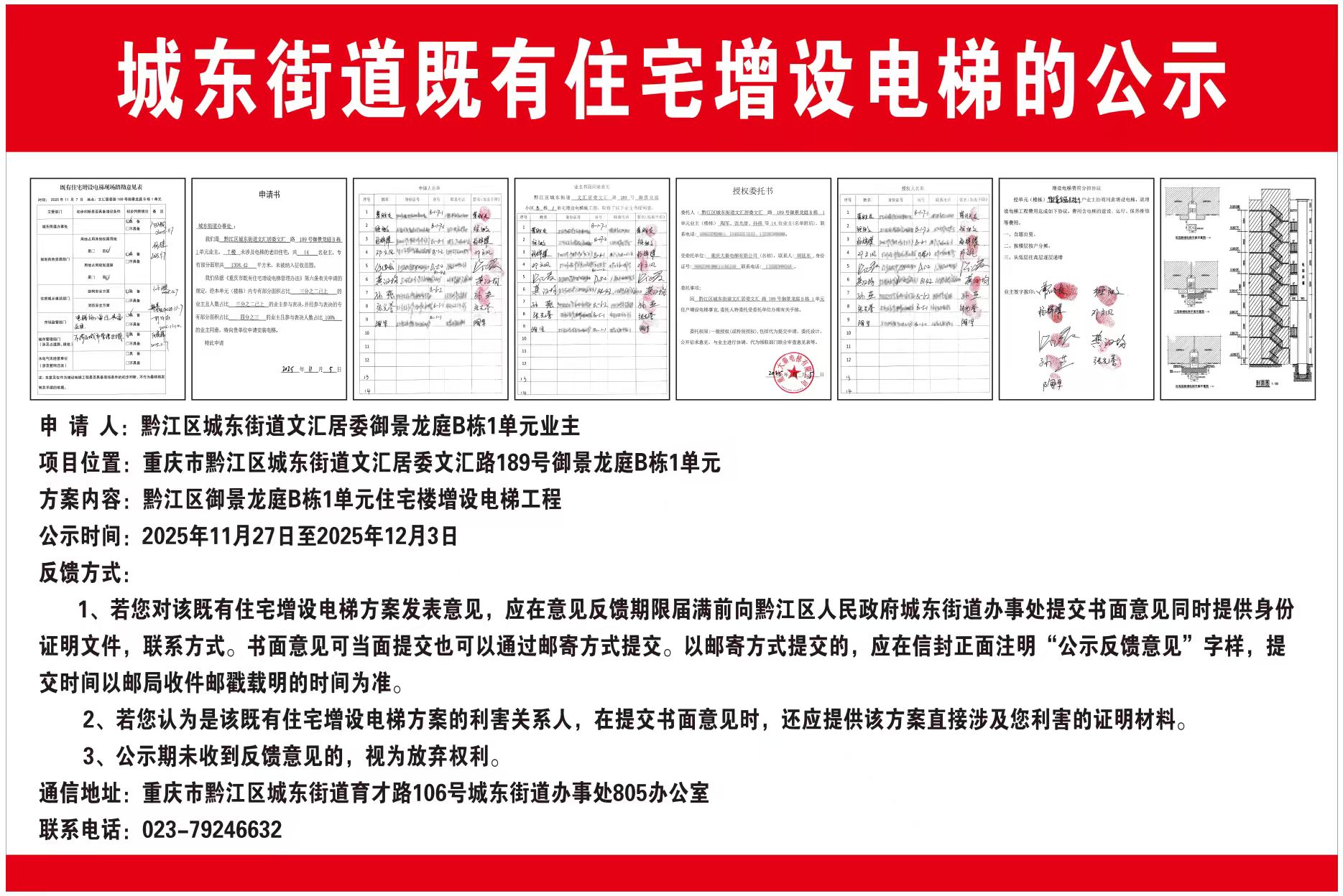 重庆市黔江区城东街道既有住宅增设电梯公告