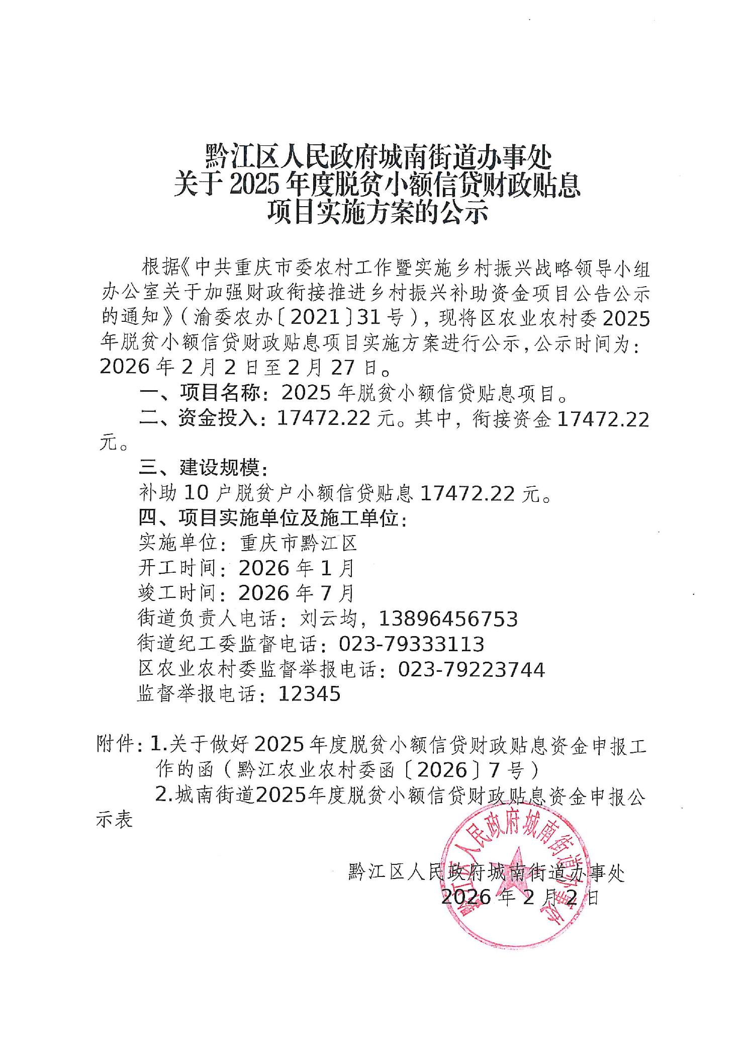 关于2025年度脱贫小额信贷财政贴息项目实施方案的公示