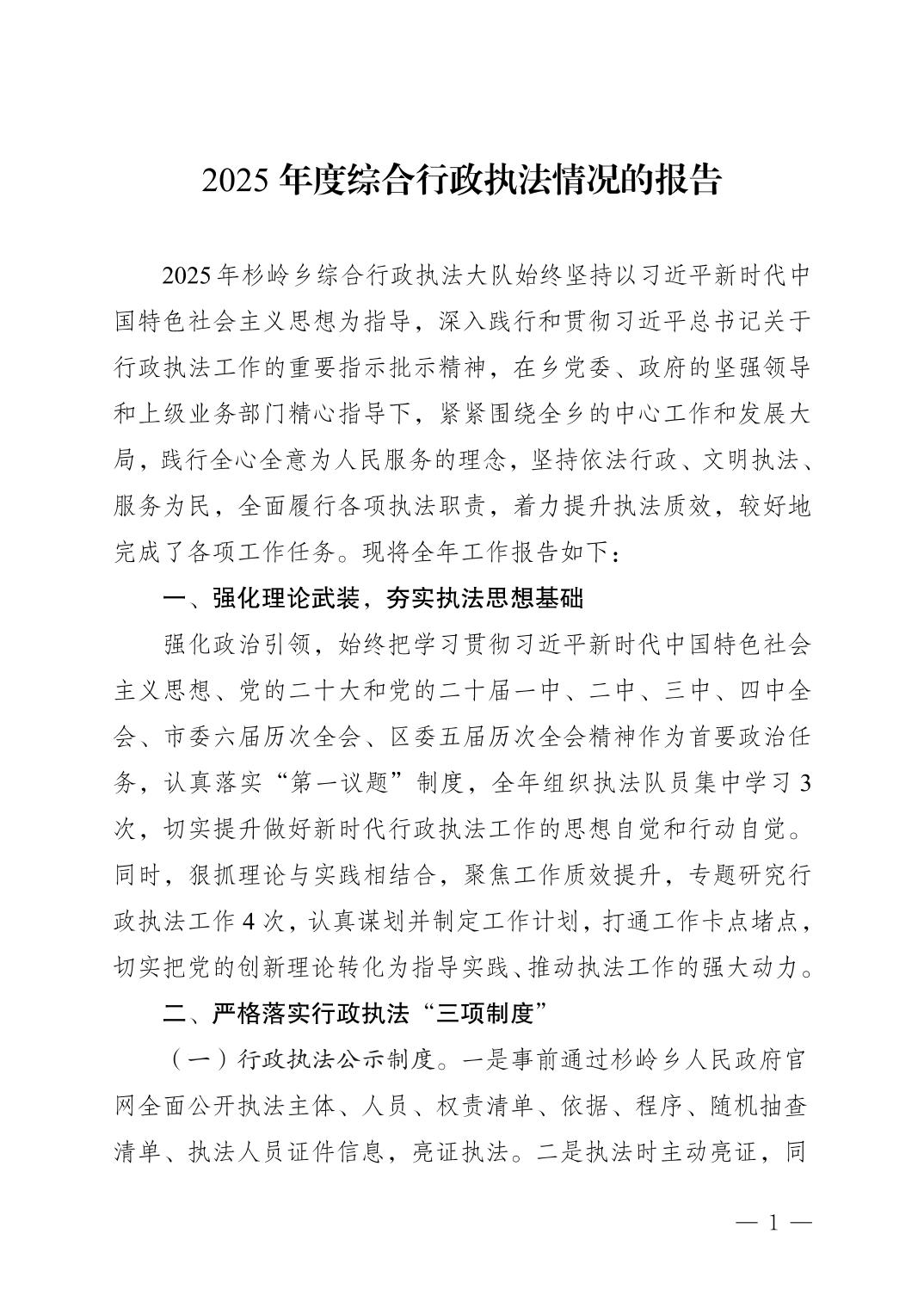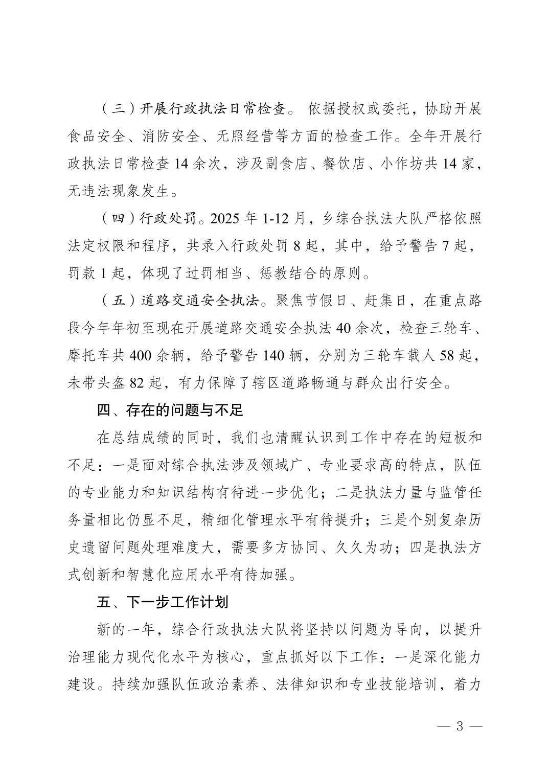 2025年度综合行政执法情况的报告