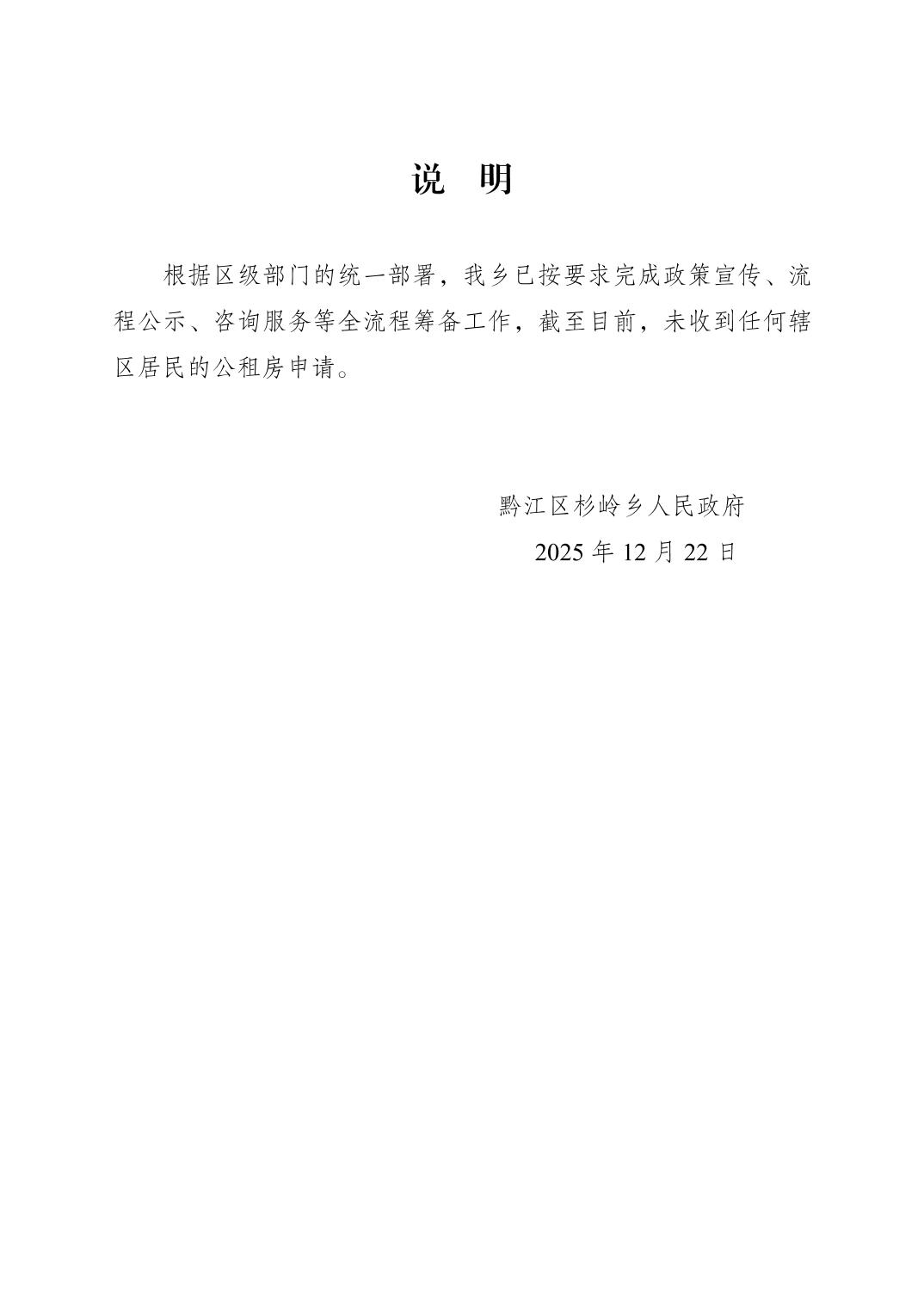 关于杉岭乡2025年度公租房无人申请的情况说明