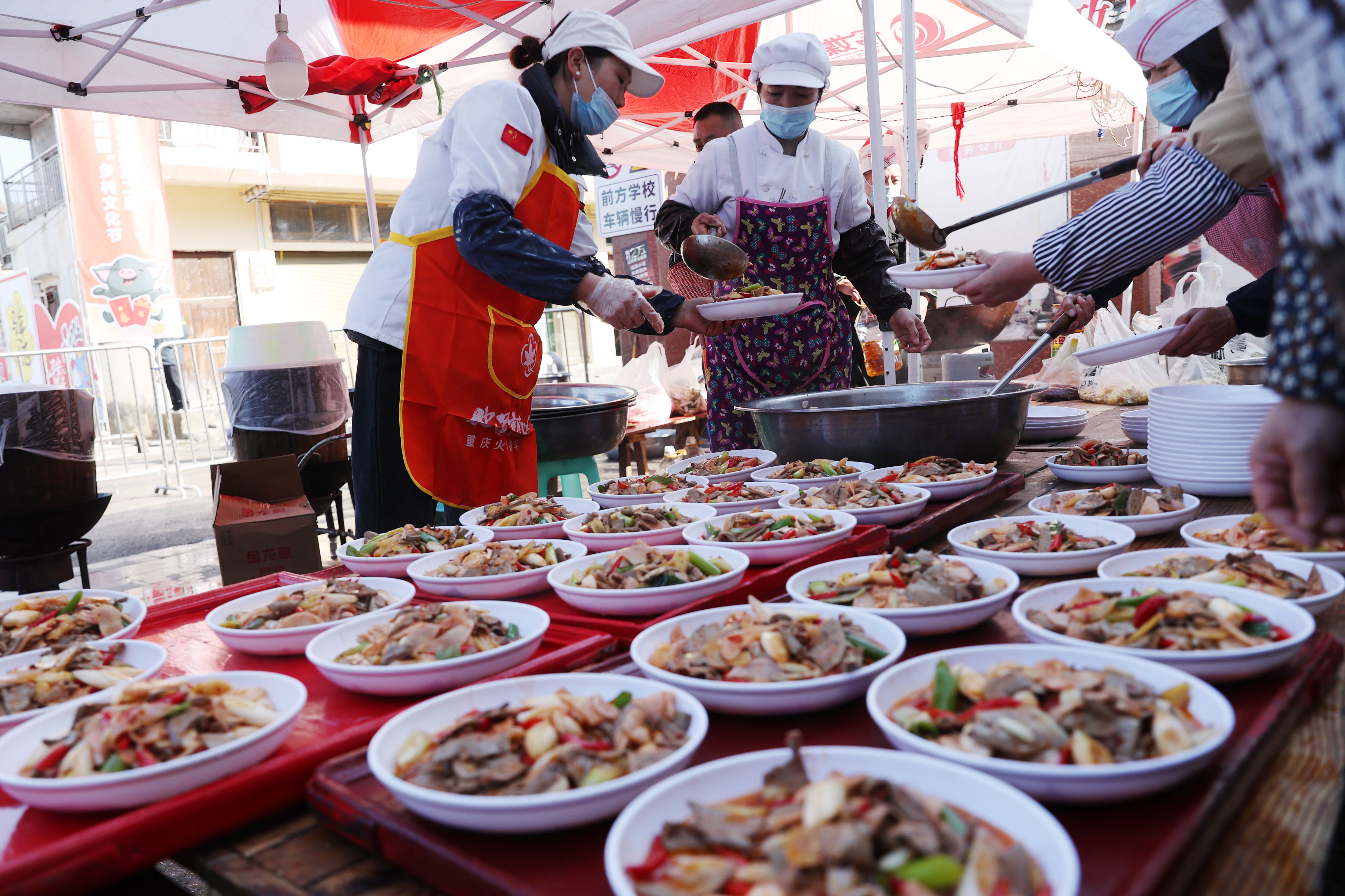 黔江:武陵黑猪刨汤宴庆丰年 千人体验土家年文化